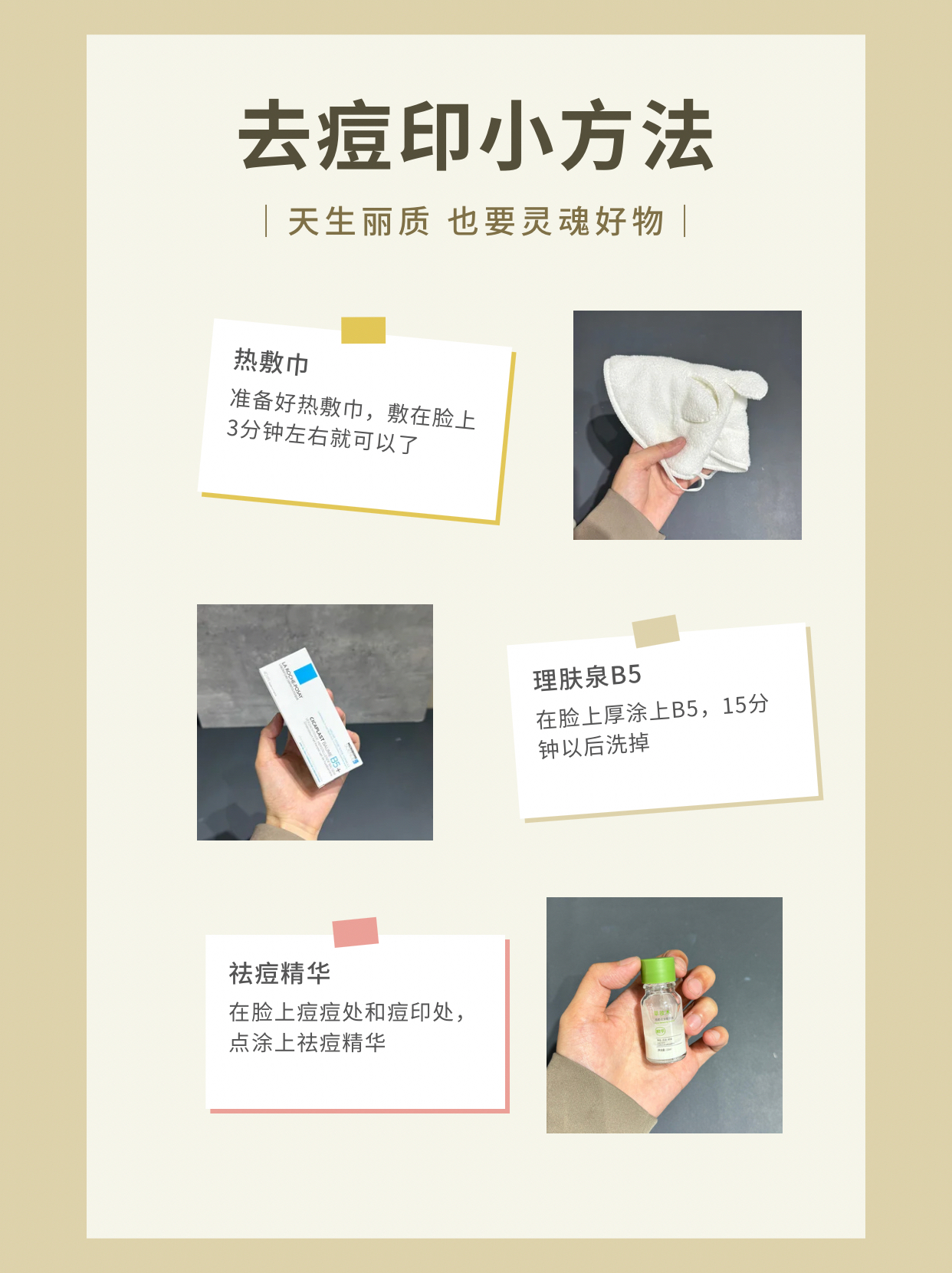 从来没有想过有一天我脸上的痘痘和痘印也能下去!,之前因为脸上长痘痘和留下的痘印导致我每天都能焦虑....到现在皮肤干净的都不用化妆都能出门!这对比真的是惊艳到我了,姐妹们一定要用对方法,盲目的乱用方法,可能会导致皮肤状态越来越差!有需要的姐妹们可以直接看我用的小方法!现在小脸干净的别提多高兴了! - 小方法也很简单喔! 1.先使用热敷巾敷在脸上3分钟左右就可以了 2.在脸上涂在厚厚的B5,等待15...