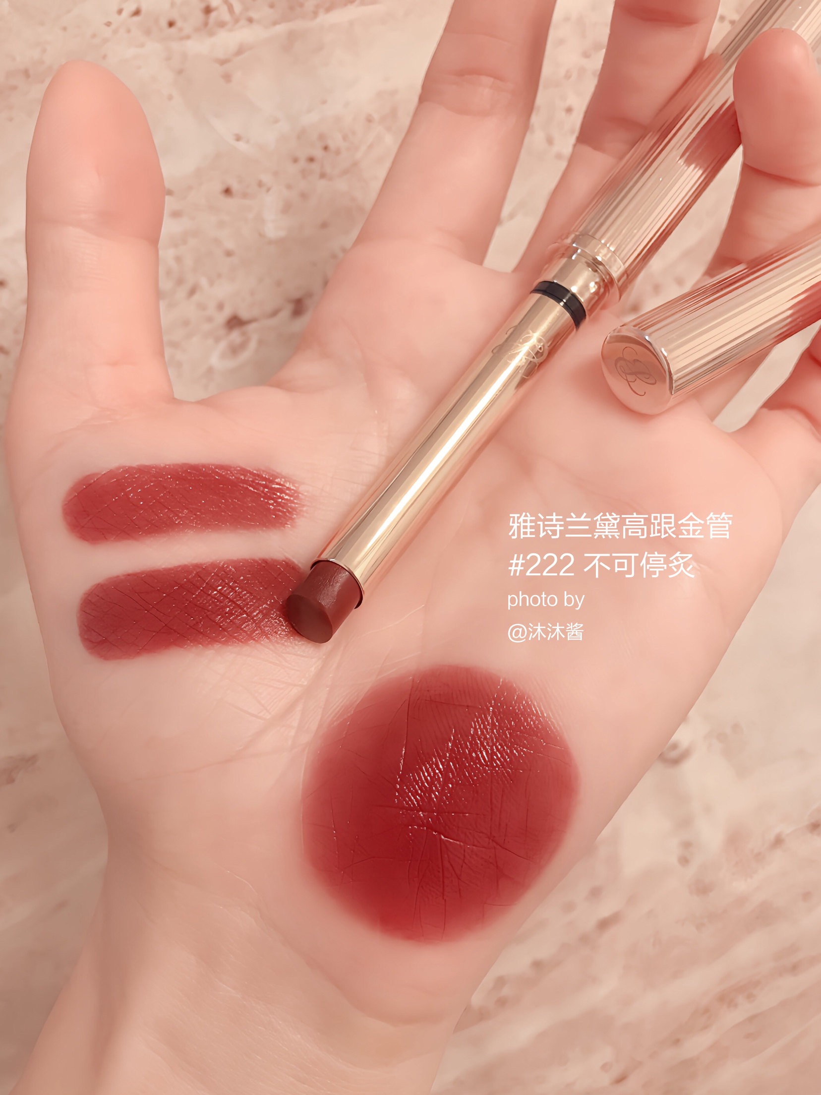 嘿嘿!雅诗兰黛你小子有好东西是真的不藏着啊! 雅诗兰黛细金管唇膏222 不可停炙 ——完美诠释我第一次上嘴的心情 薄涂纯欲撩人的裸玫瑰,洋气又显白! 上嘴秒变韩系美女!谁看了不说一句妈生好唇! 厚涂红茶棕更浓郁,气质女alpha感鲨疯了! 分分钟爆改高智感美女! 轻裸光质地,丝滑不粘腻, 上嘴清透饱满,妆感巨高级!!! 全网找不出一支代餐! 立体切割膏头超好涂!唇线+口红,一次拿下! 出门随时补涂...