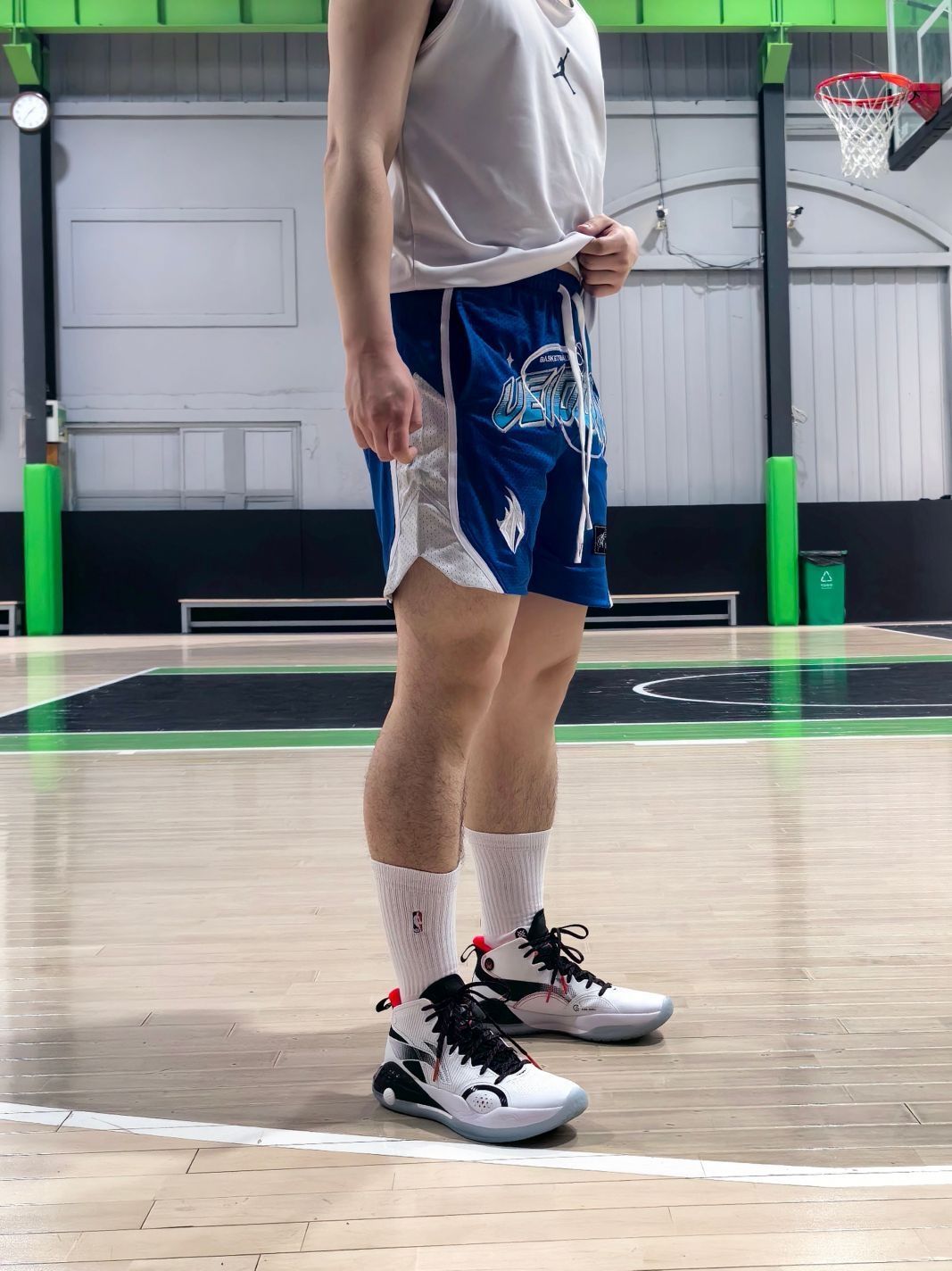 最近收到的这条#维动 VEIDOORN 四分短裤 高饱和度的蓝色颜值真是太赞了😍😍 灰色搭配克莱因蓝色非常清新干净,夏天的颜色 Veidoogn的刺绣图案,短裤的花纹做工都很好 175,145斤的身材穿L码也是刚刚好 搭配白色高筒袜+纯色球鞋,非常简约的组合 上衣选择长袖投篮服或者短袖背心都能轻松拿捏 四分短裤的过膝高度 无论打球穿着还是日常穿着都刚好😍😍