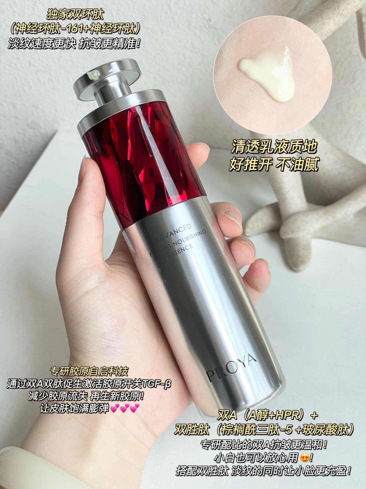 本篇笔记关联了PROYA/珀莱雅 红宝石A醇视黄醇补水保湿精华液 淡纹提拉紧致 2.0、PROYA/珀莱雅 双抗精华液 保湿抗氧糖淡纹去黄提亮 3.0经典版等商品,为用户提供真实的使用体验和购买参考。