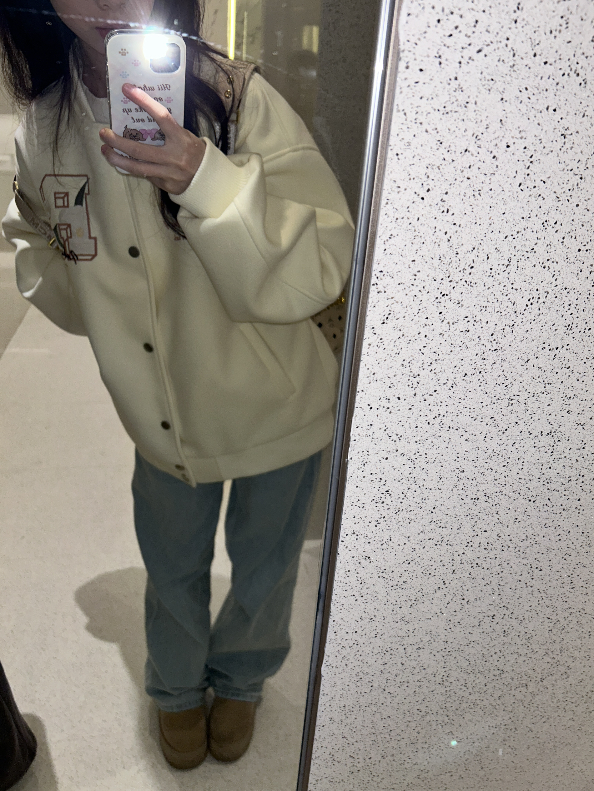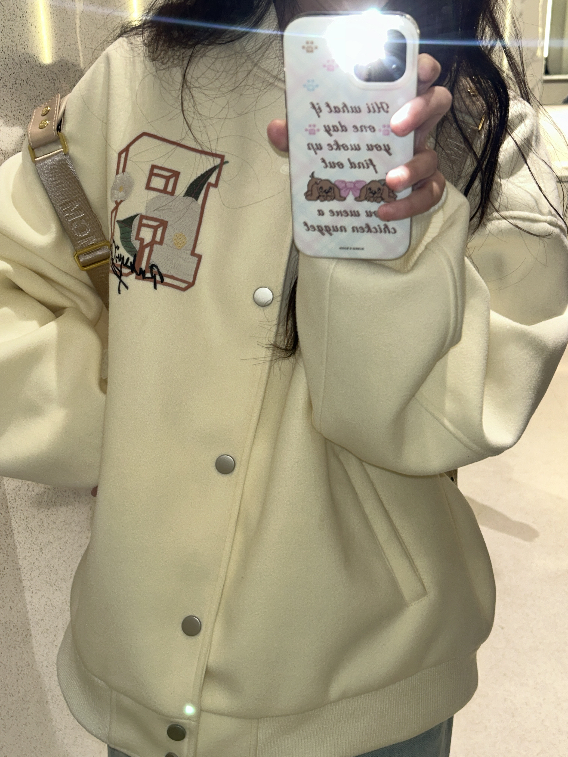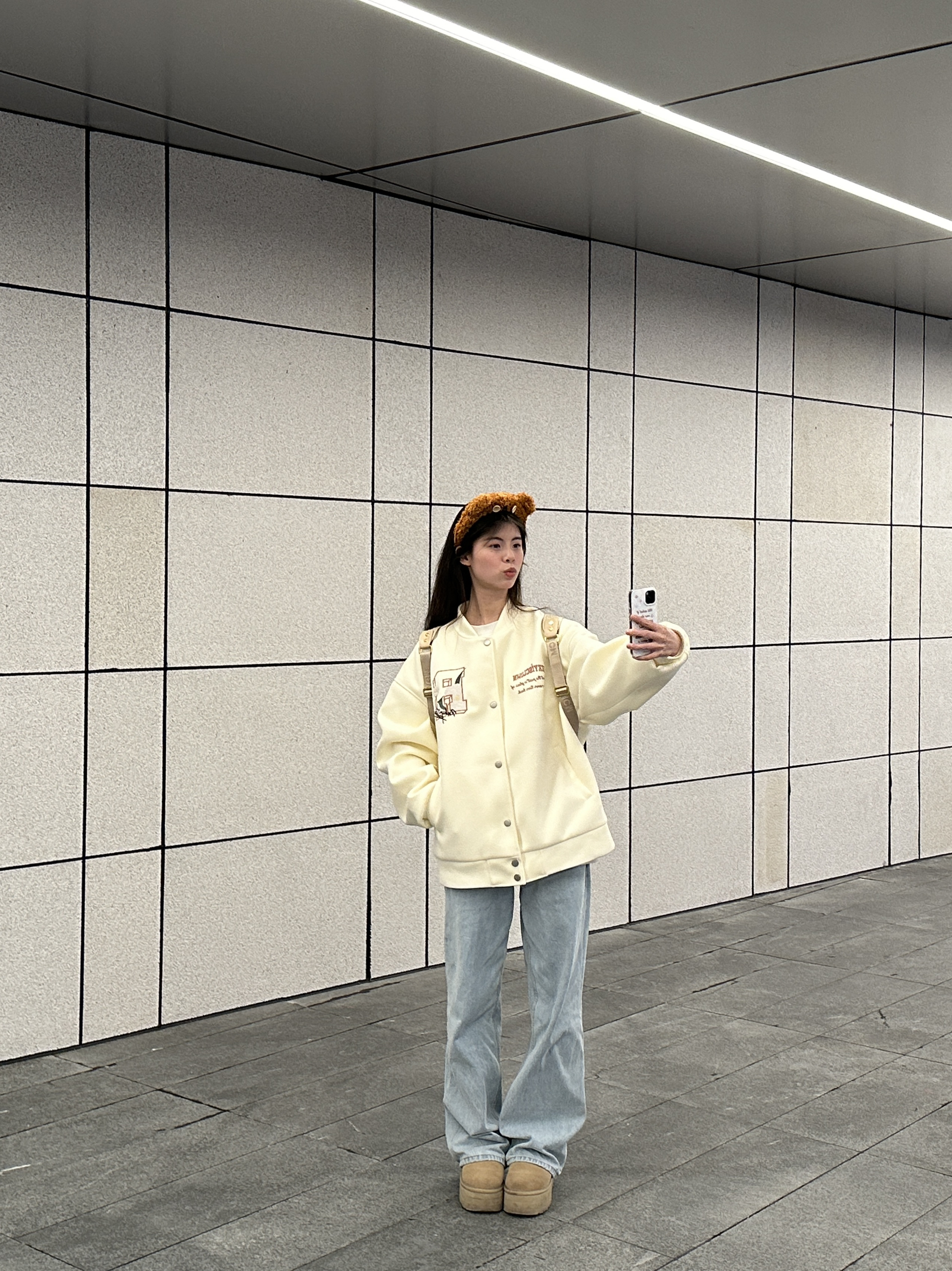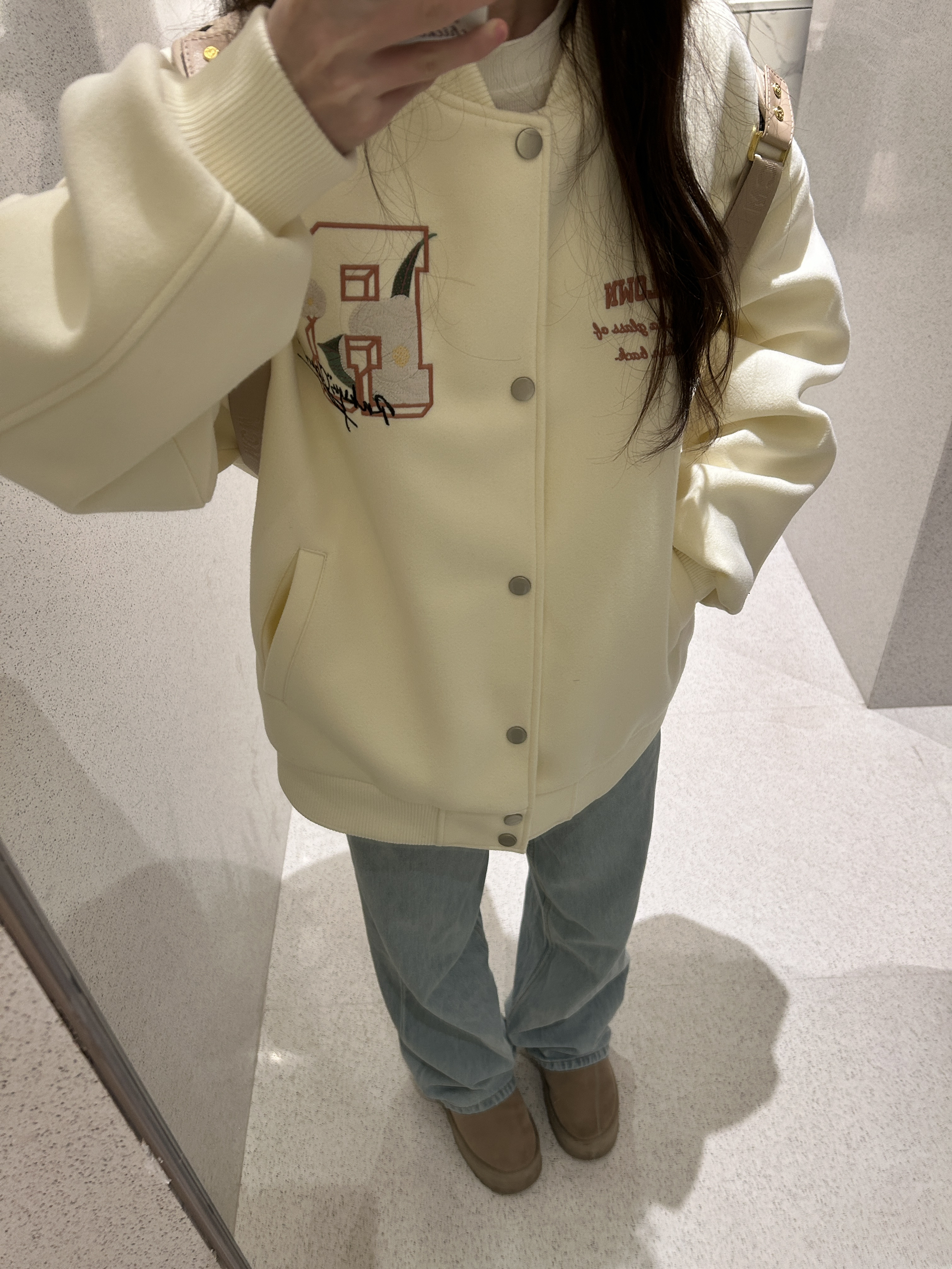 穿上这套就像在说春天到啦 慵懒感校园ootd狠狠拿捏 真的很喜欢这种版型好又有很多小设计的棒球服外套 厚度刚刚好初春套在t恤外面超合适 随随便便穿个牛仔裤就很好看出片!! 还可以搭配小裙子 也不会突兀 而且真的好适合当情侣装诶 马上就放五一假期咯 宝贝们有准备去哪里玩吗