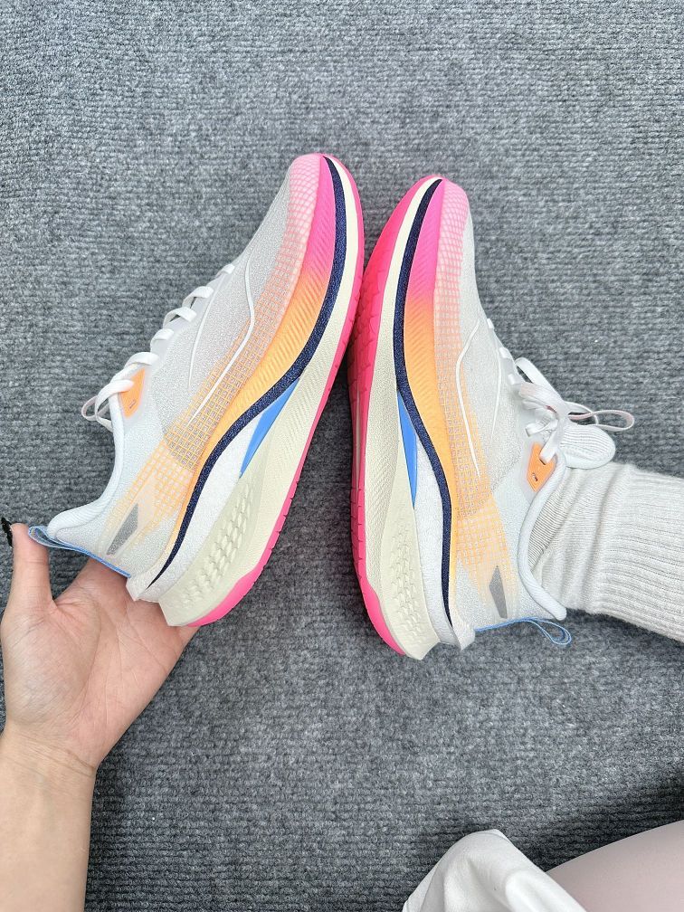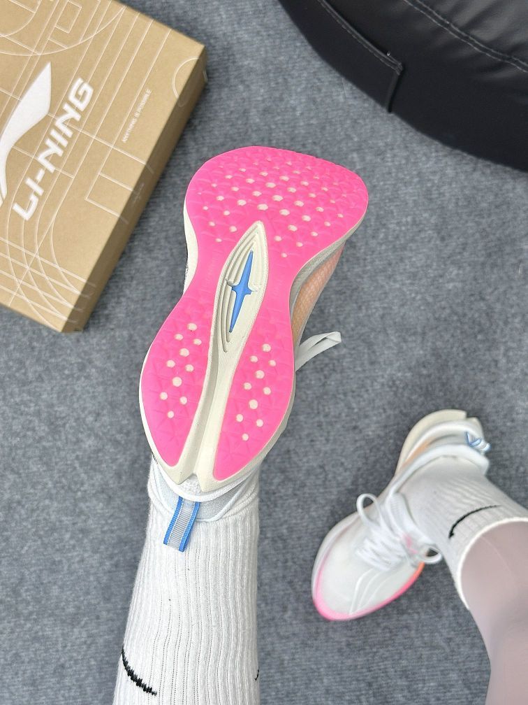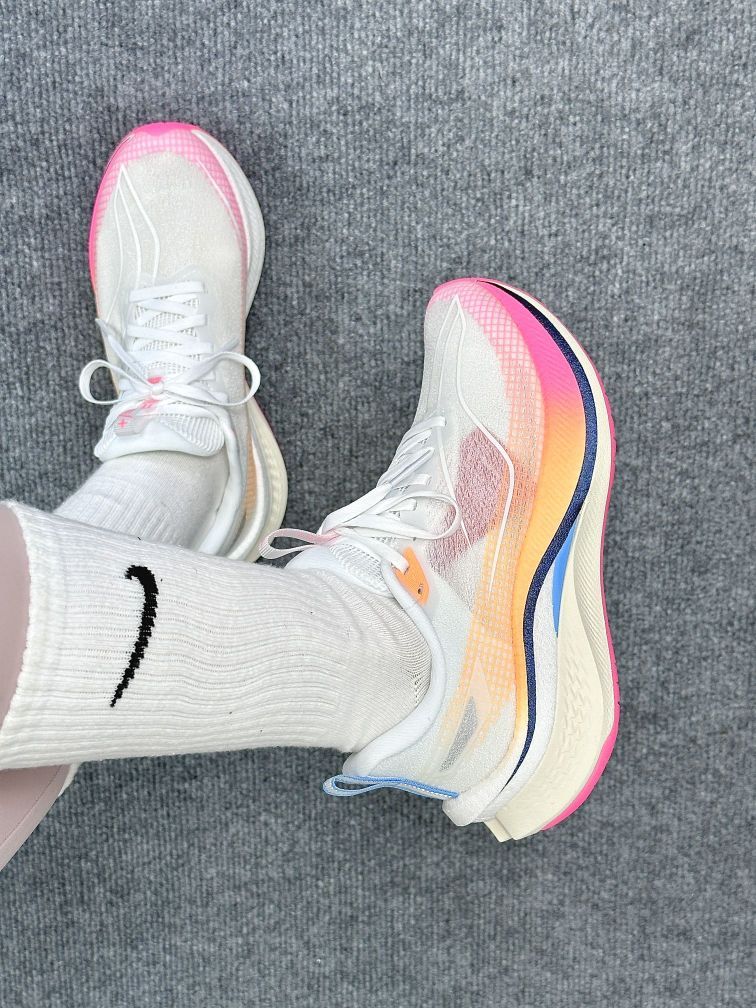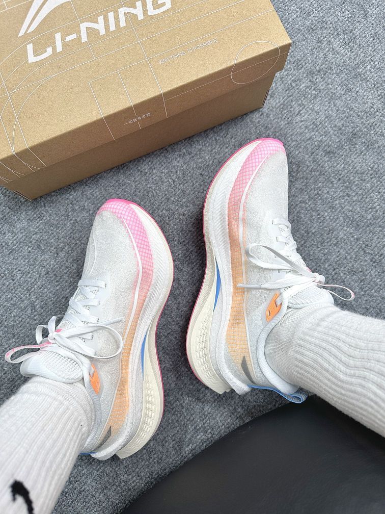 ⭐hello 这里是草莓圆圆酱 今天给大家分享的是很适合春天跑步穿的跑鞋 就是这双来自李宁的赤兔7pro啦 虽然这双鞋标注的是标准白的配色 但是我觉着还是蜜桃粉更适合这双鞋啦~ 黄粉渐变色彩真的好亮眼清爽哇 Mono纱材质的鞋面透气性也很Nice 要比上一代6pro蜜瓜纹路的Mono纱更顶 整体的上脚感受韧弹韧弹的 不仅跑步可以穿 上学通勤穿这双都可以兼顾啦