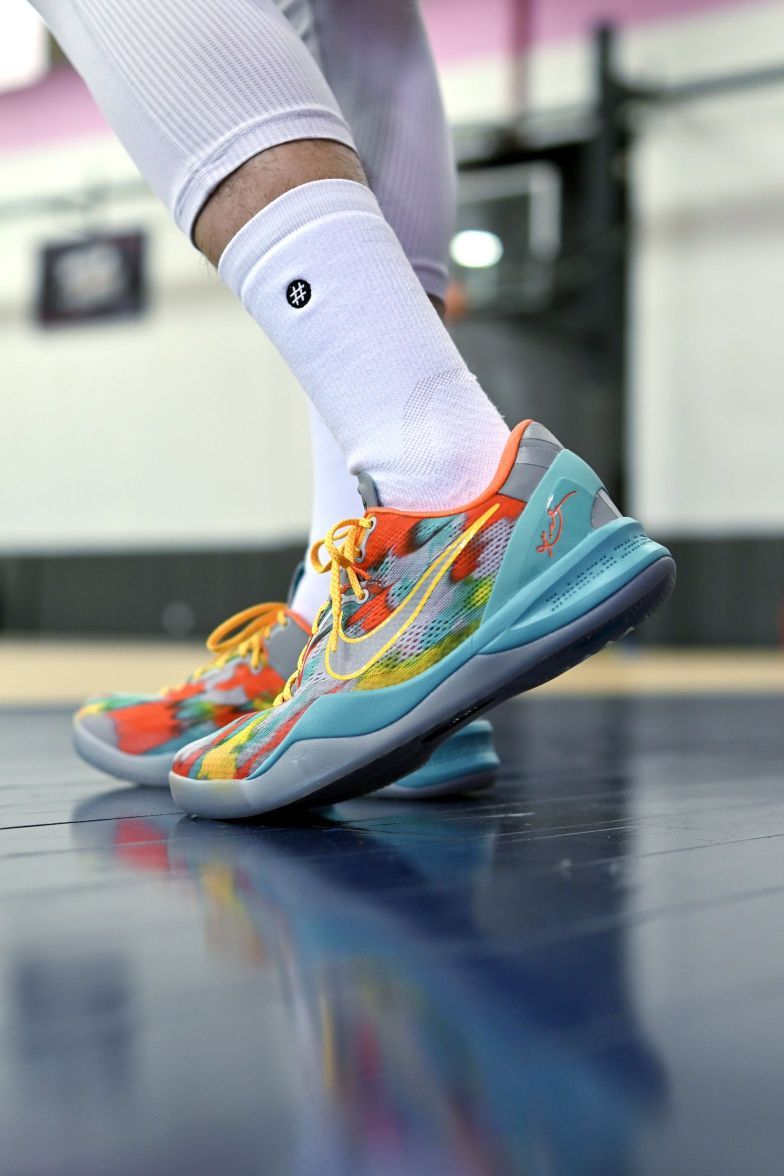 这双科8的威尼斯海滩算是目前最接近原年的版本了,毕竟薄鞋舌也是仅有一双复刻! ⚠️很多小伙伴儿最关心的自然就是价格问题啊,拿我这双42.5码为例,目前1.7k左右的价格我觉得是非常适合抄底的时机了,后续也不会再有过大幅度的降价(当然也不至于涨价的多离谱) ✅颜值方面我觉得比之前的白龙还有那两双绿紫色都要好看啊,整体也非常丰富,也是老大本人亲自上脚的配色。喜欢的朋友值得一冲。