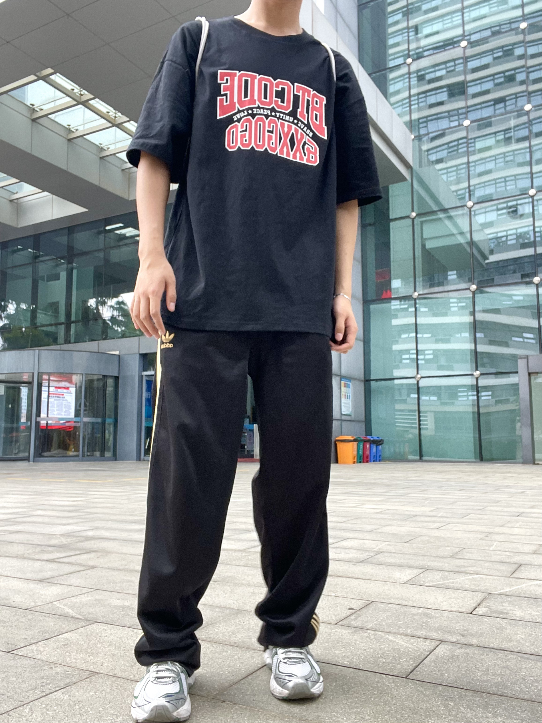 🔥今日穿搭分享,变身“体育风”达人!🏃♀️ 哈喽,各位bro!今天我要来跟大家分享一个超级有趣的小故事,以及我今天的穿搭哦~ 😉 早上,我穿着这件黑色粉字的bt x XXGOGO联名款字母Logo印花圆领宽松短袖T恤,下身搭配了一条阿迪达斯三叶草的条纹裤,脚踩一双亚瑟士的银灰运动鞋,兴冲冲地去了教资认定现场。👕👖👟 没想到啊,一进大门,就被工作人员给盯上了!他们上下打量了我好几眼,然后居然问我:...