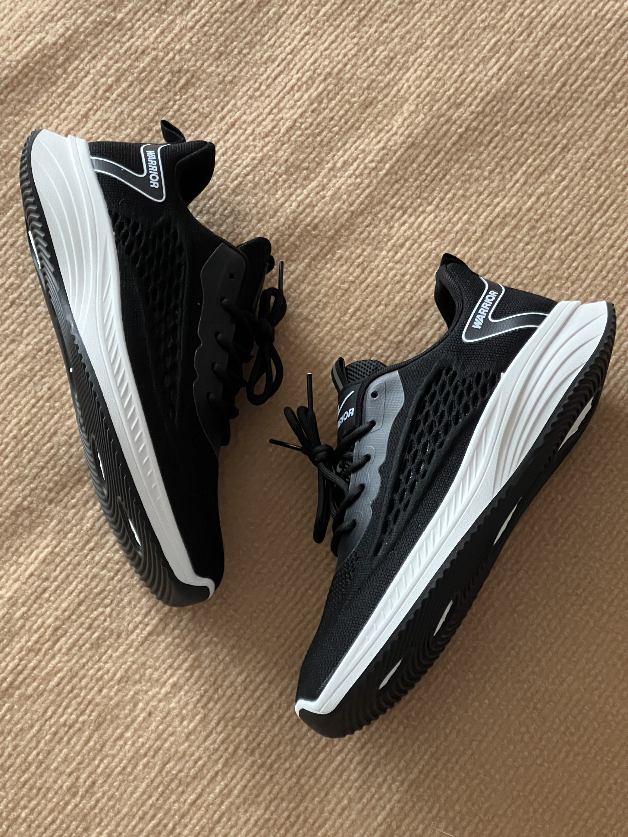 不得不说 口回力 真的是个宝藏牌子啊 两位数的跑步鞋做的这么好 鞋子整体很轻便 爆米花 鞋底超软针织鞋面透气得很 黑面白底就很有灵气脚 感舒服不挤脚 尺码很标准 给老公夜跑用的 一点不累脚。