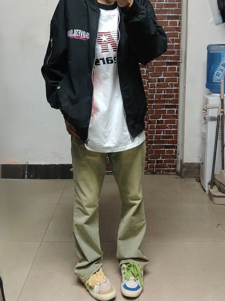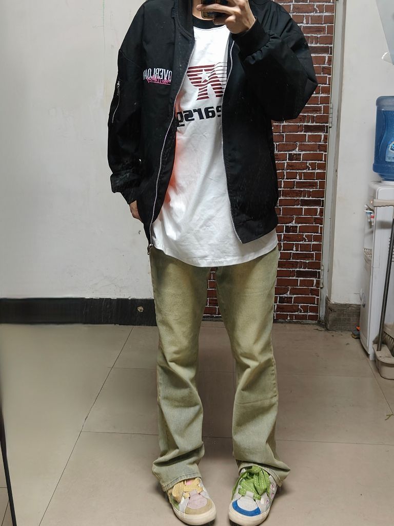 上身是美式T恤➕oxo夹克外套 鞋子是鸳鸯配色低帮板鞋 再搭上这款牛仔中腰版型裤 真的很帅~ 这款裤子版型很好,也很显瘦,还很百搭,真的太好穿了~ 🧍♂️ 穿搭风格:美式风 👔 上衣:oxo 👖 下装:新因素