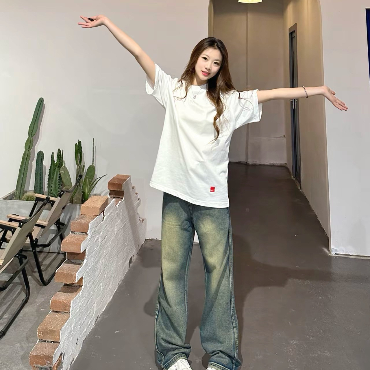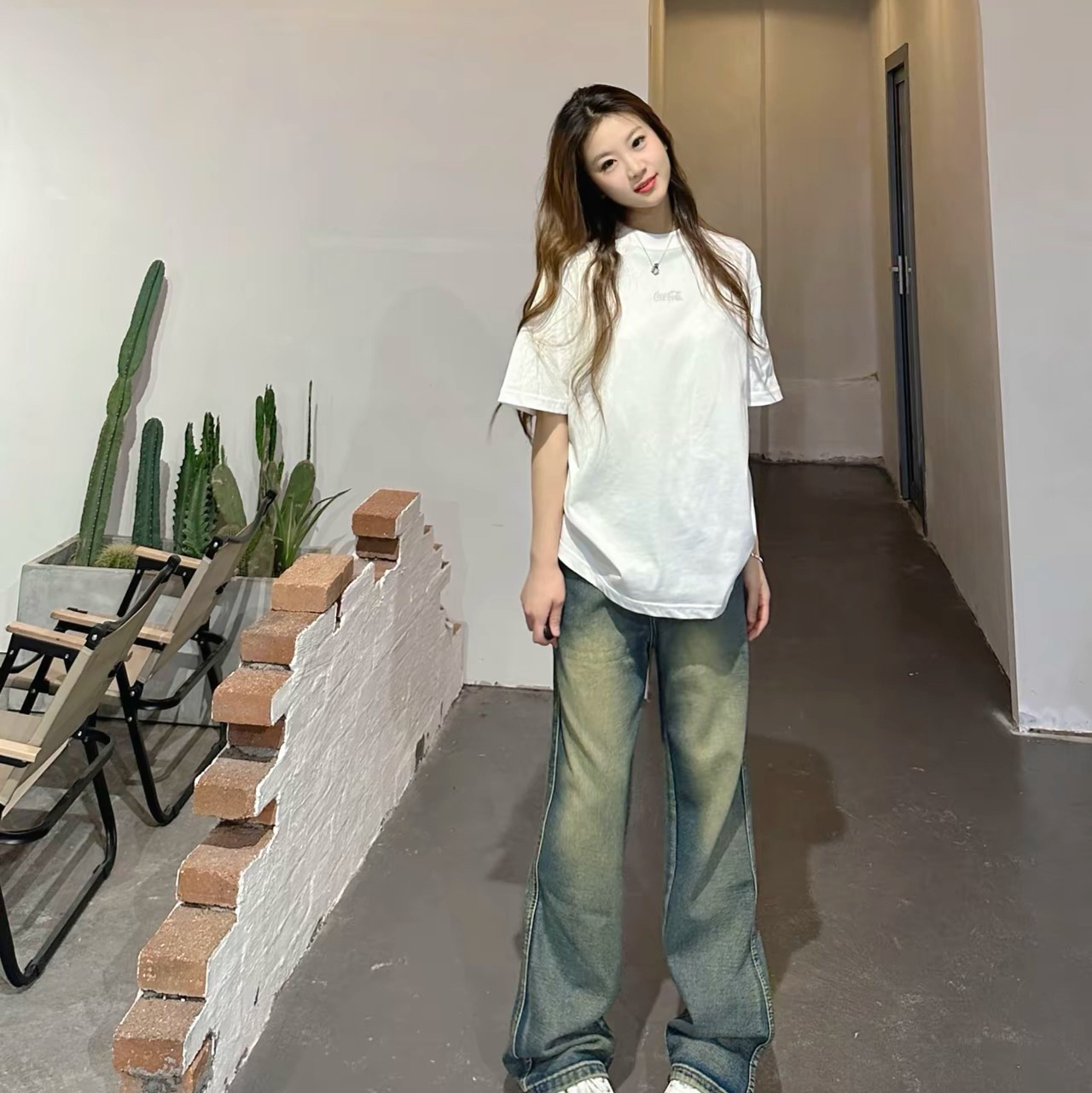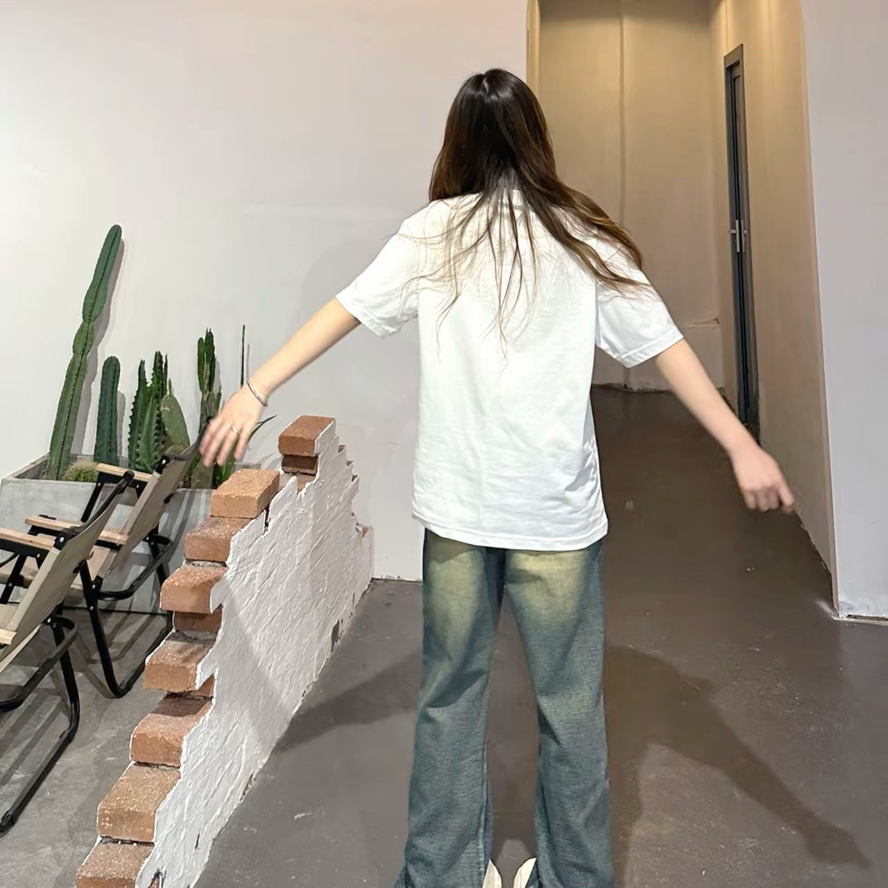 想要显高显瘦的穿搭吗 ‼️那就来看看我吧~喜欢的小伙伴们快去搭配起来吧~ |上衣👕 上身是一件宽松圆领字母印花长袖T恤是一件薄薄的长袖 忽冷忽热的天气刚好合适衣服的前面是字母印花图案 💕背后是满印 图案的设计感十足 很时尚 穿着也不显胖 Ti裤子👖 下面搭配的是一条水洗复古微喇牛仔裤母这个蓝泥染色我好喜欢呀 🤍很好看很青春裤子的版型是直筒微喇的 修饰腿型 显高显瘦 🤳我的身高体重是172 51 穿...