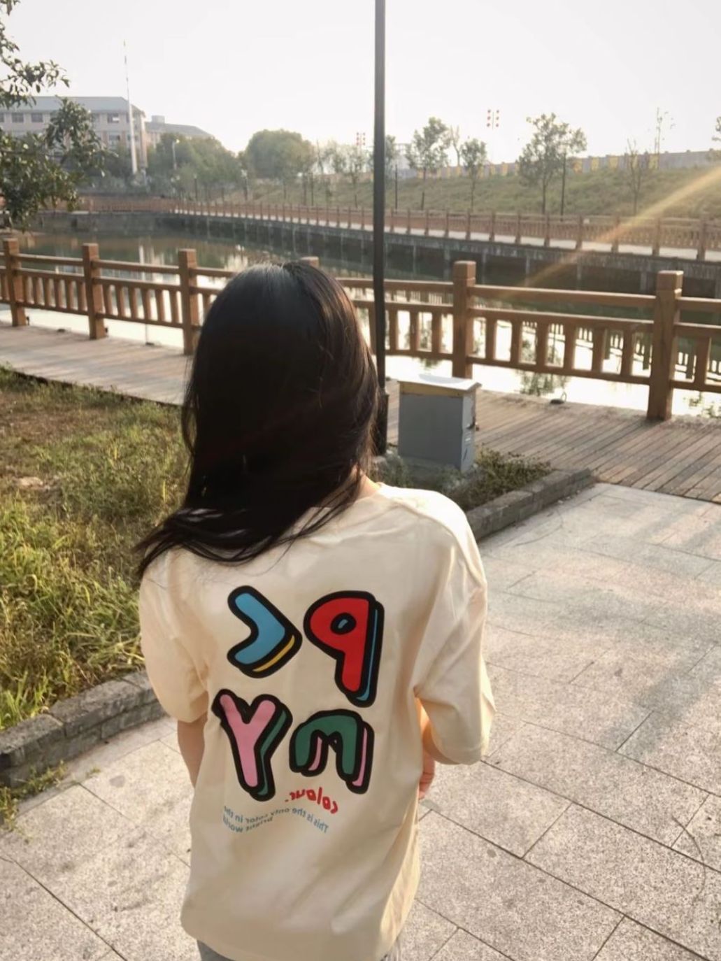 衣服的版型很好,属于藏肉型的! ☑️细节:衣服上面的印花是彩色的,很卡通很童趣的色彩搭配!感觉夏日缤纷呢💚💙 ☃️材质:100%纯棉柔软舒适 真的好看又好穿 🦚适合人群:无论男生女生 上班族/学生党都不会出错 图源网络侵删