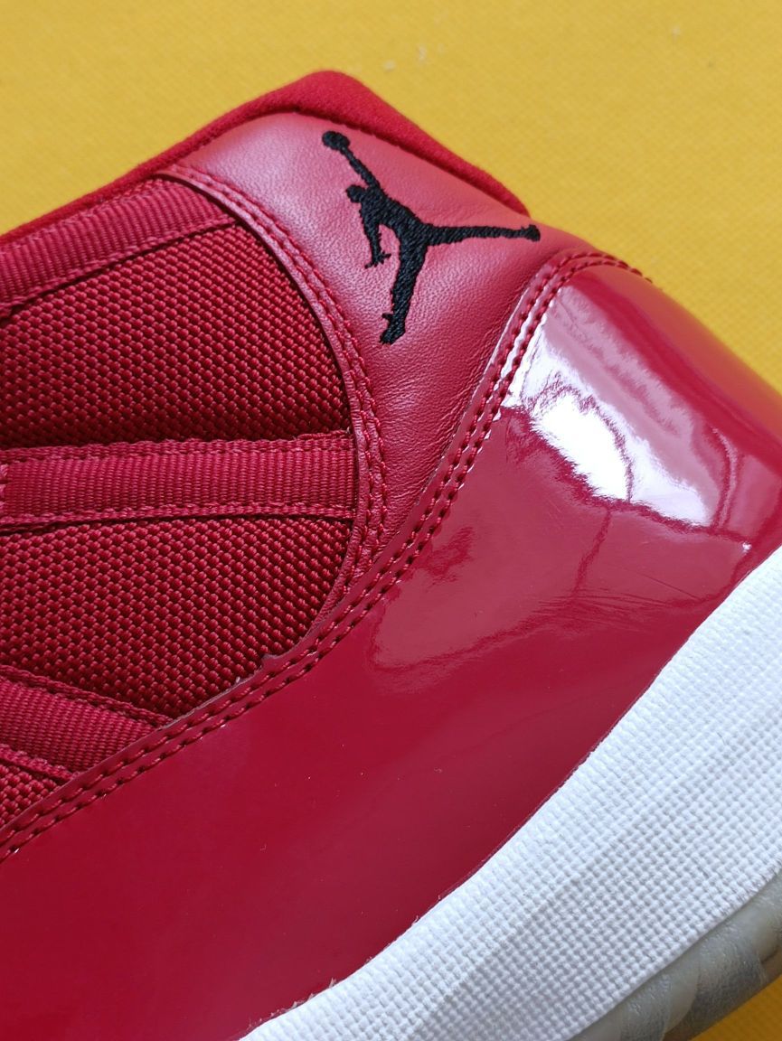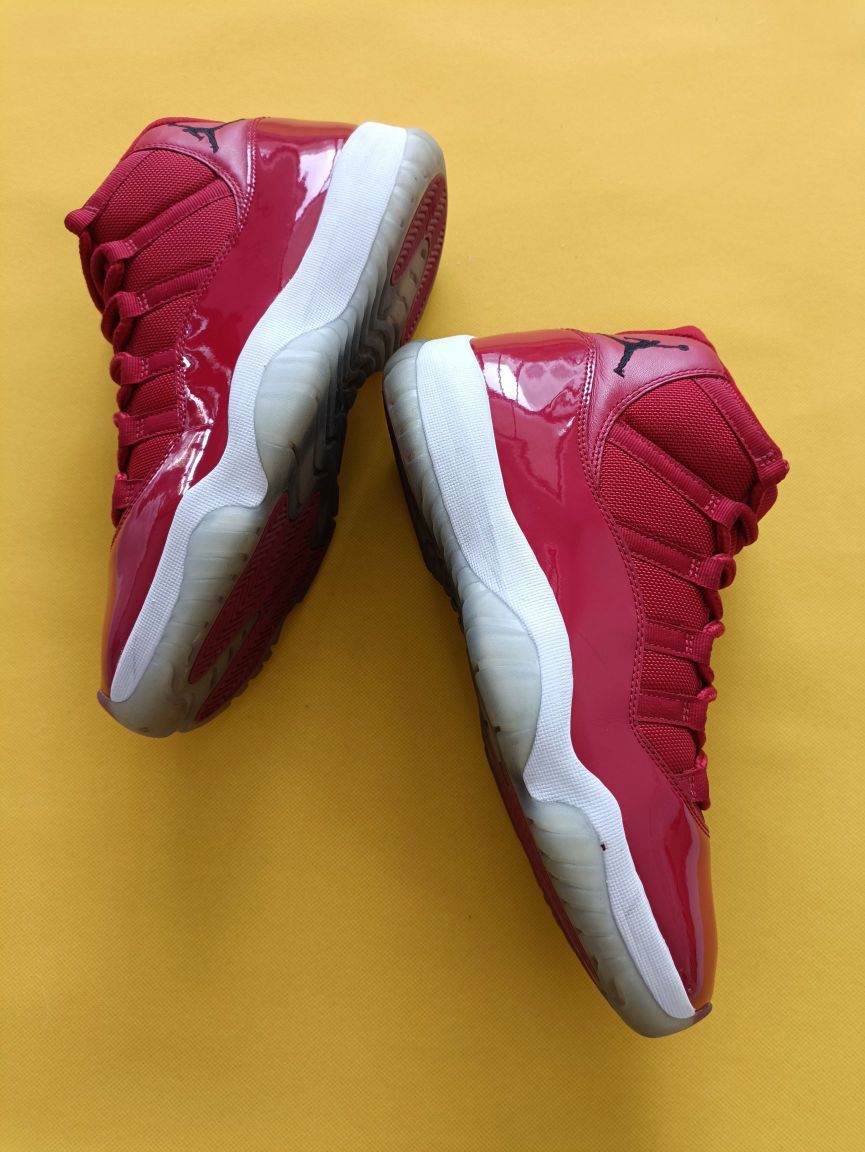对于11代大家肯定不陌生,个人也偏喜欢11代的aj,这双全红的漆皮11,有着一种喜庆的感觉,只不过漆皮穿着几次就有很明显的折痕,但上脚可拉风了~