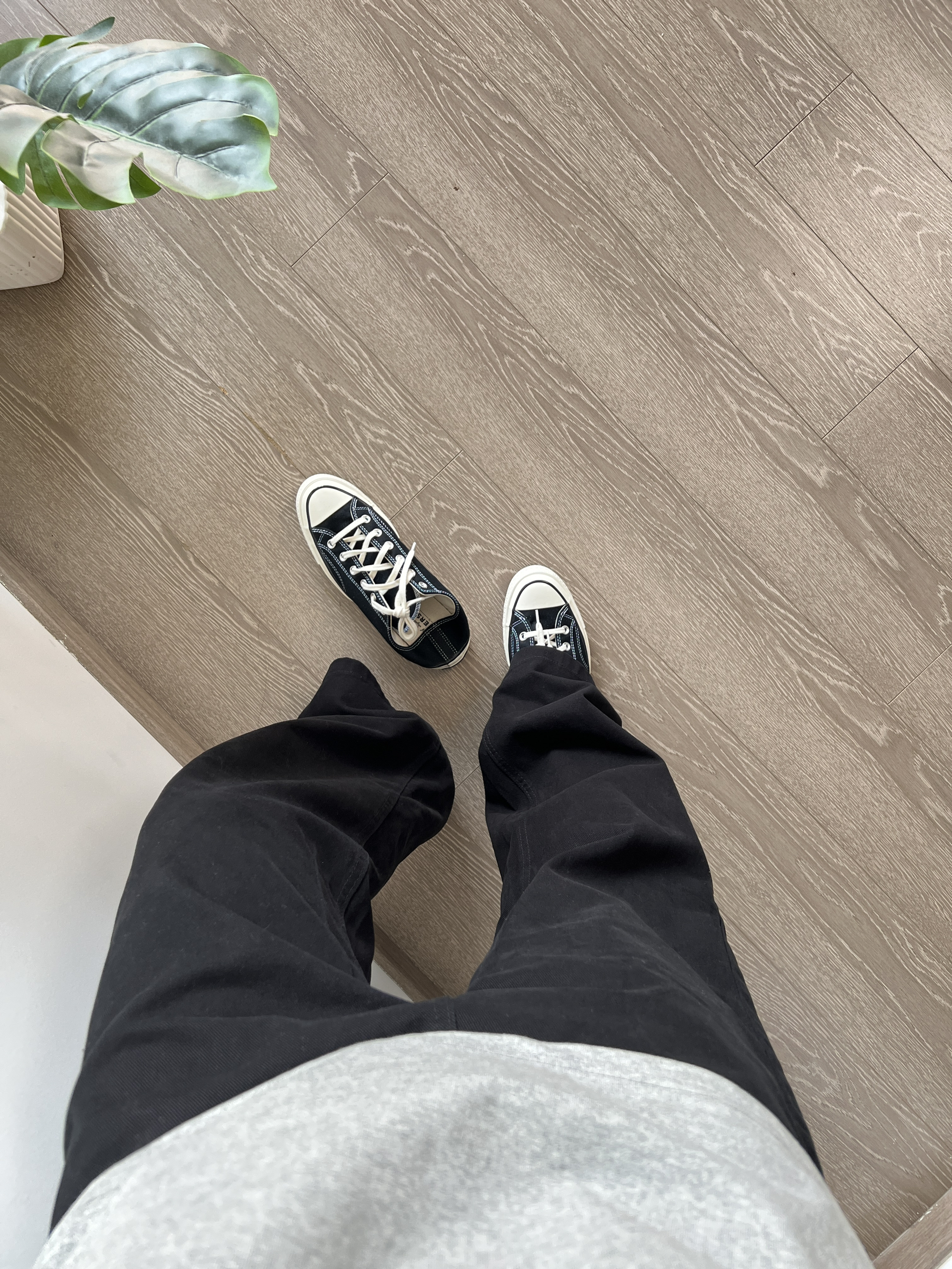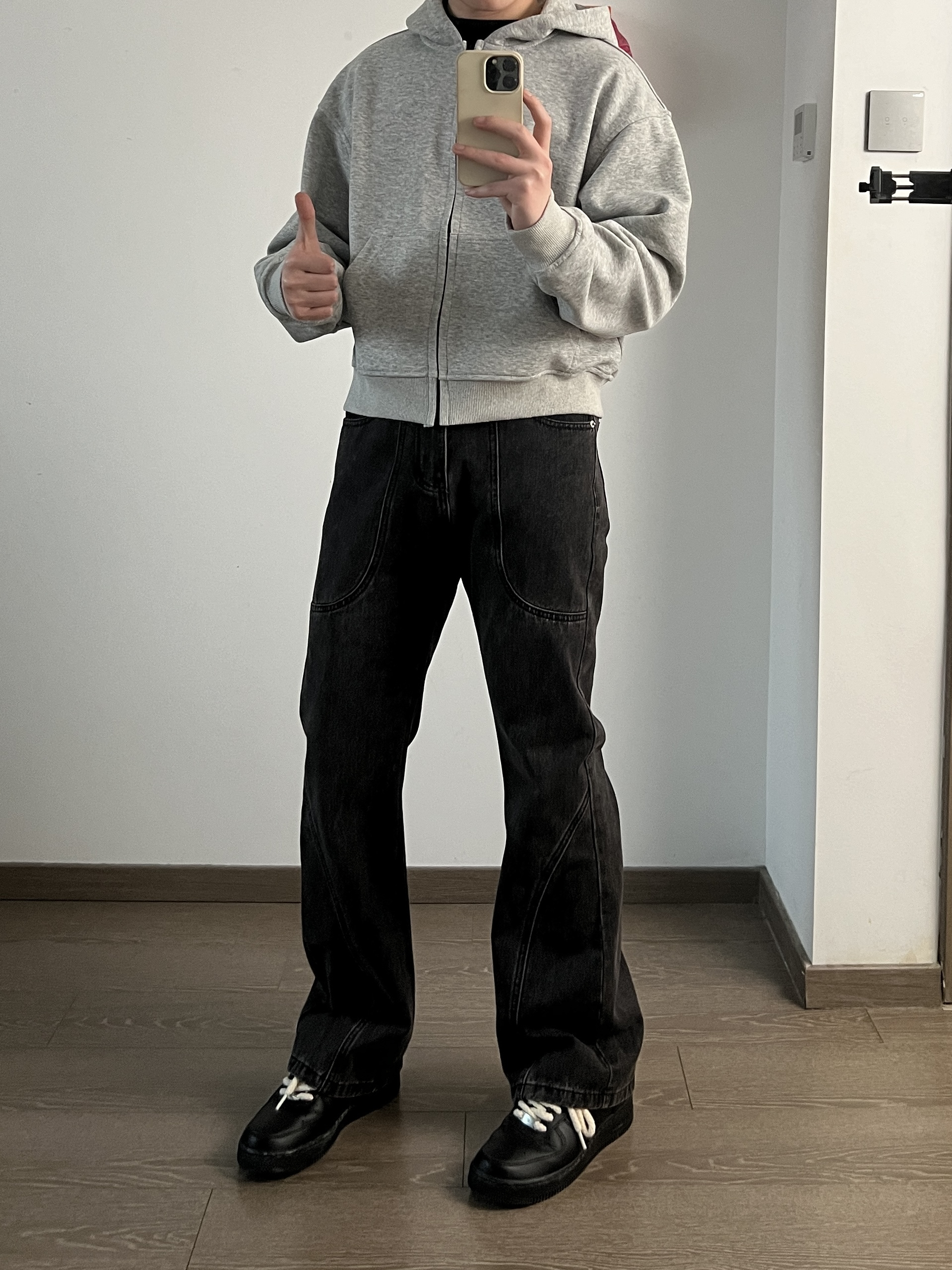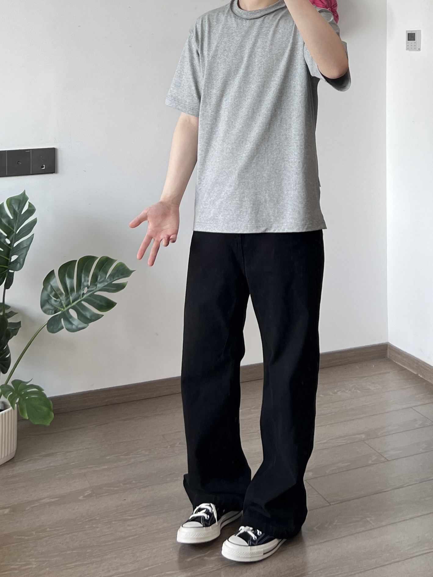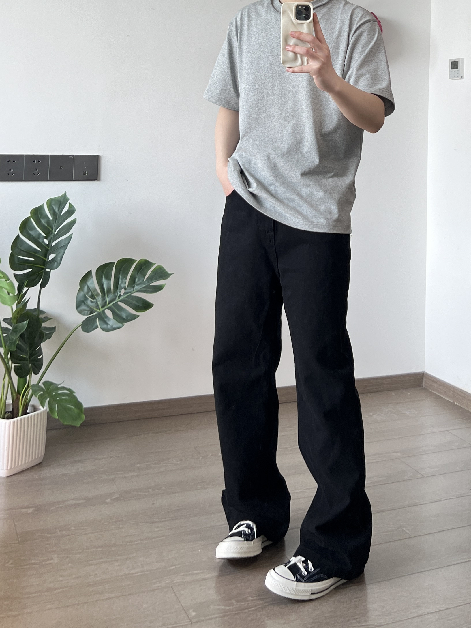 身高|体重:173/130 🧍♂️ 穿搭风格:简约 👔 上衣:灰色T恤 👖 下装:水洗黑色牛仔裤 👟 鞋子:匡威 🍑🔗:CCCYH