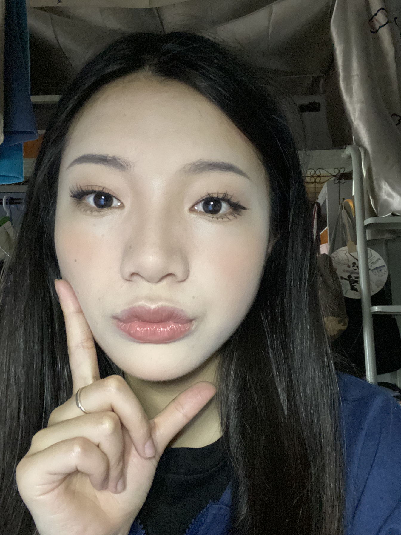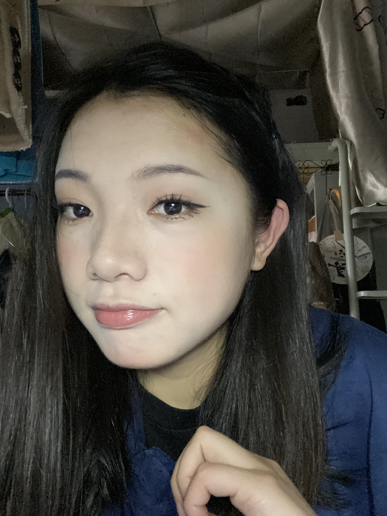 无美瞳无滤镜无头发造型的一个春日嫩妹妆容 姨妈期眼睛那块有点肿(见谅 粉底:Nars超方瓶 腮红:底色紫色 叠加杏色 遮瑕:歌剧魅影 修容:诗佩妮旧版 假睫毛:懒人三部曲 眉笔:花洛莉亚浅灰 口红:Nars208 下午考试祝我顺利呀~