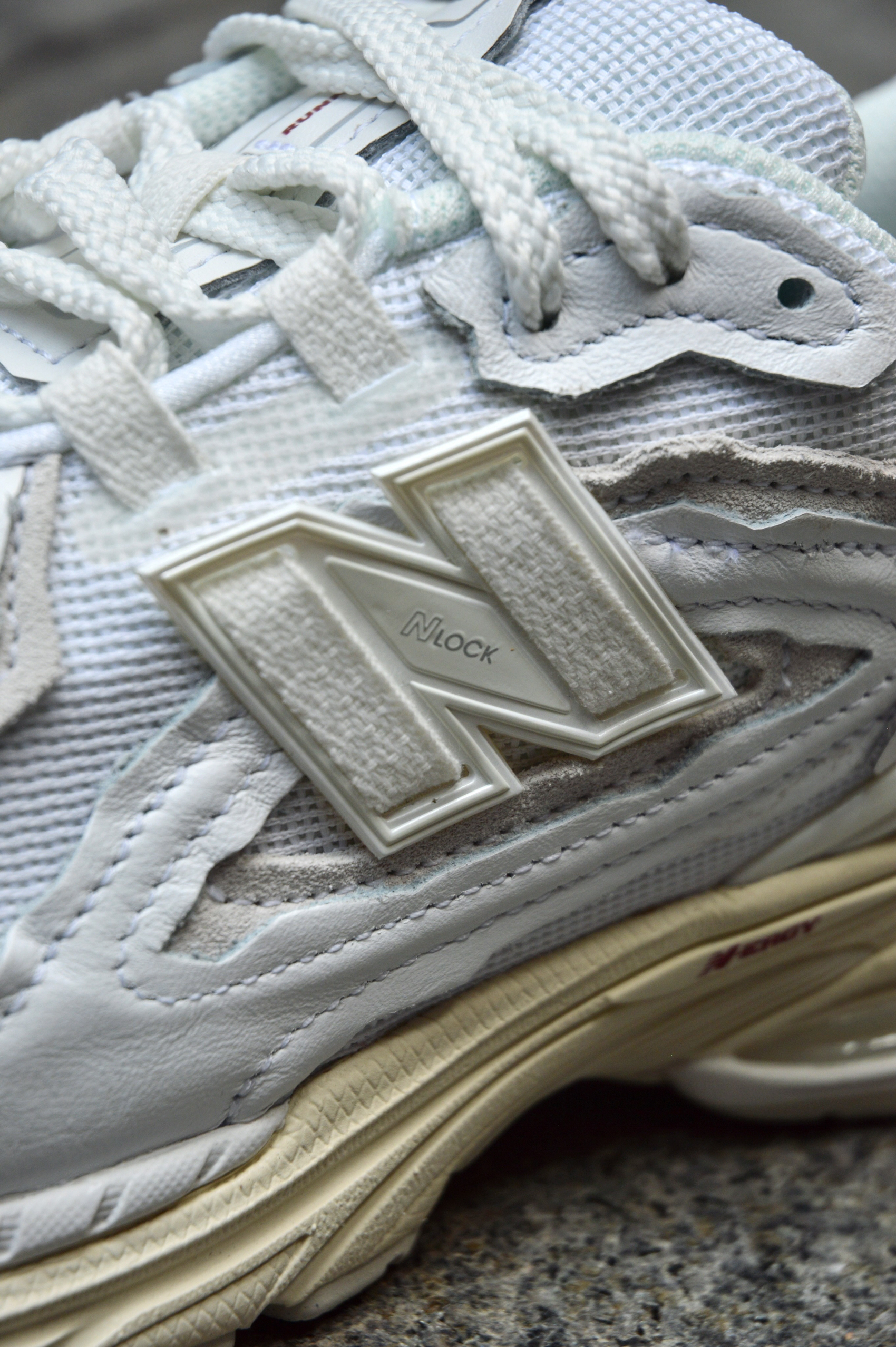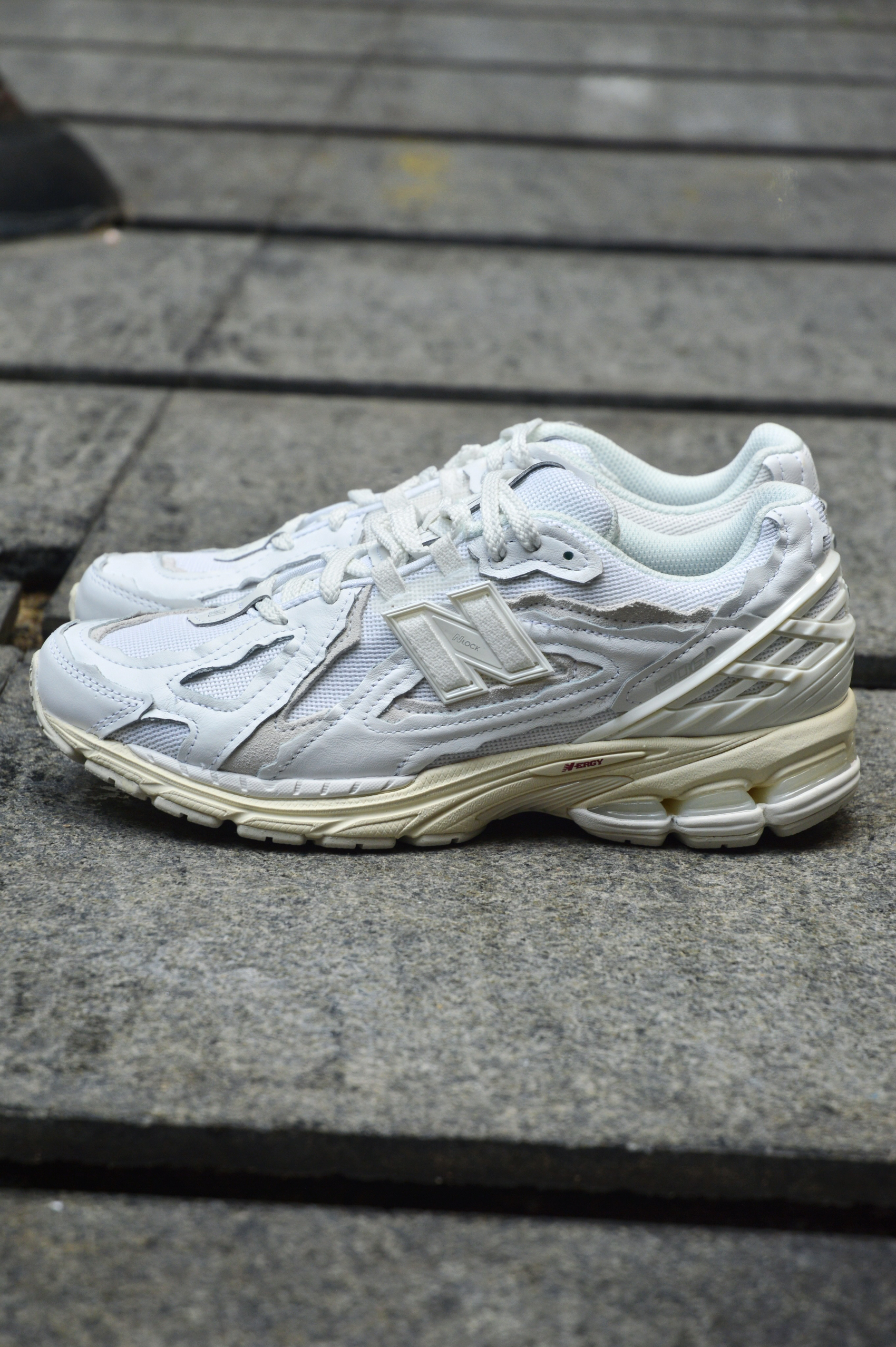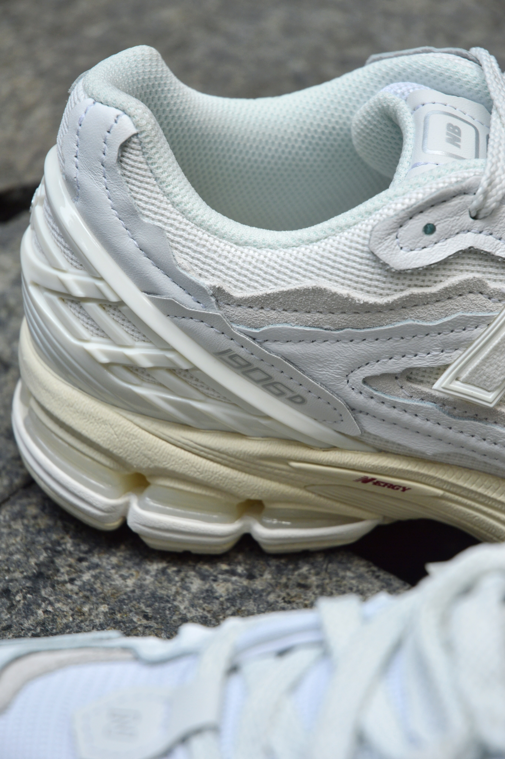 没有想到1906R这个系列出了这个配色 鞋面整体采用了纯白色的设计,鞋身采用了拼接的皮质与大面积网眼材料。 同时整体的视觉效果上兼具了时尚与复古潮流的元素。 鞋面整体还有一定的破坏解构设计,使整体的质感直线上升。 中底还是一如既往的采用了N-ERCY,同时还具备了一定的运动性能,日常通勤忘记带专业运动鞋,1906R也能满足你一定的需求量。