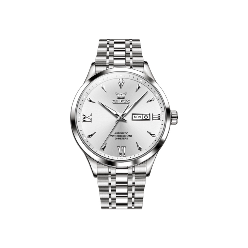 本篇笔记关联了OLEVS/欧利时 超薄款时尚潮流简约镶钻镂空夜光商务风双日历防水精钢带腕表全自动机械男女同款手表 钢带本白 男款等商品,为用户提供真实的使用体验和购买参考。