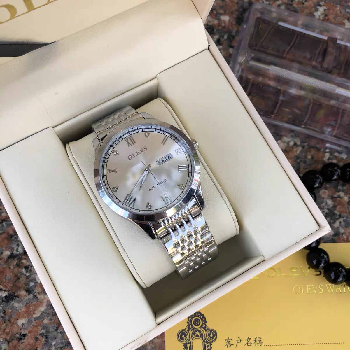 本篇笔记关联了OLEVS/欧利时 超薄款时尚潮流简约镶钻镂空夜光商务风双日历防水精全自动机械男女同款手表 钢带本白 男款等商品,为用户提供真实的使用体验和购买参考。