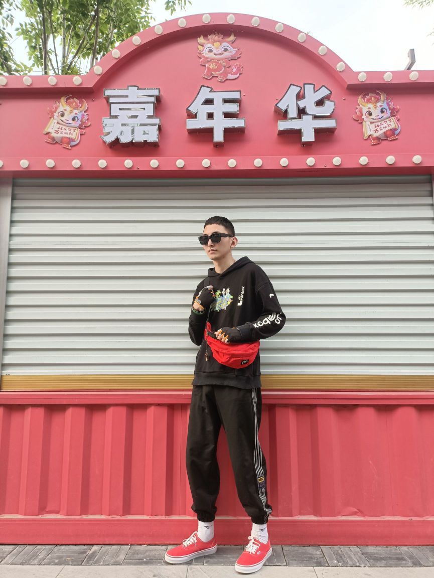 春日出行计划,宽松的连帽卫衣,搭配束脚裤,脚踩红色板鞋~做喜欢的自己♥整体爽爽快快,春日才是最百搭的季节~你不要太酷哦🙄