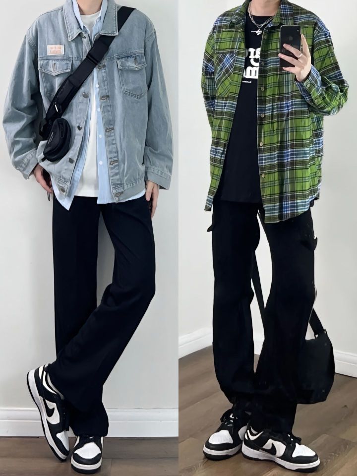 牛仔外套➕深色牛仔裤,学生妙变时尚潮男 防晒短袖➕工装休闲裤,妥妥学长风范 白色短袖➕浅色工装裤,少年感十足的青少年