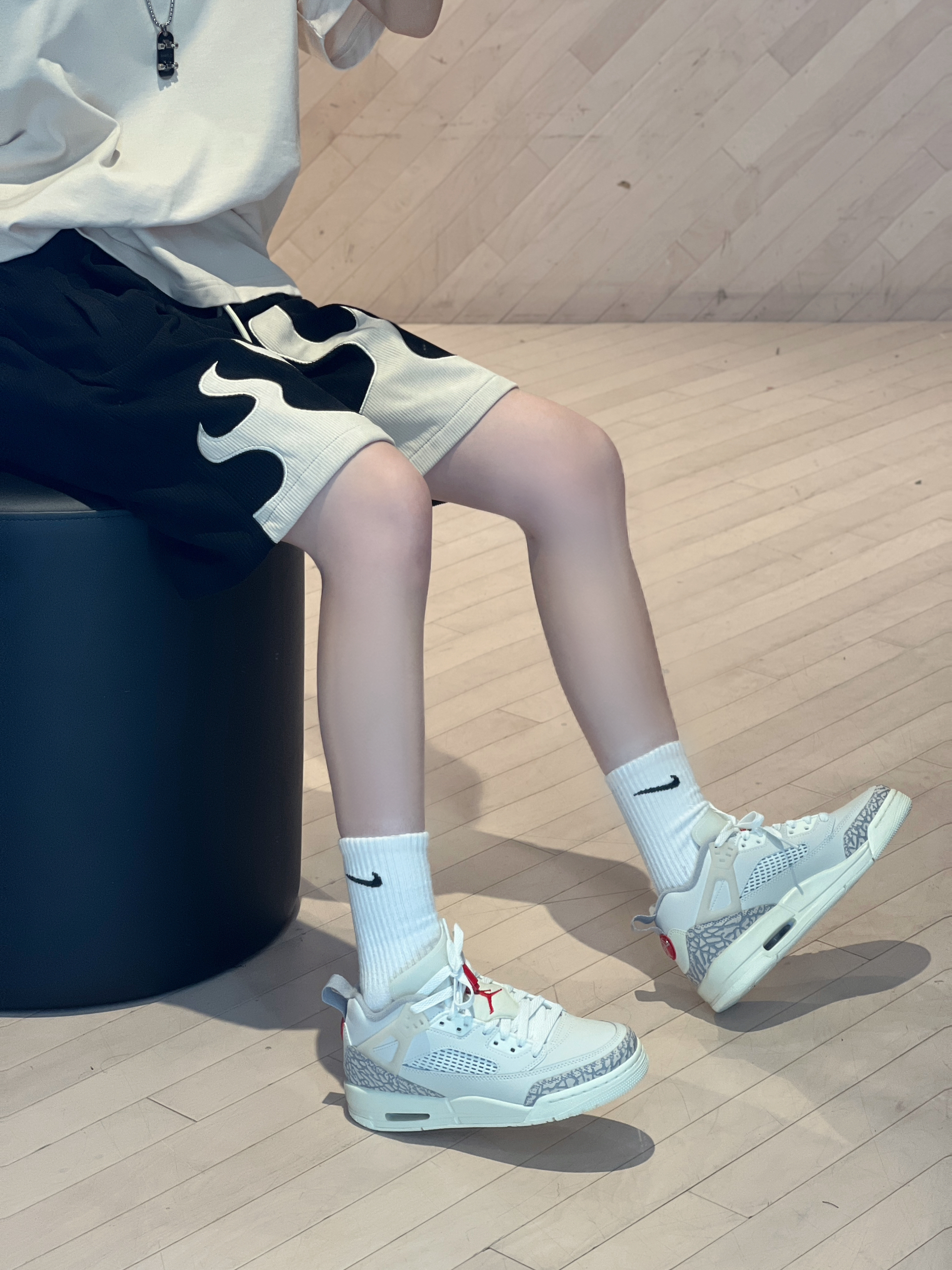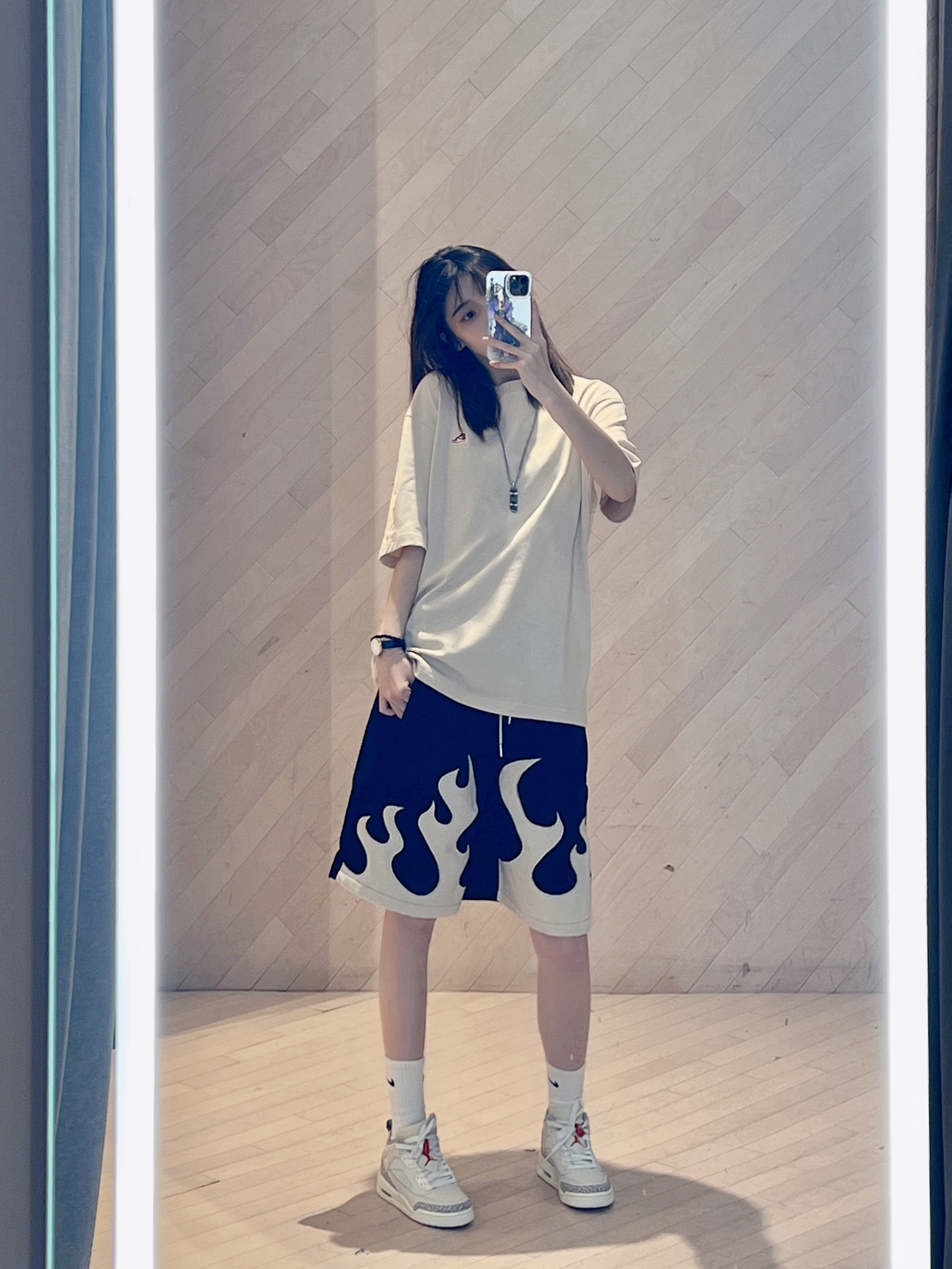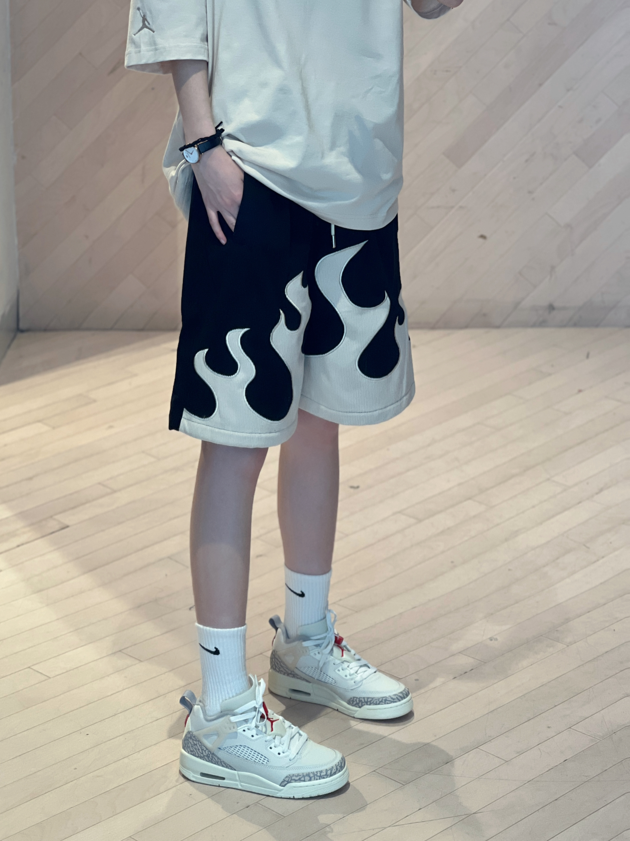 今日穿搭杏色带点黑无性别穿搭主打个舒服😌 Jordan经典T恤搭配👖 COLDSTONE 🏠 🔥元素从裤腿往上蔓延上身真的太🆒 灯芯绒的料子上身不显厚重反而有质感👍 穿着也很舒服 男生穿也会很好看! 浅色系太适合夏天啦~