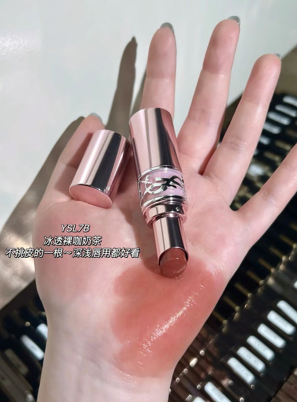 YSL家的第一支有色润唇膏! 很诱人的水润透光感 随便涂涂就美丽 是天生好气色伪素颜必备呀! 粉银外壳率性又温润给春季添色~ 🌟YSL7B本色冰透裸咖奶茶 不挑皮的一根~深浅唇用都好看 🌟YSL5B 透光赤茶红茶玫瑰冻 天生红润好气色!黄皮姐妹会很爱~ 🌟YSL3B 透光粉橘蜜桃白开水 适合白皮 是天然去雕饰的粉嫩~ 🌟YSL44B 透光灰粉 露水玫瑰灰粉高级的清冷感~!