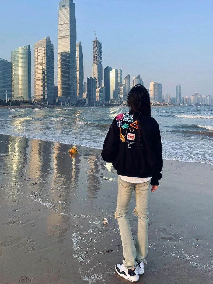 ❤️棒球服真的人手一件!这件黑色勋章🎖️棒球服 设计感很棒 美式运动风街头感十足 有志球员风 又帅又能打 ❤️印花图案立体感很强 版型不挑人 棒球服搭配破洞牛仔裤再合适不过了 穿上秒变大长腿 直筒版型设计可以修饰腿型 是实用百搭款~ (图片来自博主:_BLUE)