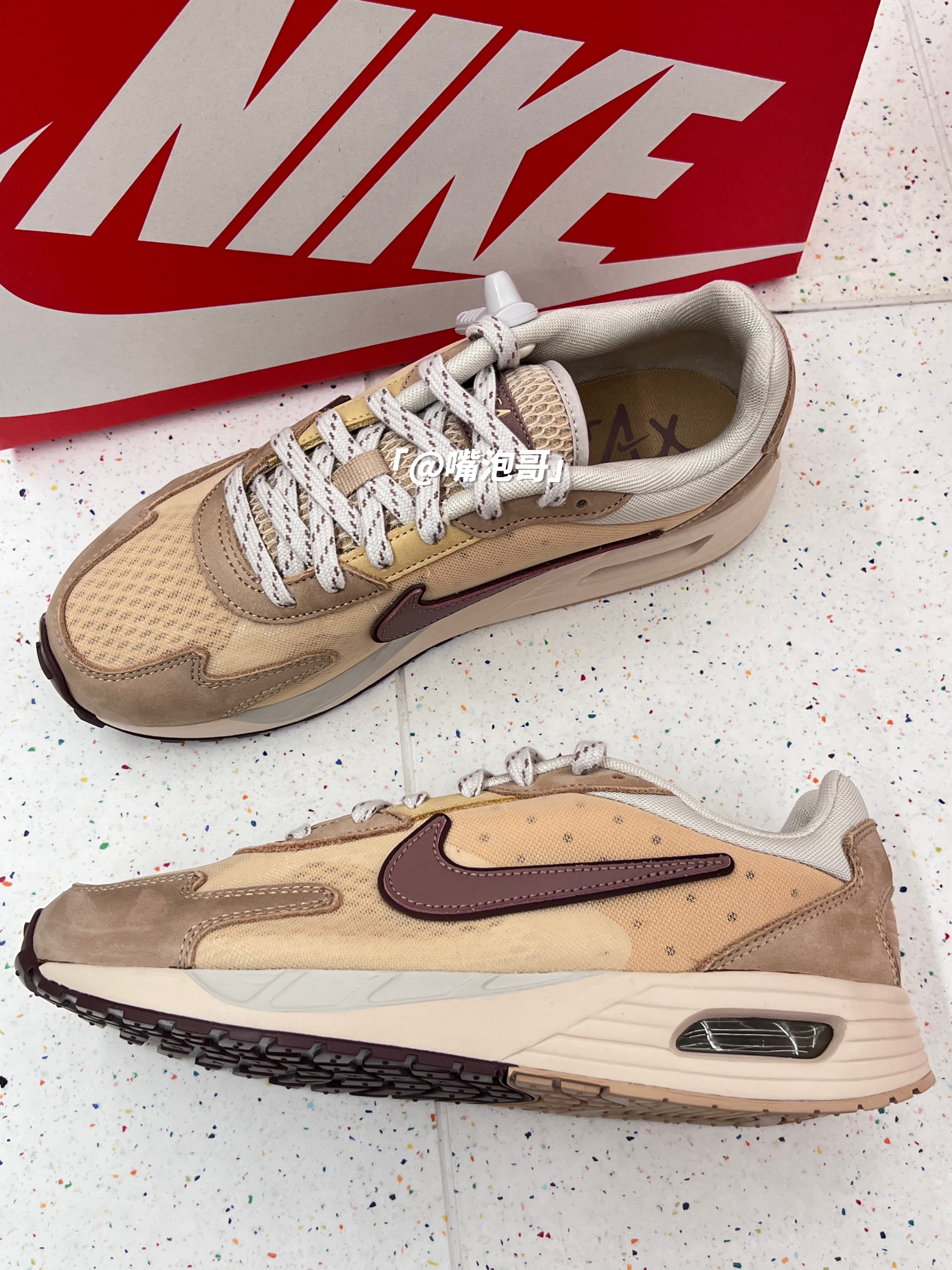 👟:Air Max Solo 棕色 简介: 鞋款是一双Air Max系列的休闲鞋,整双鞋子选用了棕色来呈现,日常穿搭起来还是蛮好搭配的,鞋面采用了网眼布与皮革组合,搭配上中底双缓震科技,使鞋子不仅有脚感同时夏天穿也不会闷脚。 细节: 鞋面采用了复合织物网布与皮革的组合,使鞋面具有良好的透气性及强度,鞋身两侧的swoosh选用了棕色皮革制作,增加了质感,鞋舌同样用了网眼布材料,增加了透气...