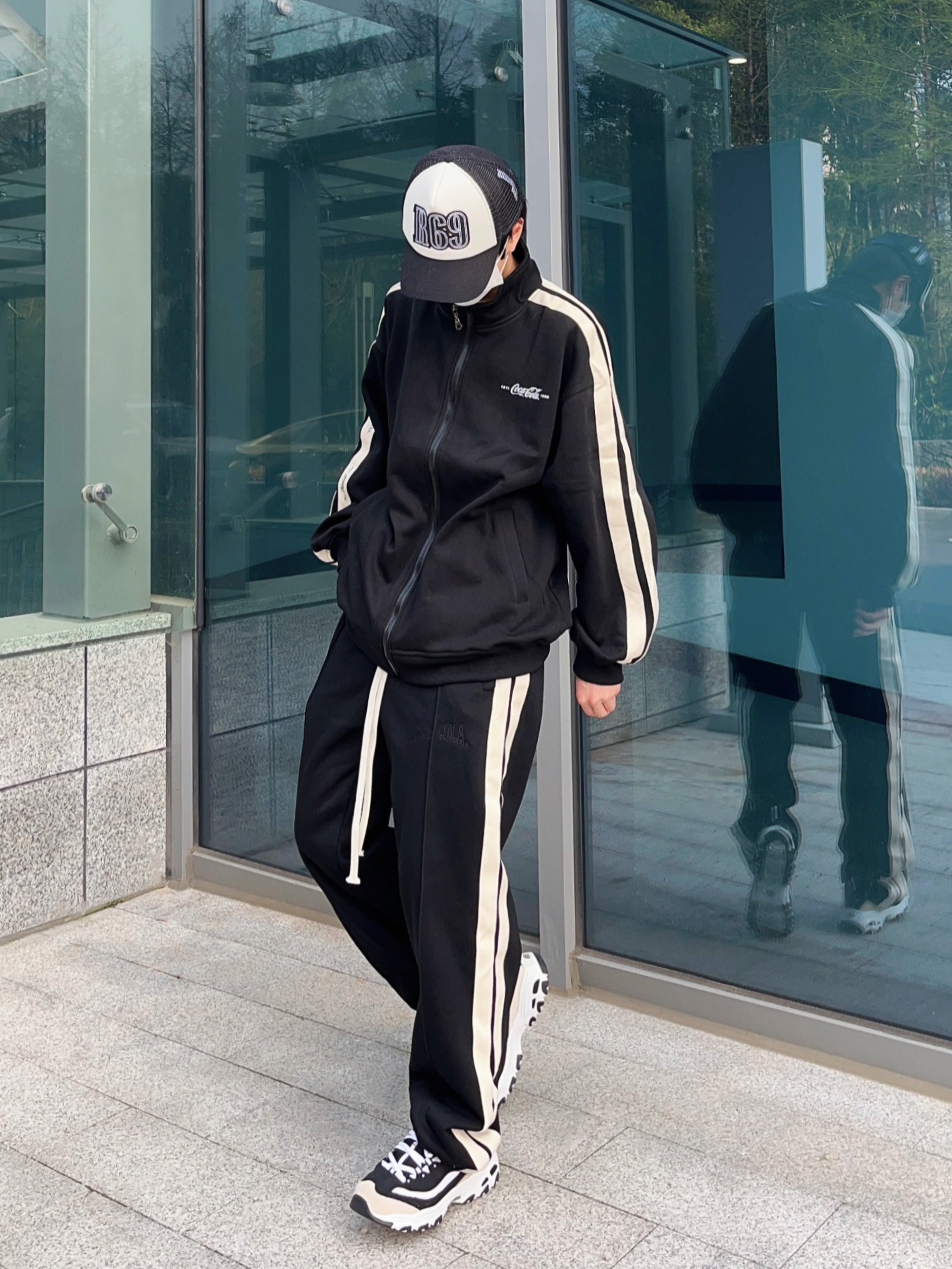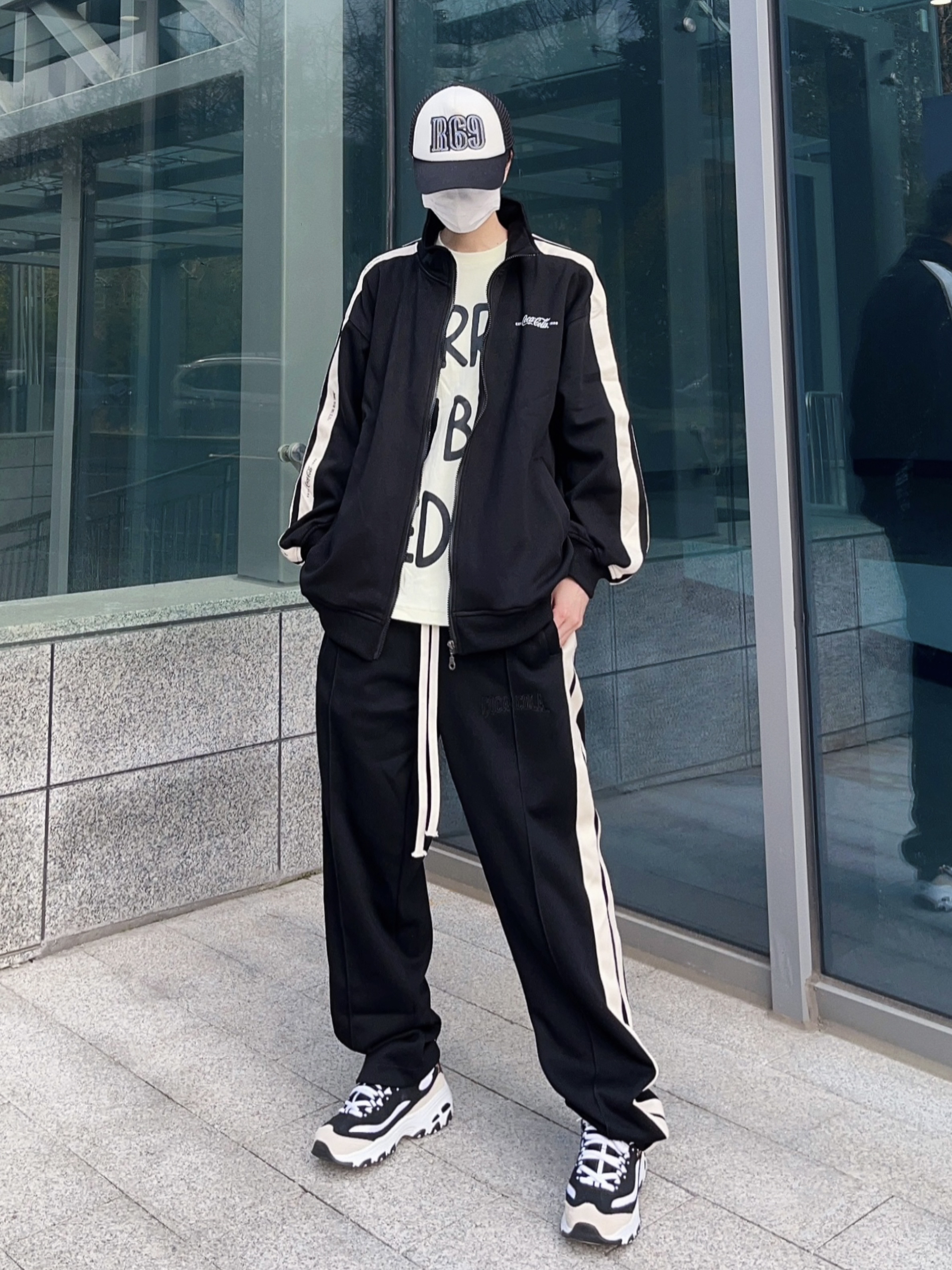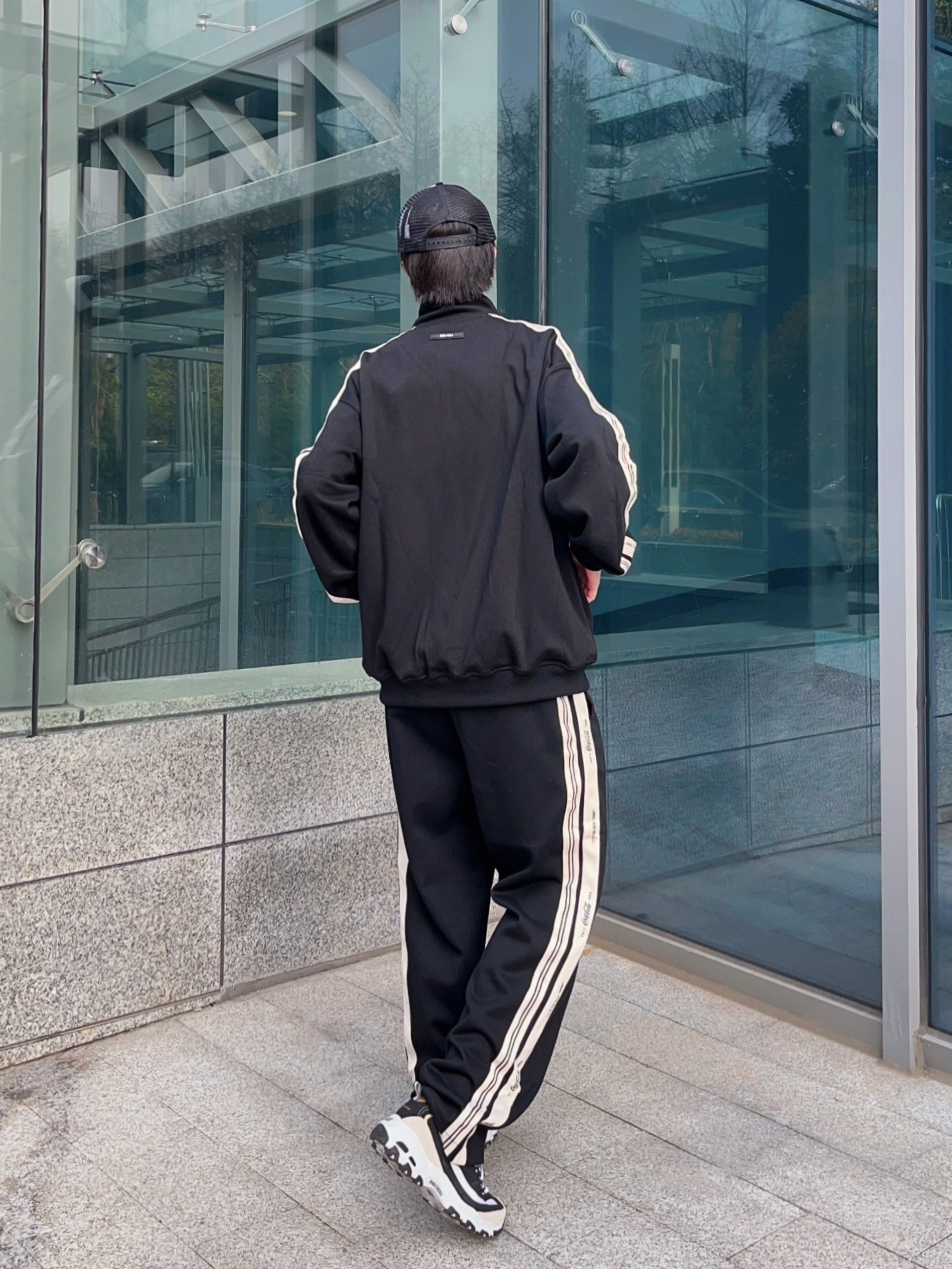 Dio今日份营业时间 春夏昼夜温差还是有点大呀! 对于咱们这种平时出门不太想动脑思考穿什么的人来说,一身简约的运动套装是最好不过了👌🏻 黑白的配色比较百搭,宽松的版型穿脱起来也方便,两侧的条纹设计又让整体看起来不会太单调,男女都好驾驭,日常穿穿就很舒服~