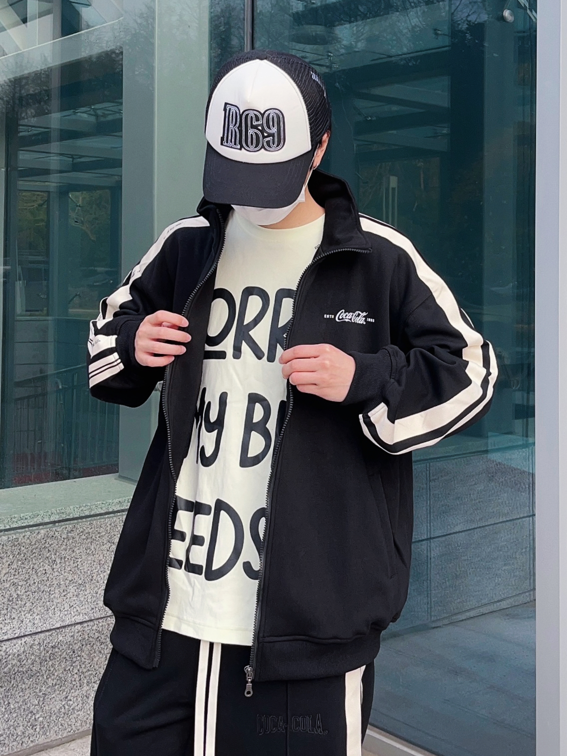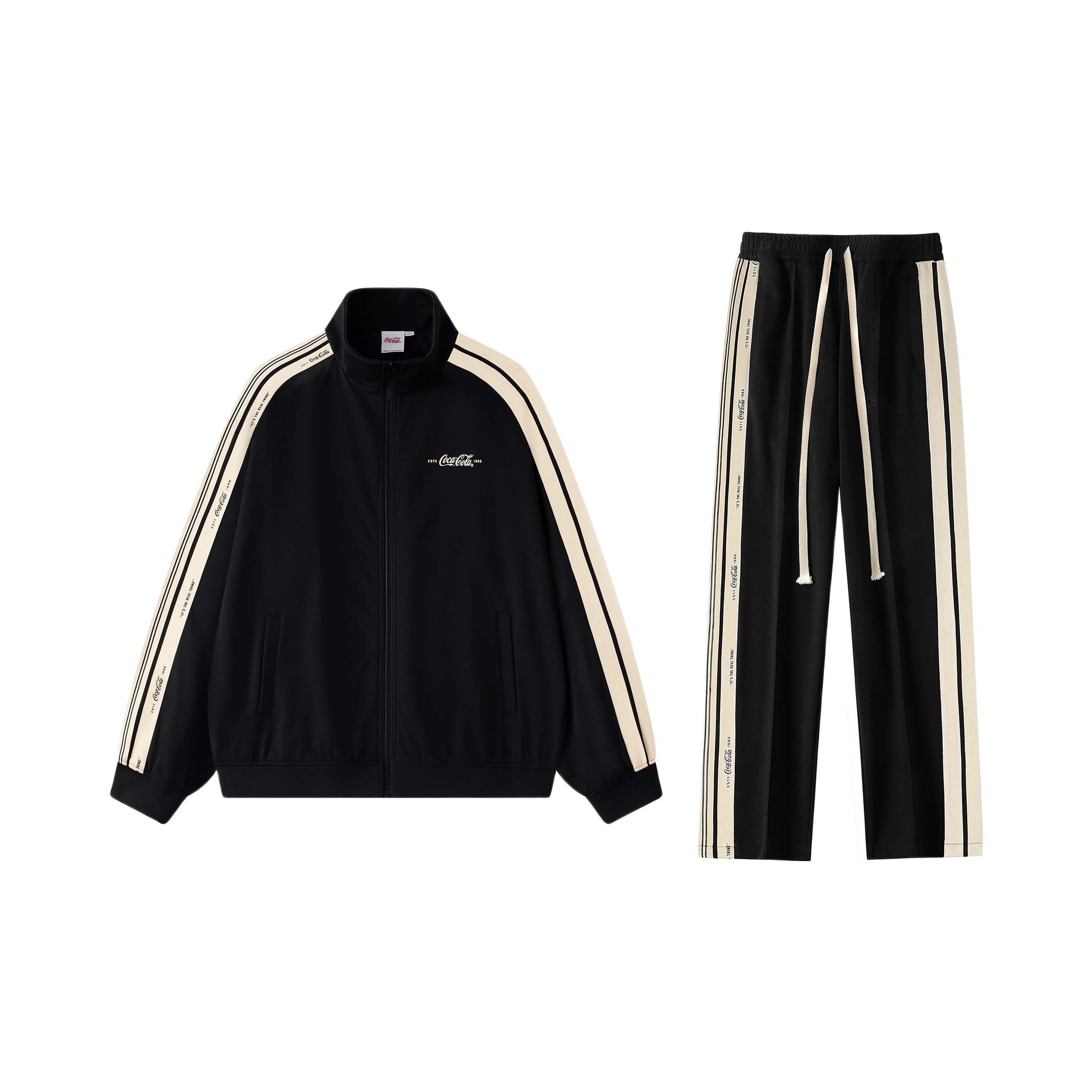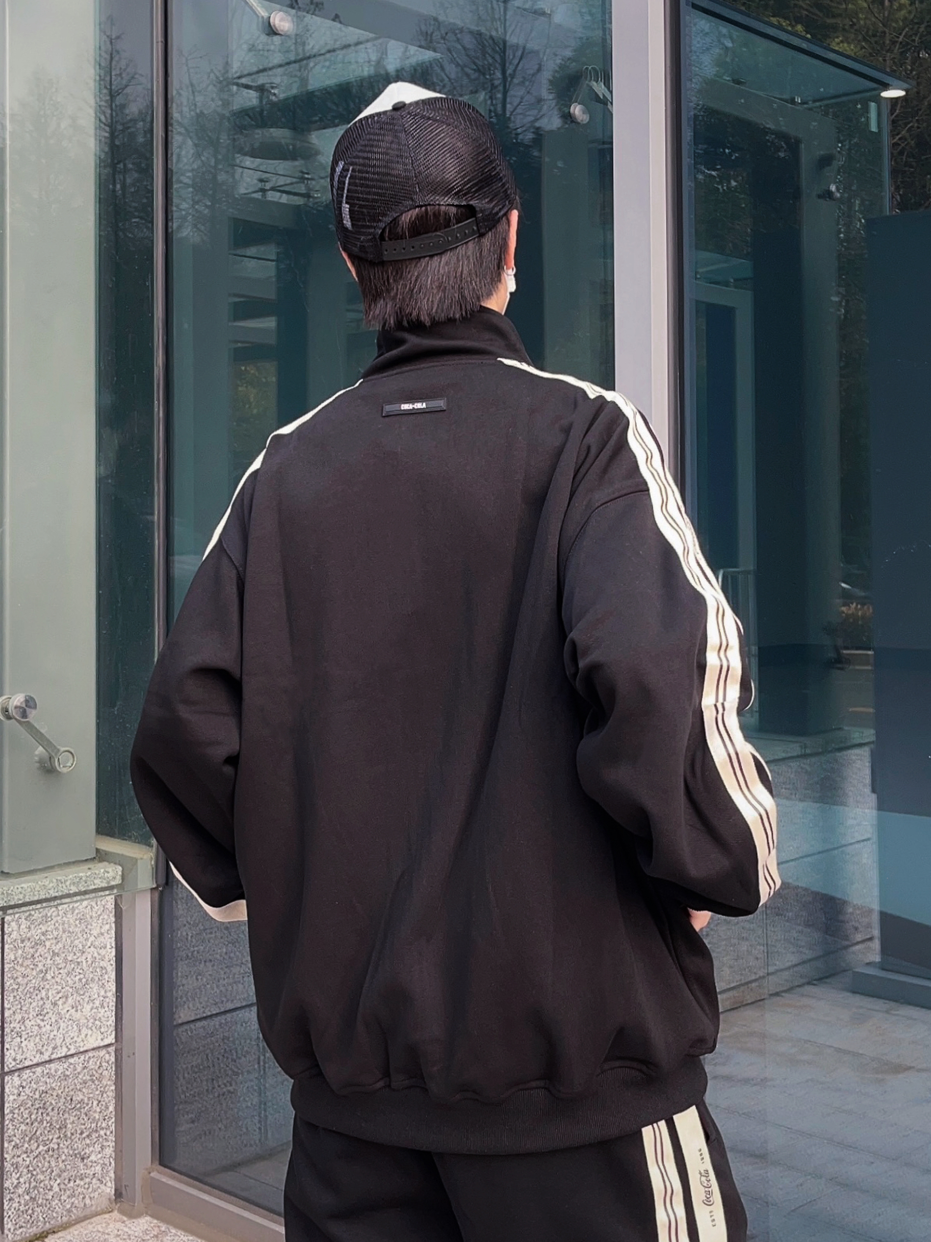 Dio今日份营业时间 春夏昼夜温差还是有点大呀! 对于咱们这种平时出门不太想动脑思考穿什么的人来说,一身简约的运动套装是最好不过了👌🏻 黑白的配色比较百搭,宽松的版型穿脱起来也方便,两侧的条纹设计又让整体看起来不会太单调,男女都好驾驭,日常穿穿就很舒服~