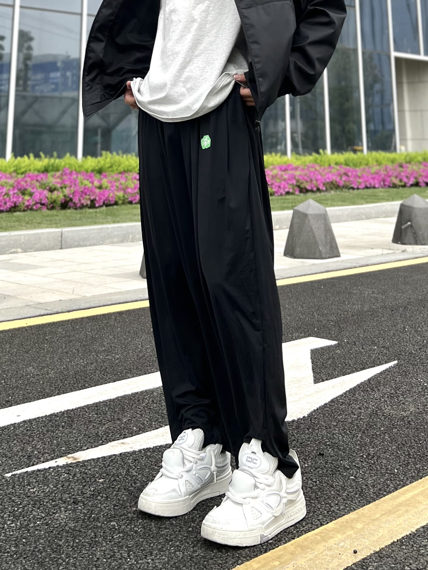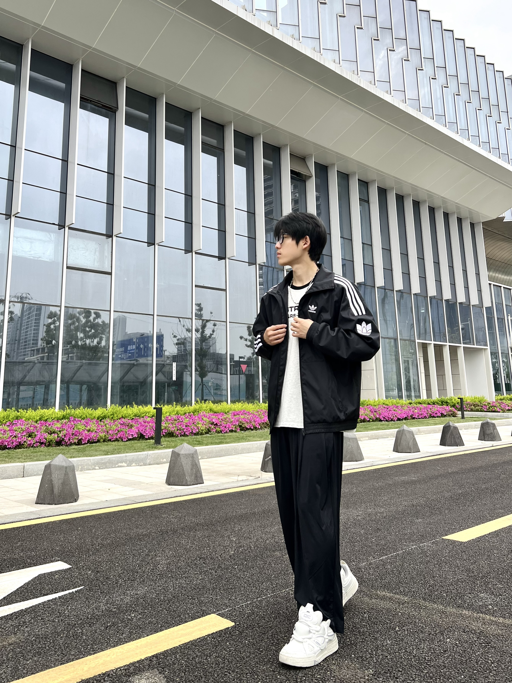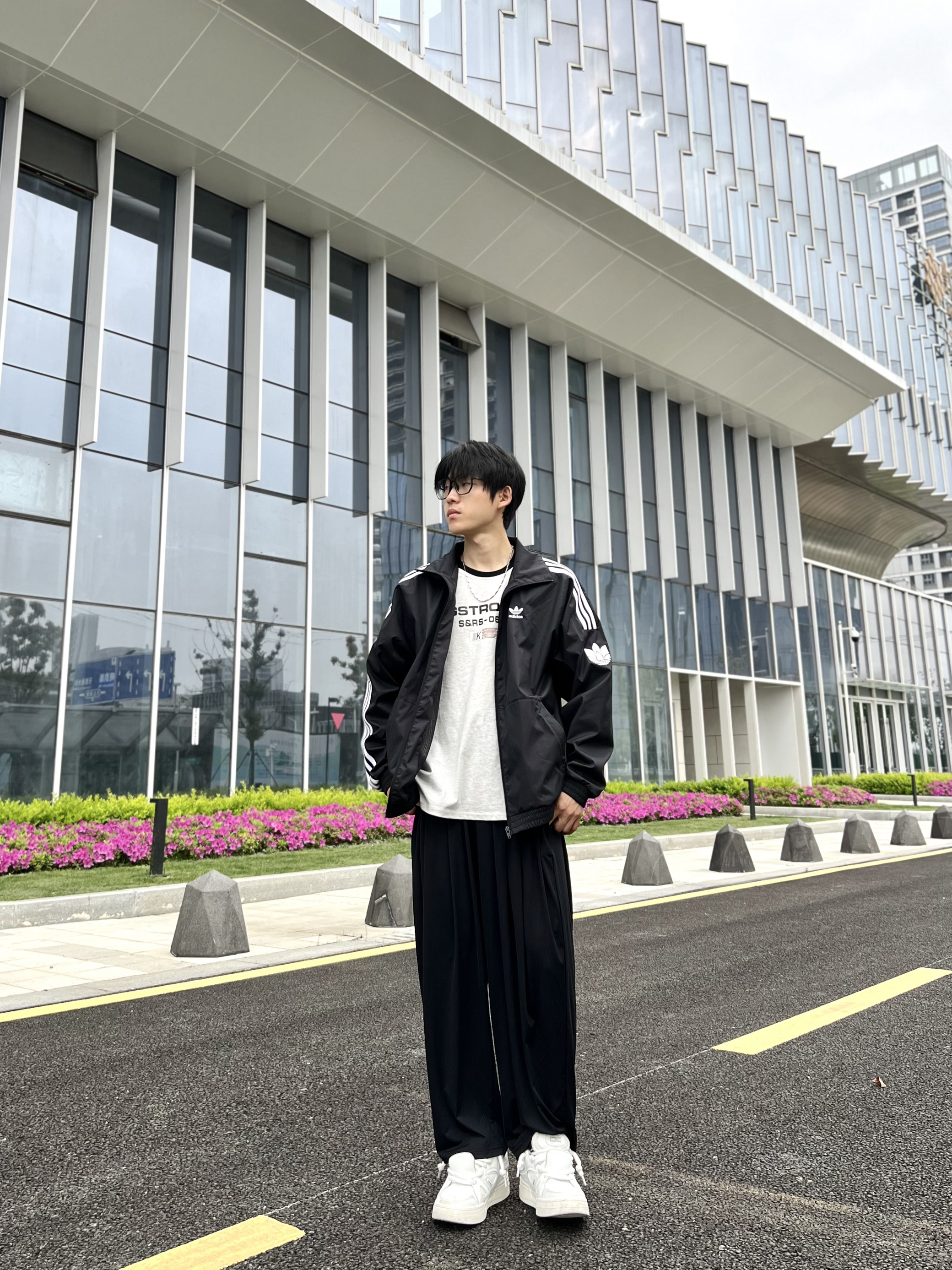 五一小长假 当然要去玩! 提前想想穿什么 我选择清凉出游。 冰丝长裤上身之后就不想再脱下来了 阿迪的三叶草外套+黑色凉感冰丝阔腿裤 自带空调buff 搭配起来松弛舒适 五一出门帅跟清爽我都要了 👔:adidas originals 178 120 M 👖:完型wearx。 178 120 L