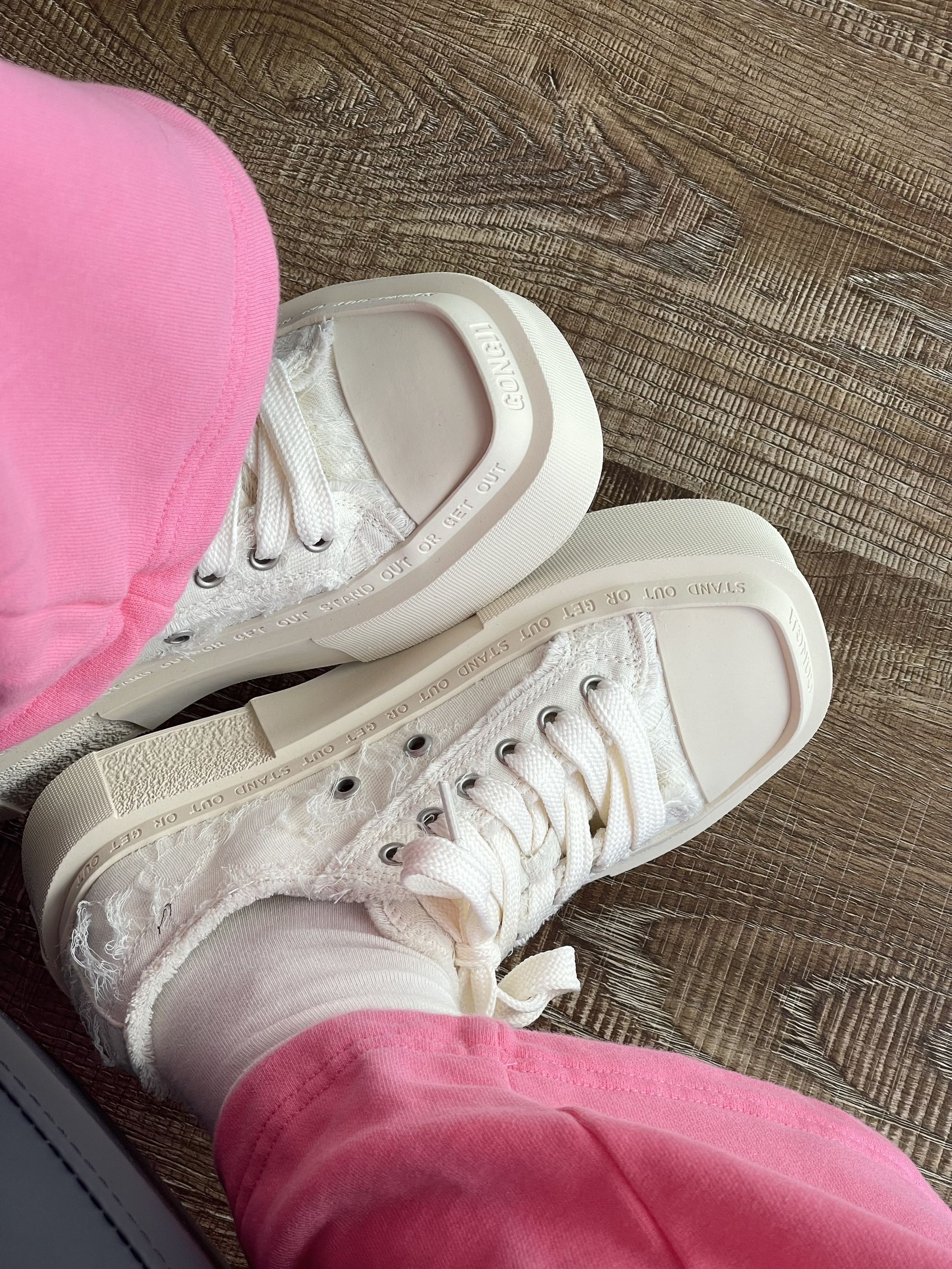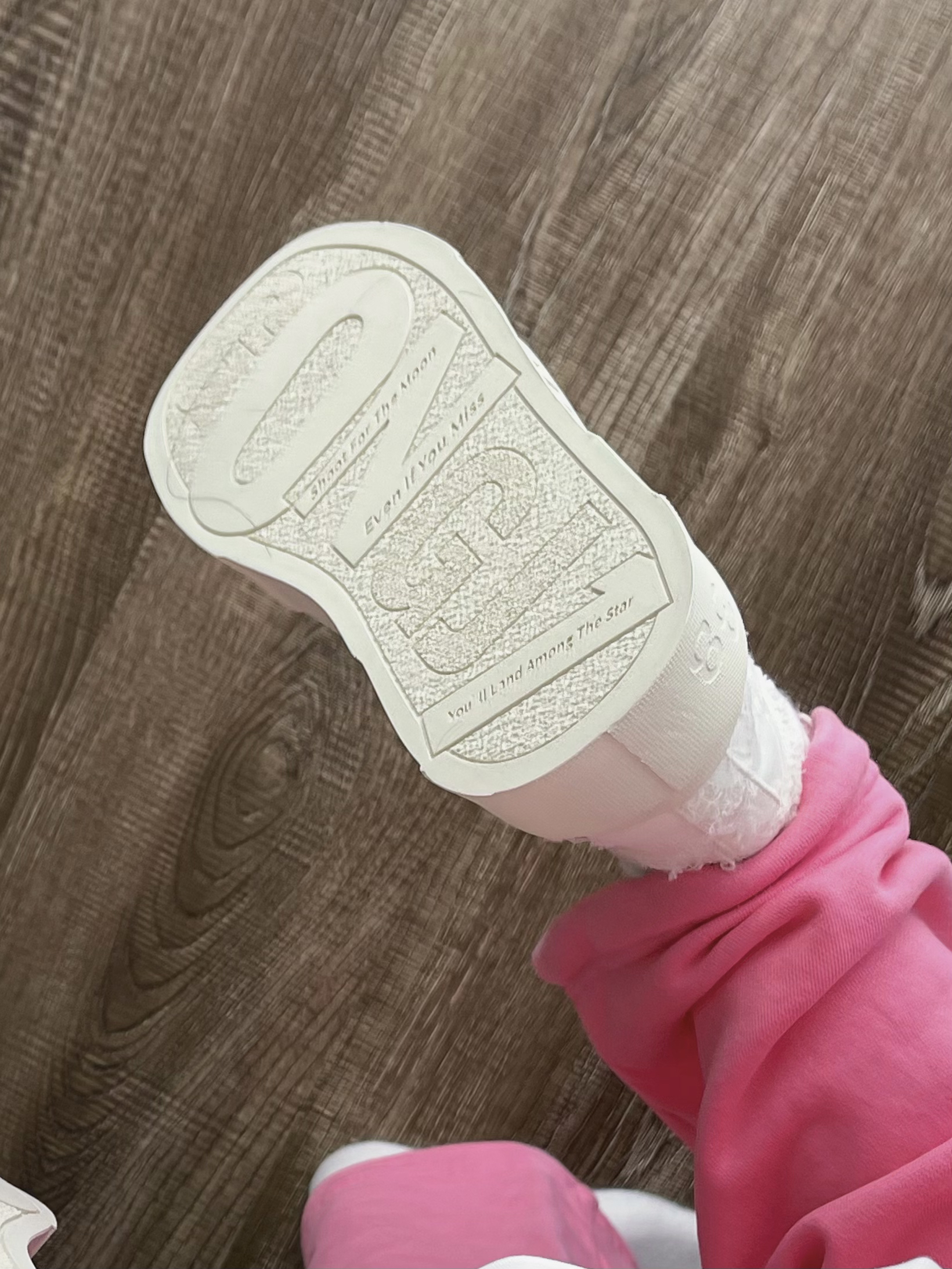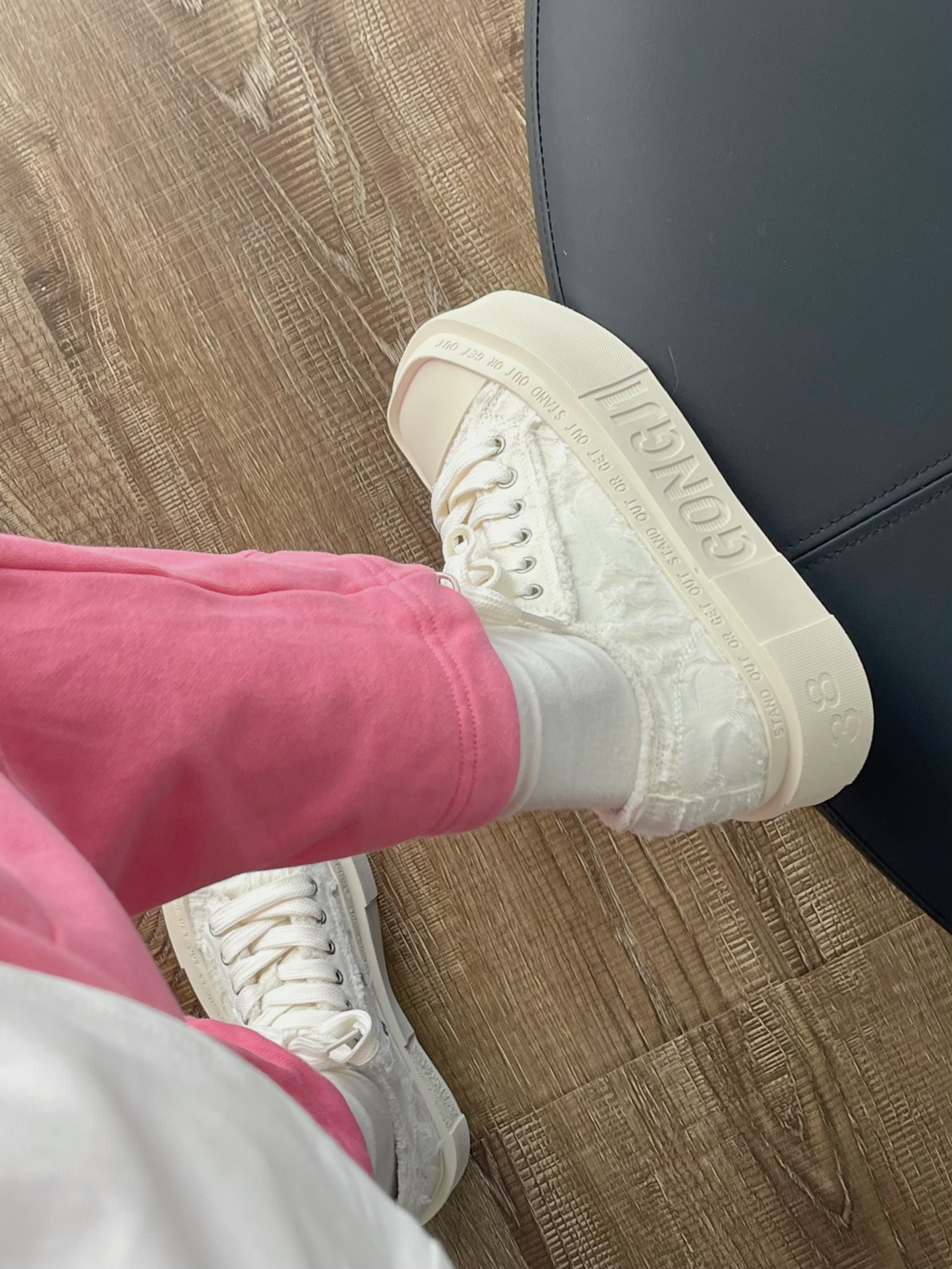 真的好甜美我哭! 夏日里青春又带点俏皮的GONGJI方头鞋 我是真的拒绝不能阿! 奶白色有点像一块可口的奶转 流苏的织物鞋面 质感满分 鞋头鞋侧和鞋底都有大大的GONGJI 配一件小清新的字母t和粉色卫裤 一套可盐可甜的夏日穿搭就解锁了! #GONGJI方头鞋 #拍拍春日鞋 #陪我城市漫步的鞋 #春日出游穿搭 #五一出游鞋子