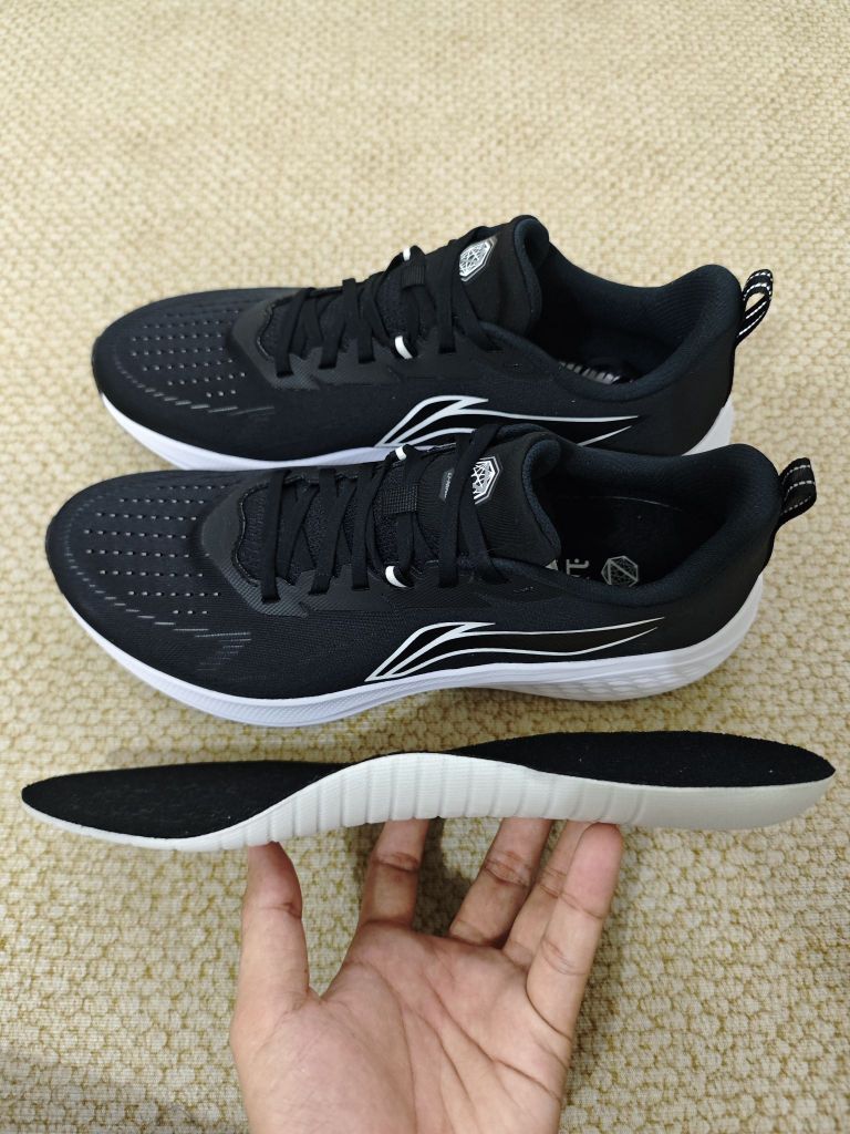 首先是尺码方面,可以按照平时的李宁尺码选择即可,偏宽脚型也能适配; 鞋面也是双层的网布,拥有不错的延展性,既有强度又不是透气性,后跟内置的港宝强度也很高,加上丰富的填充可以给到一定的稳定性,鞋带方面是七组,调节的范围也很大,对于中部的锁定也非常贴合; 接着是中底部分,搭载全掌的lightformultra,初步上脚就能体验到不错的脚感,缓震也不错,130完全踩不到底,然后抽开鞋垫也可以看到有做到很...