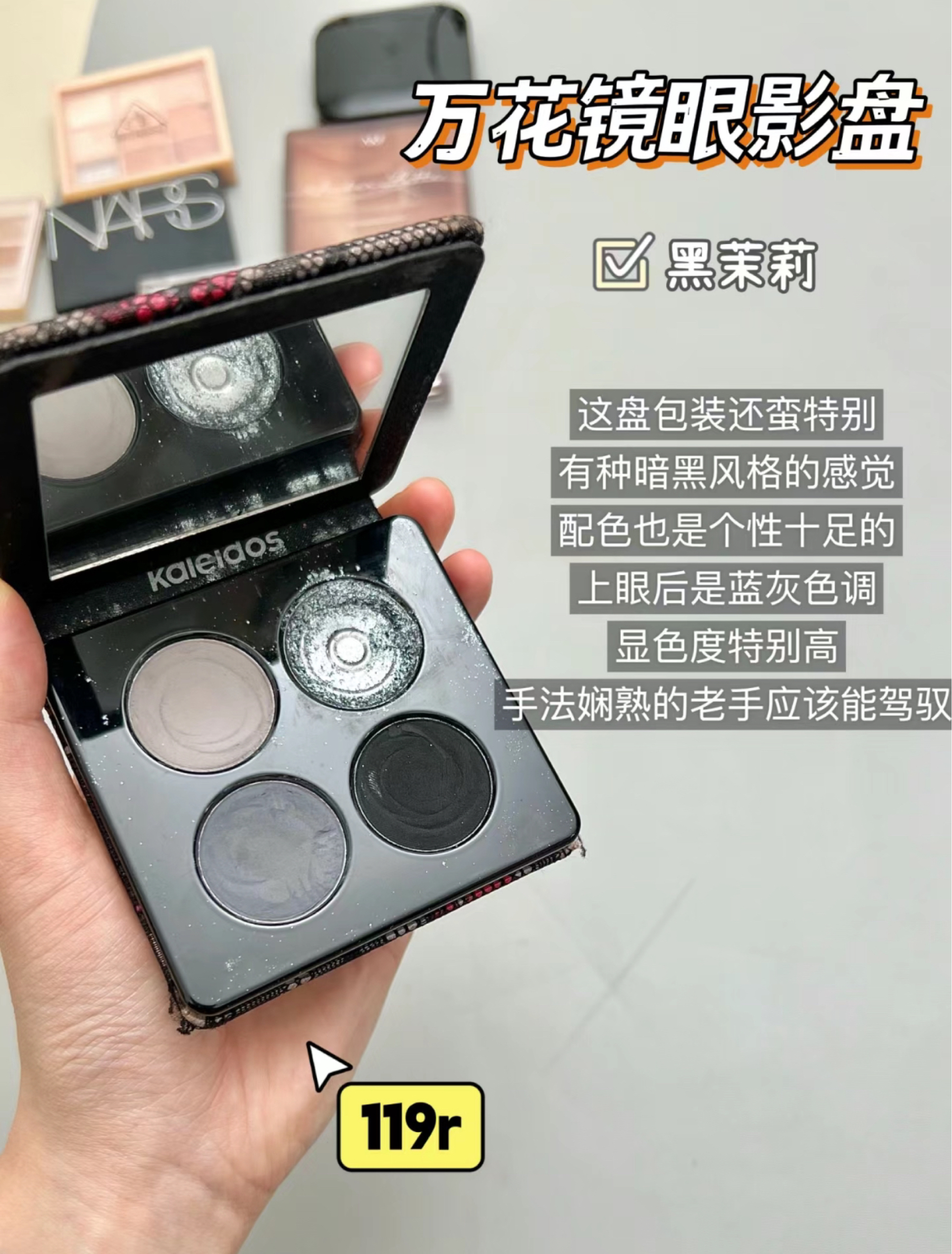 本篇笔记关联了Kaleidos/万花镜 烟熏蕾丝四色眼影盘 碎钻哑光氛围感 4.8g 001黑茉莉、3CE/三熹玉 细腻易上色九宫格眼影盘 哑光细闪九色纷呈 奶茶盘DEAR NUDE 8.5g、COFU 大地色四色眼影盘 哑光肿眼泡不易晕染 7g 1 初恋蜜桃等商品,为用户提供真实的使用体验和购买参考。