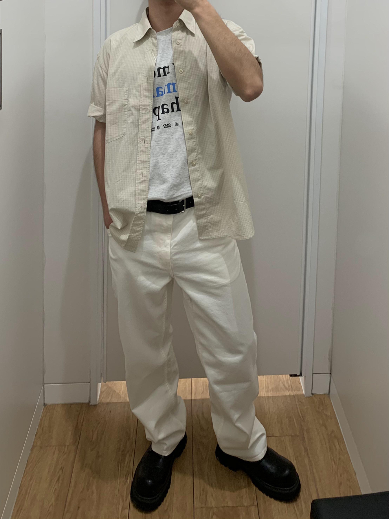 U系列的工装短袖衬衫,随便怎么穿都很好看 看到工装衬衫,大家是不是就想到日系工装风 那么这次就玩点不一样的 下面说一下我的穿搭思路👇 1,把宽松的工装裤换成直筒长裤 这样看起来就会显得腿会修长一点 而且直筒裤穿起来跟宽松工装裤一样舒服不紧身 2,鞋子换成黑色厚底德比鞋 简单两步 把整个身材比例拉高了不少 给人的感觉瞬间就不一样了有木有