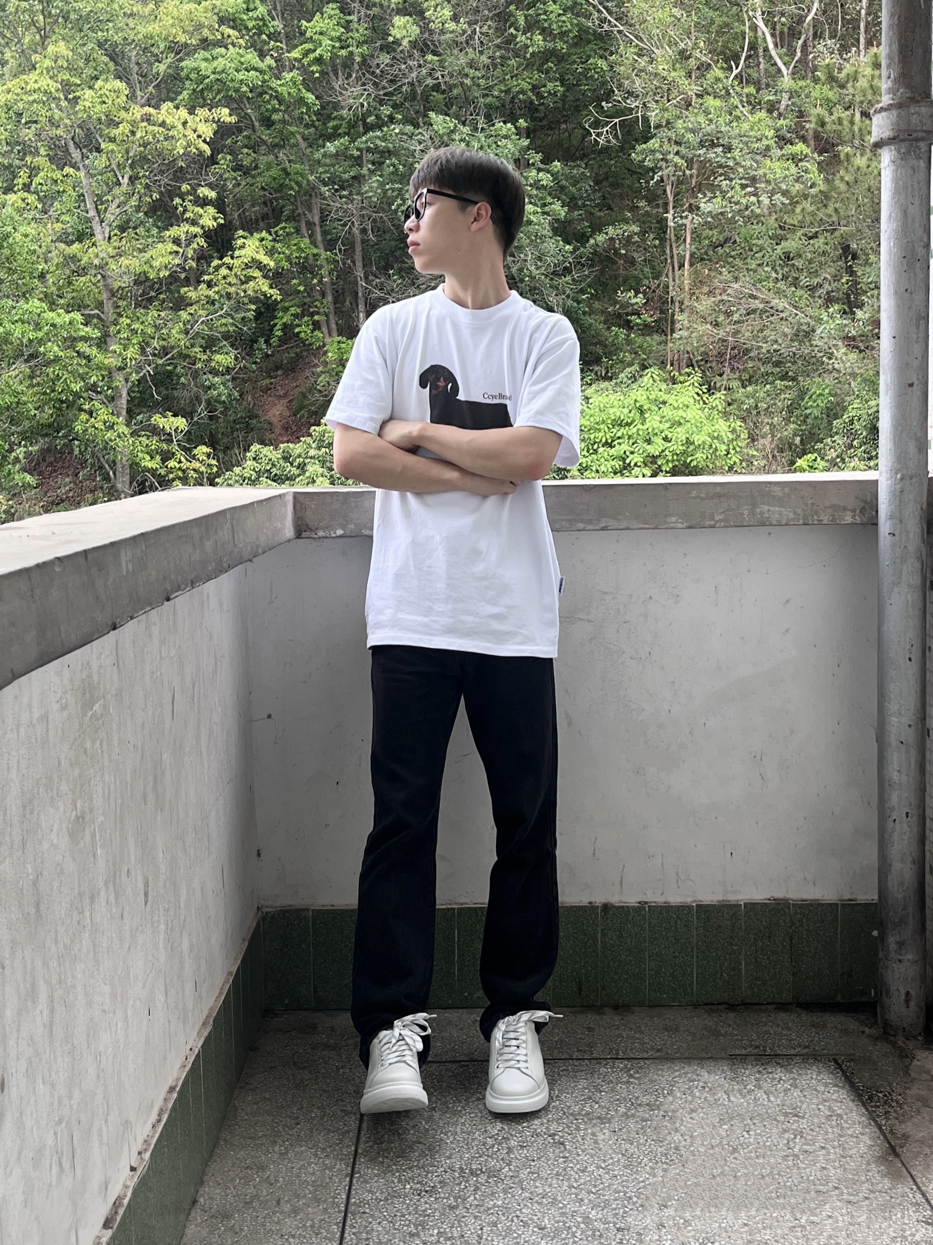 春日出游穿搭分享look👀 衣服是白色的小狗图案印花短袖 搭配一条黑色微喇牛仔裤修饰腿型 鞋子是 诺贝达 家的经典小白鞋 颜值简约时尚 穿上后脚感也很舒适透气 鞋底不仅防滑耐磨还有增高效果 一套搭配下来 春日出行穿搭不用愁