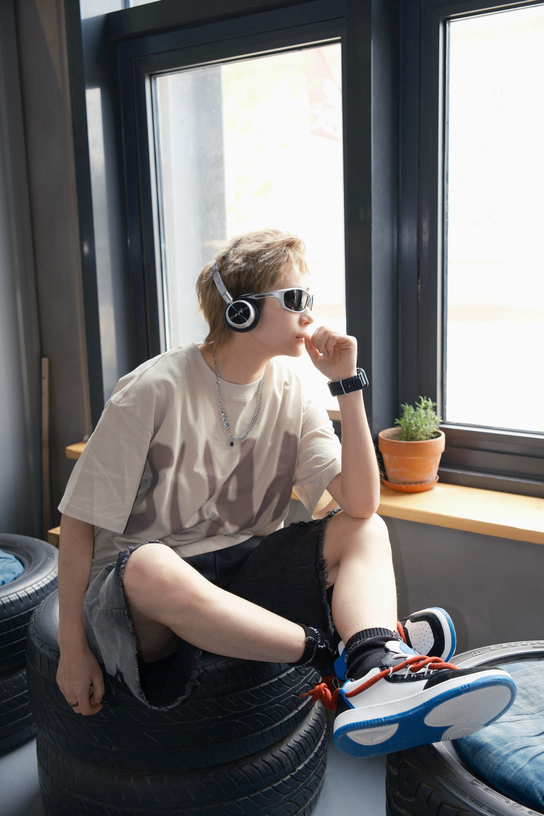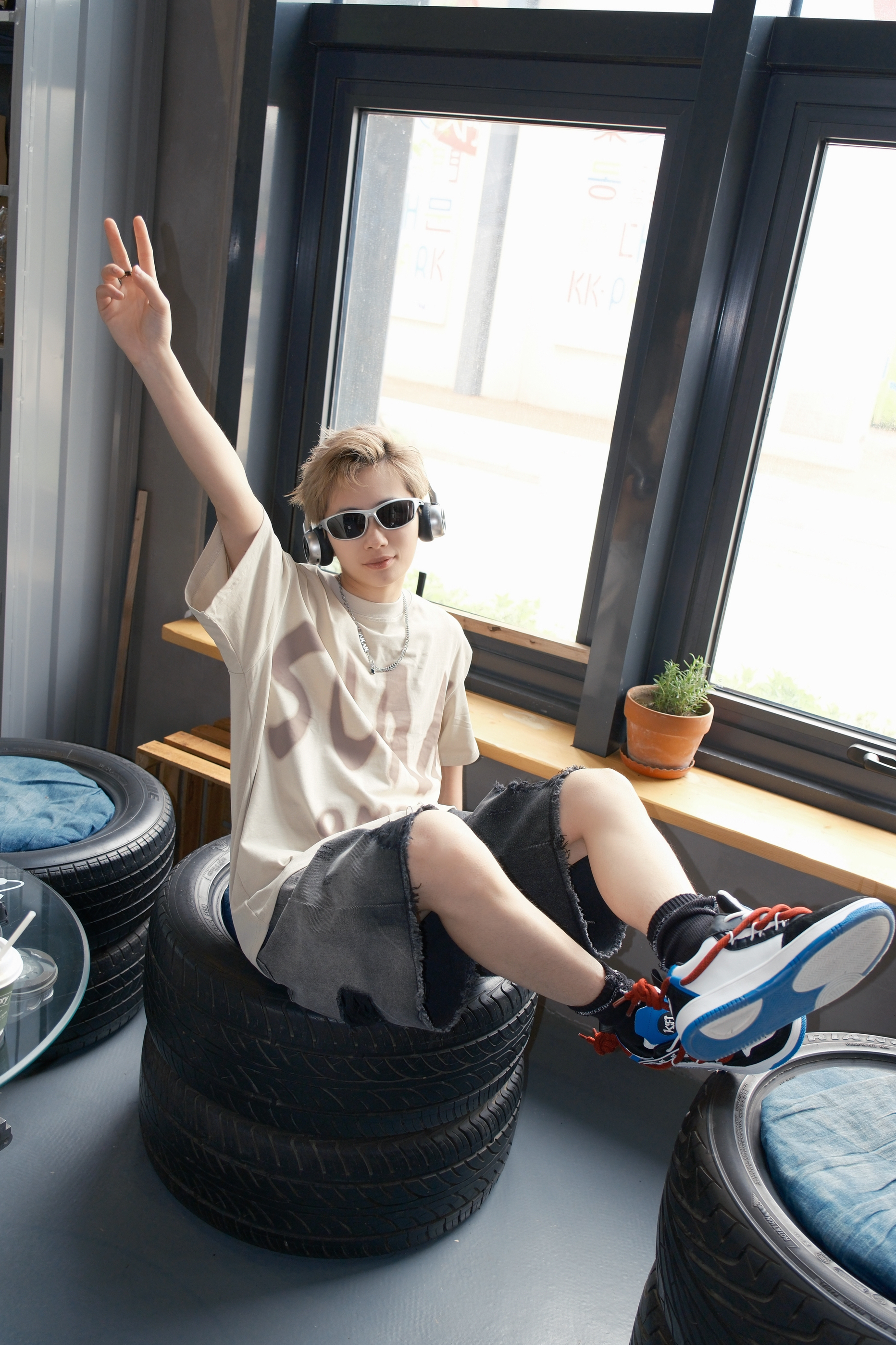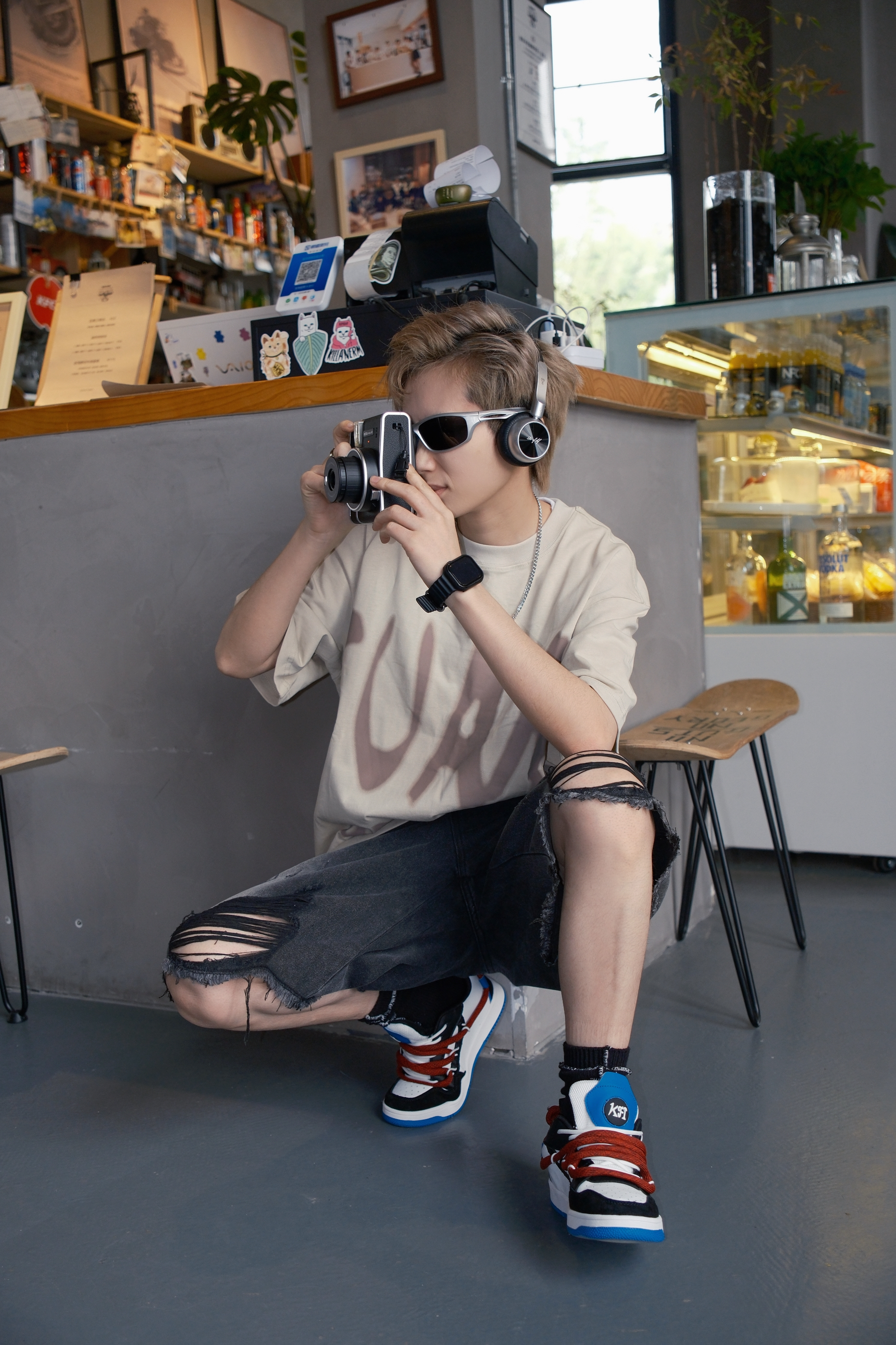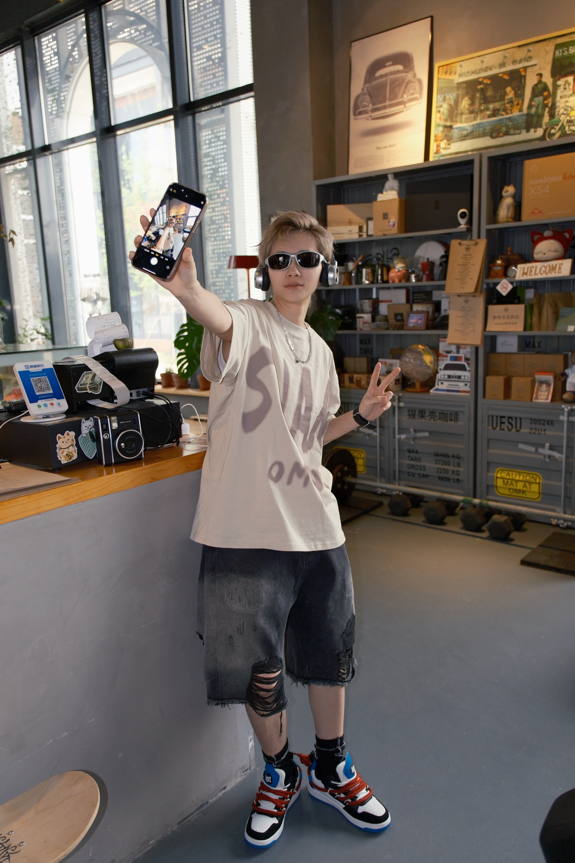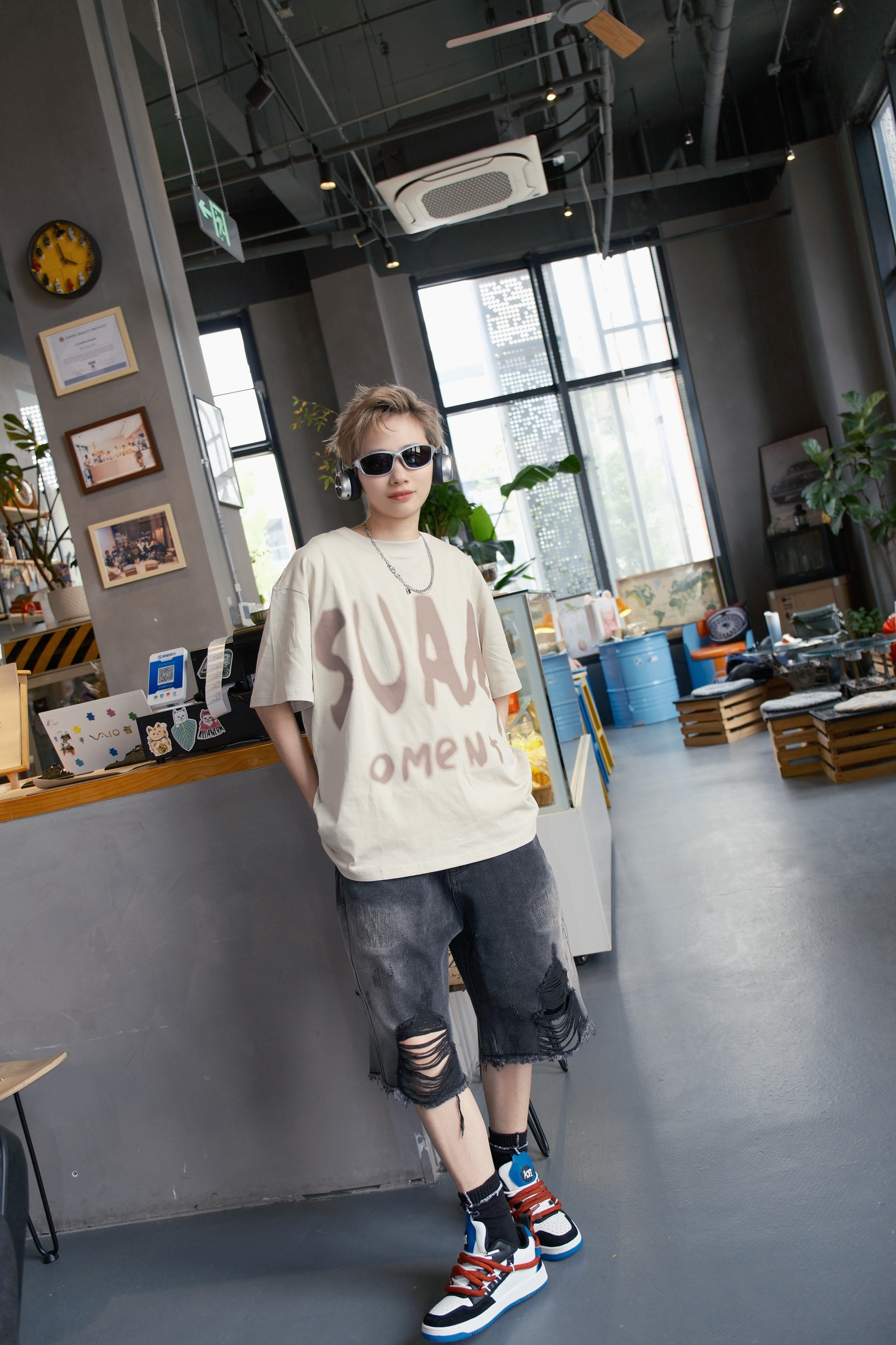四月的尾巴,温度开始有了夏天的感觉 到了可以穿短袖短裤的时候 今天的look👀 上身一件卡其色T恤 颜色很显白,上身不挑人 胸口大字母的印花图案非常吸睛 版型宽松,立体挺阔比较百搭 下身搭配破洞牛仔短裤和一双拼色板鞋 红蓝黑白的融合,有点小闪电⚡的味道 都是比较经典的配色非常百搭 白红双鞋带设计上脚会比较有层次感 鞋底很软,穿起来脚感轻盈舒适 尺码参考: 163cm/45kg 上身S码 👕: ...