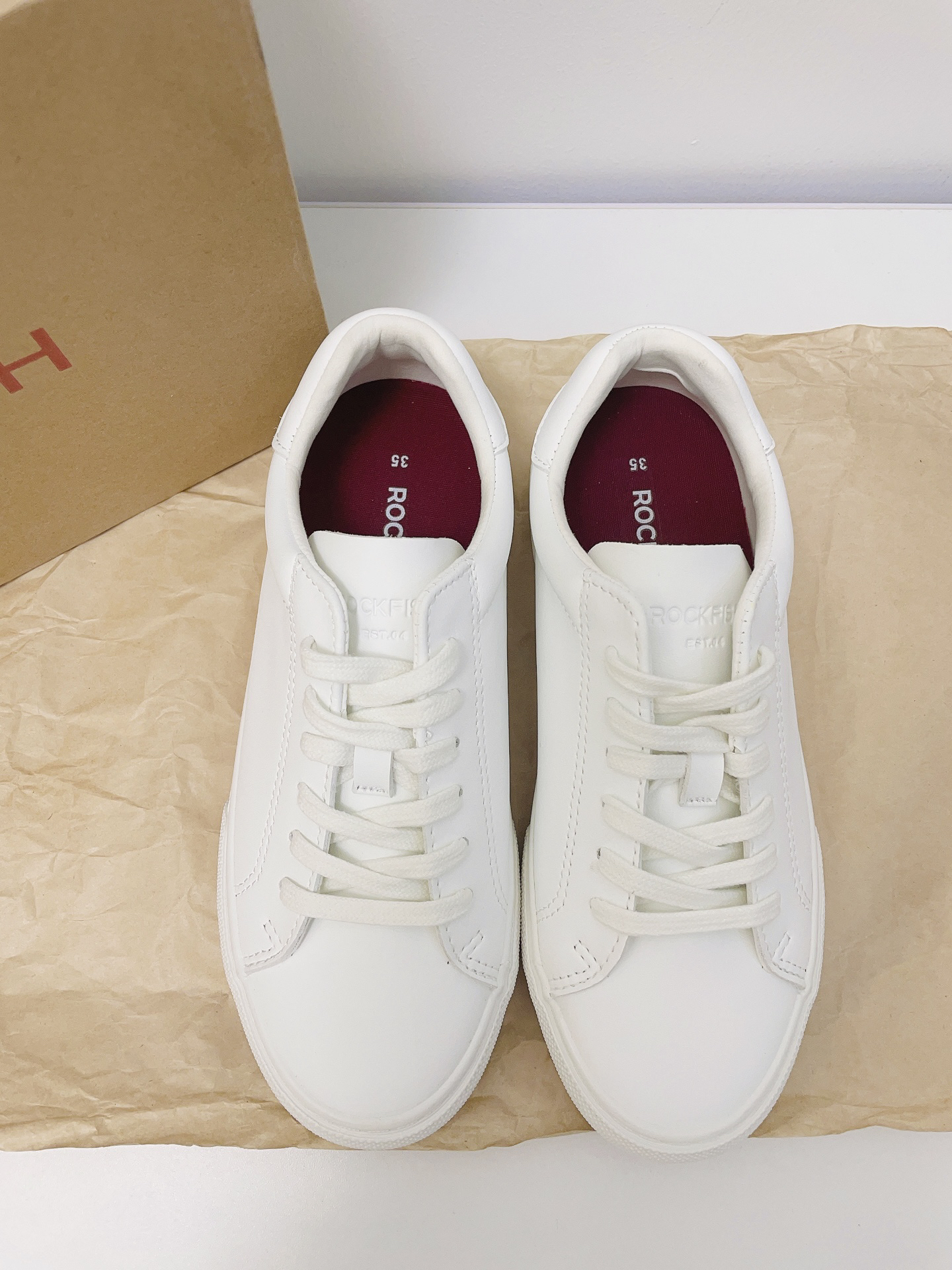 广东最近天天下雨入了这款不怕湿的小白鞋 白色干干净净的 真皮的防水适合现在雨季穿 红色鞋底hin有特点 上脚穿舒适轻便 不磨不累jio 日常通勤或雨天出行随便搭裤子都可