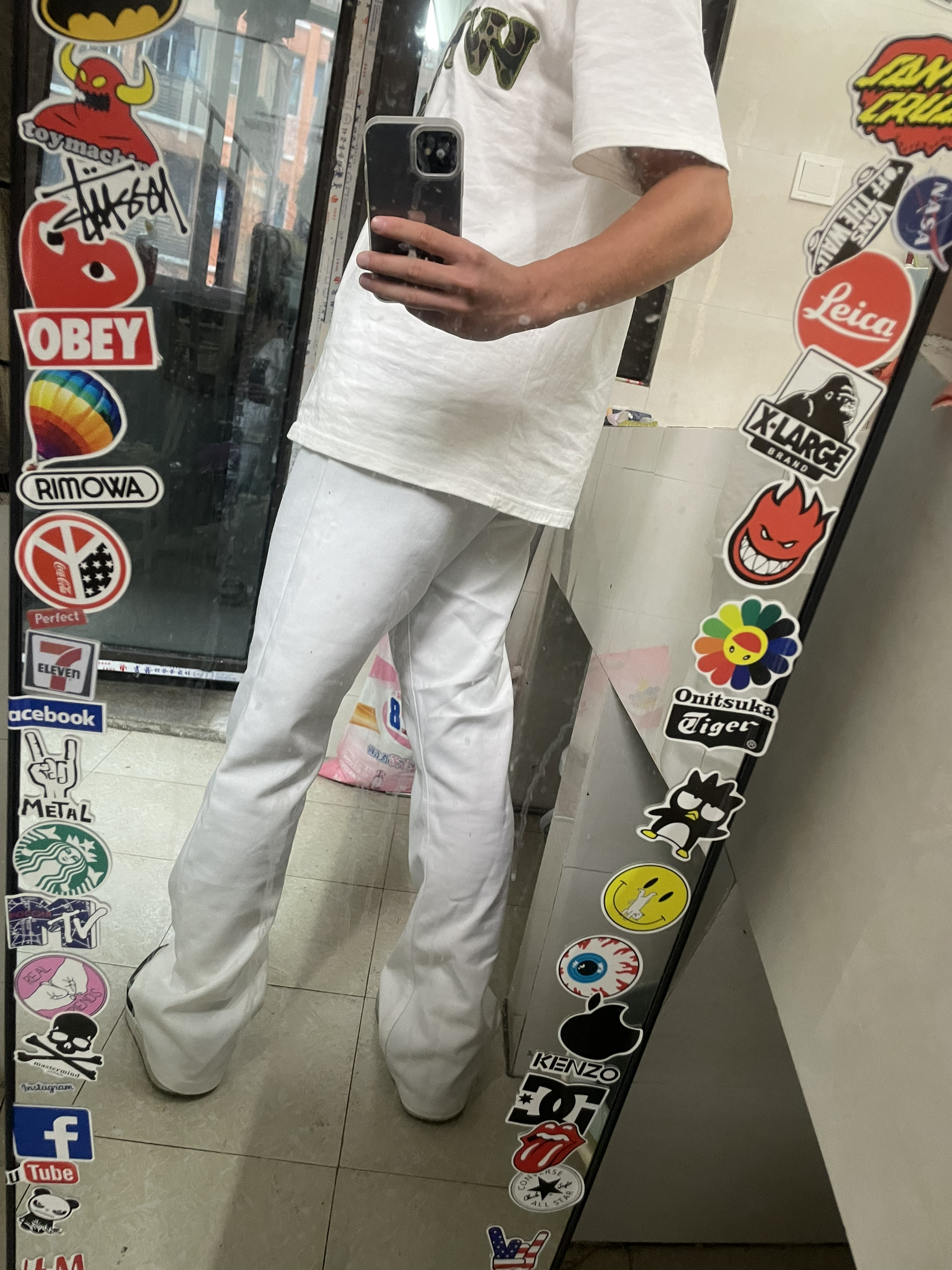 🛒好物名称:OKLAMMKICKS 😙推荐理由:一条修身的白色牛仔裤,穿上真的特别显腿长。 身高:165 体重:52kg 穿的S码