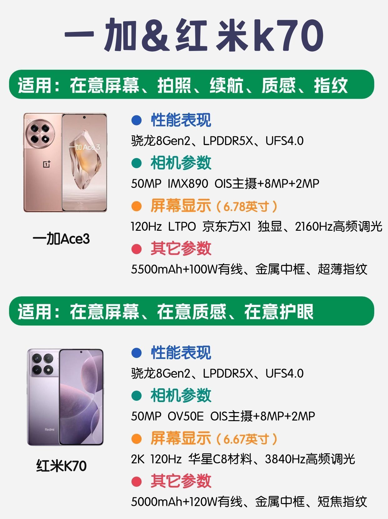 本篇笔记关联了OnePlus/一加 Ace3 5G 手机 全网通 拍照 东方屏 超长续航 旗舰芯片 鸣沙金、Redmi/红米 K70 5G 手机 快充 汽车互联 全网通 高光屏 防水 拍照 浅茄紫、HONOR/荣耀 90 GT 5G 手机 护眼 直屏 长续航 全网通 超凡帧画引擎 旗舰芯片 快充 拍照 大电池 超凡影像 高能量密度 燃速金等商品,为用户提供真实的使用体验和购买参考。