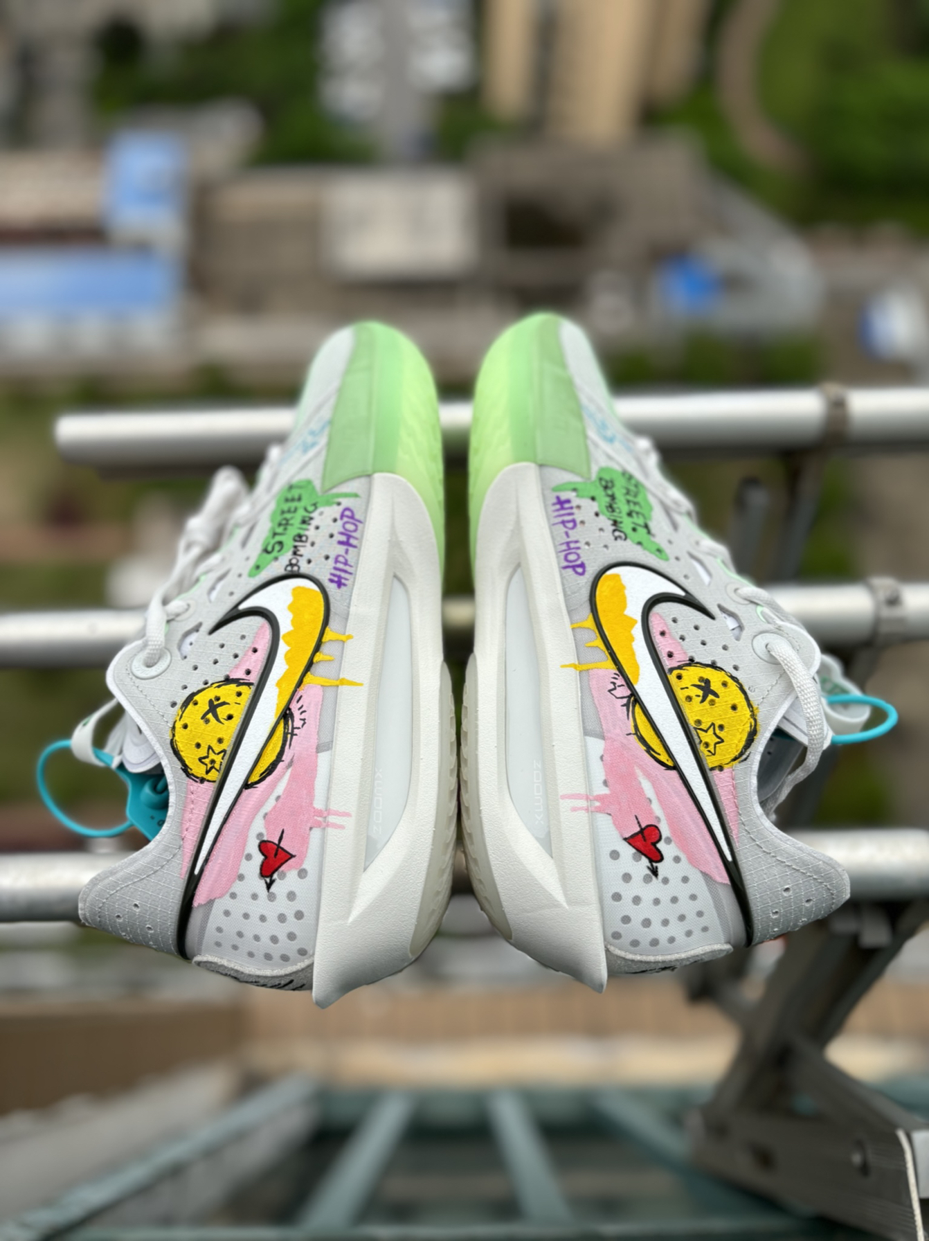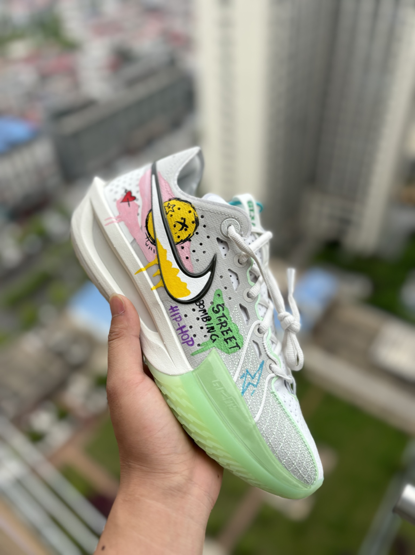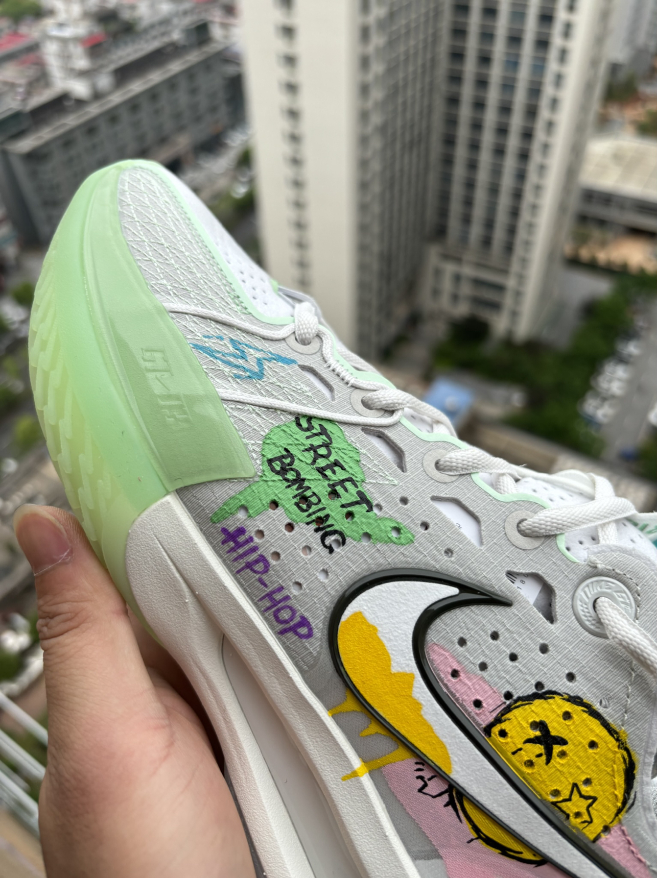 这双篮球鞋是在原鞋基础上进行的涂鸦改造,非常帅气