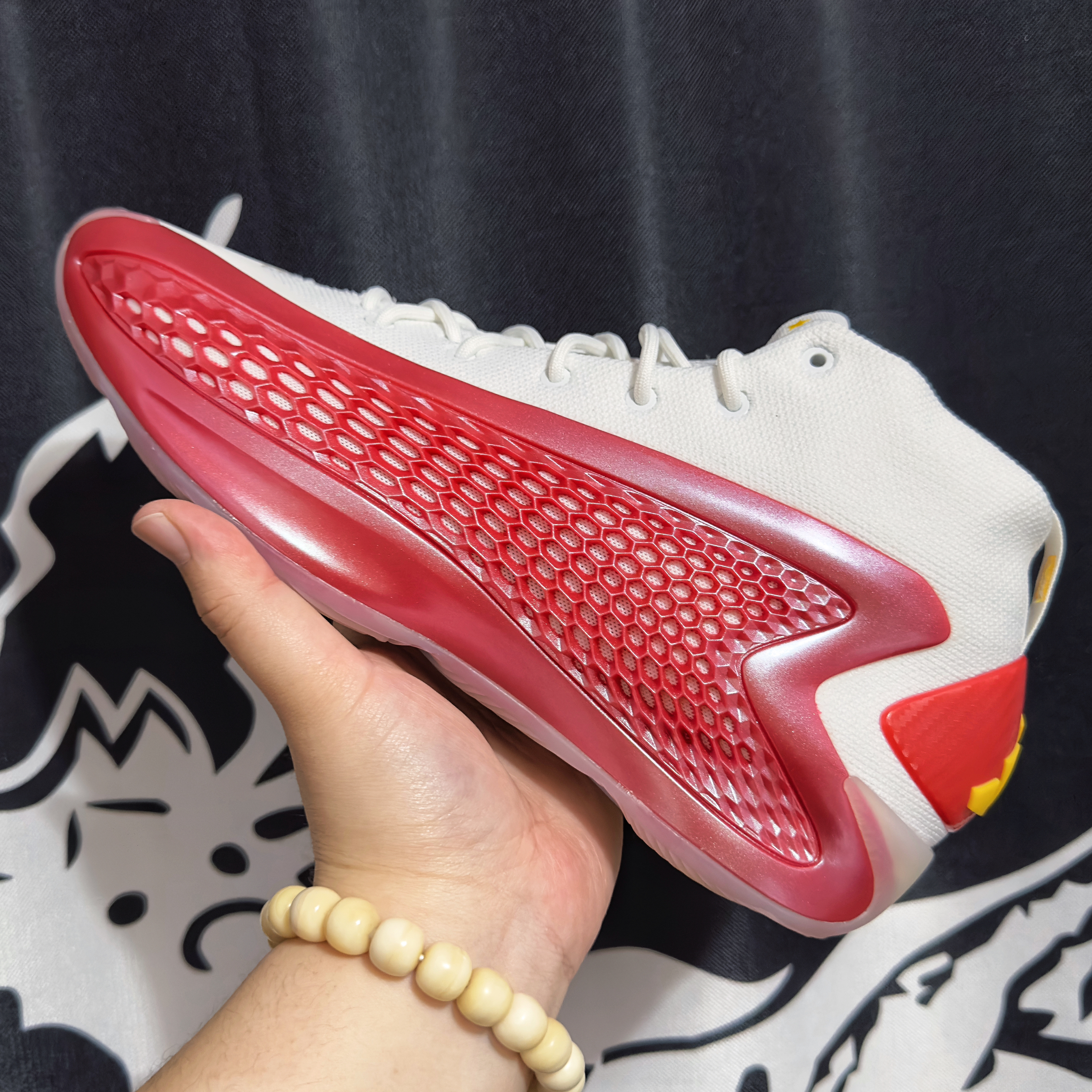 这是为 McDonald’s All American Games「麦当劳高中全明星赛」所打造的特别配色,后跟金色的麦当劳「金拱门」Logo 表明了它的身份。 左右鞋款采用了红蓝的鸳鸯设计,分别对应全明星赛的两支队伍。 侧面的蜂窝结构有着亮眼的金属质感,后跟的三条杠也采用了醒目的黄色呈现,颇有麦当劳的感觉。