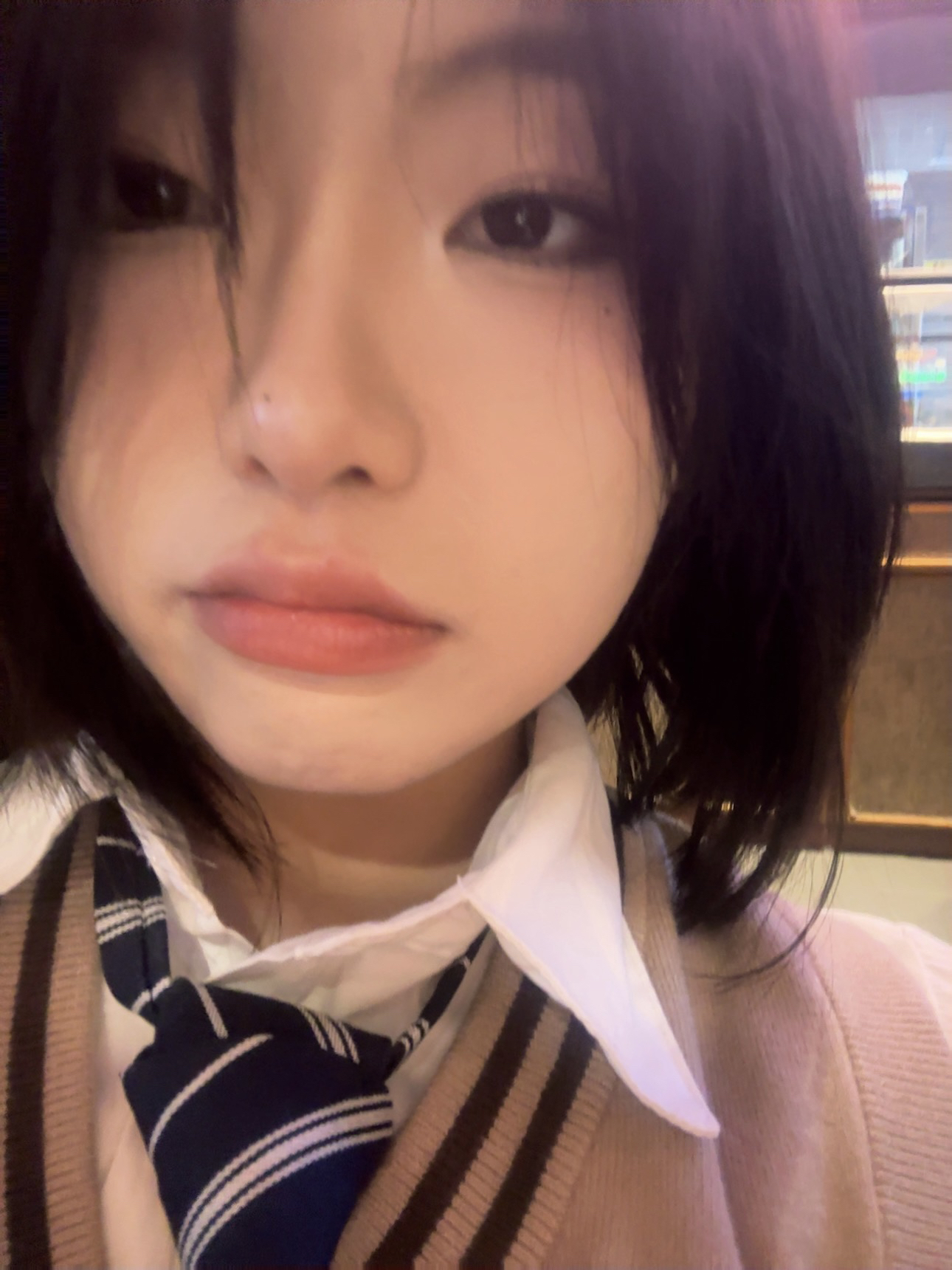 为什么有些人一到后置就臭脸! 口红:阿玛尼321,很nun,我很喜欢~太嫩妹啦 腮红:nars,粉粉的,会显得气色很好的嫩粉色,多次叠加也不会脏,喜欢~ 高光:五花肉,水光感十足,不会用水光棒的人有福了 睫毛:荔树女团睫毛 喜欢韩妆的一定会喜欢!