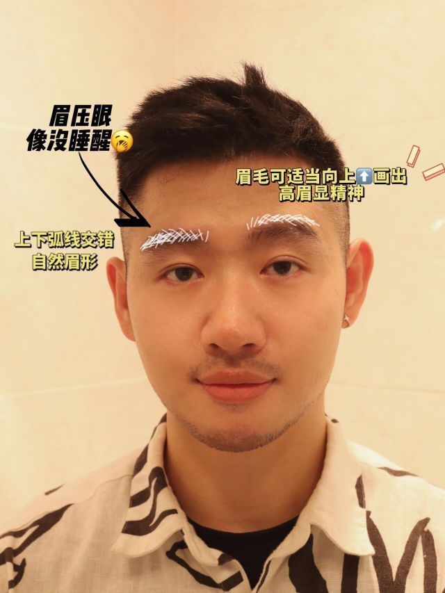 男生如何打造完美眉型,关键在于精准定位眉头、眉峰、眉尾这三个点。 • 眉头:以眼睑起点与鼻翼侧边点为参考,确保眉头位置自然不突兀。 • 眉峰:根据眼珠外侧与鼻翼侧边点确定,注意眉峰不宜过高,以免显得过于刻意。 • 眉尾:以眼尾与鼻翼侧边点为依据,眉尾避免过于尖锐上挑,保持自然流畅。 📝画眉方法: 在眉毛轮廓内进行上下八字填充,模仿眉毛的自然生长走势,营造一种野生感。 然后在眉毛的中间部分进...