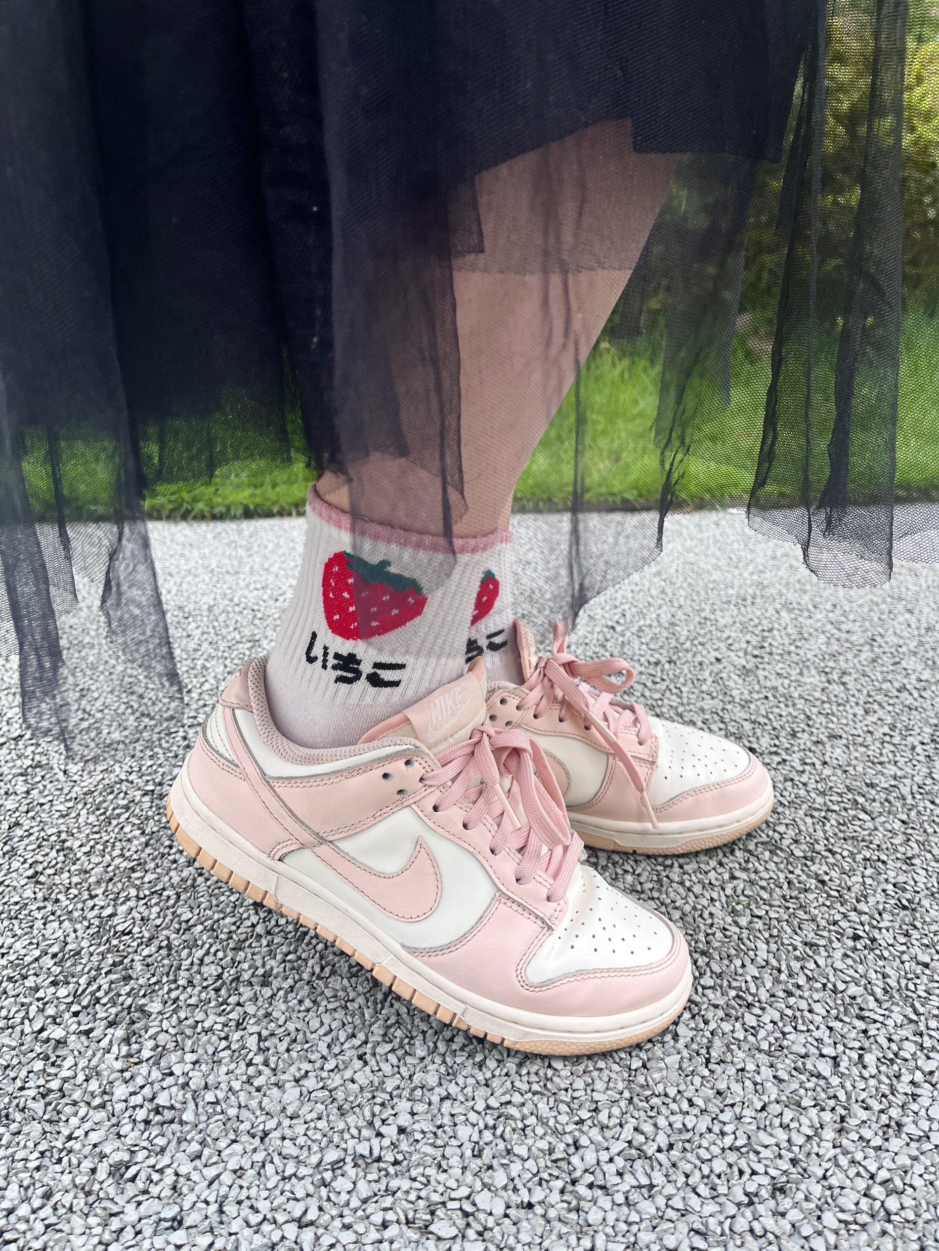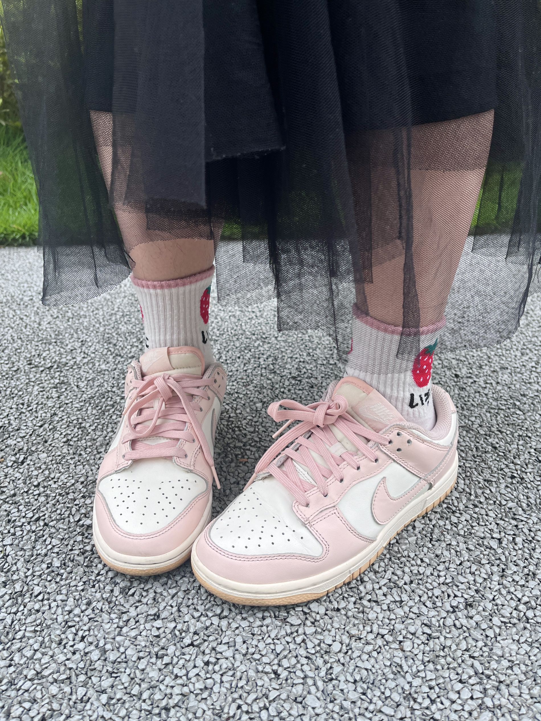 第一眼👁看到这双粉dunk, 我就被深深吸引了, 看着就很讨喜, 女友是粉色控😁, 没多想就给她搞了一双, 这粉嘟嘟的颜色~ 甜酷又温柔😍, 女友可喜欢这双鞋了, 上脚真的很好看, 现在这双鞋的价格已经在千元以下了, 性价比很不错, 鞋码标准,还有大的码数, 男生搞双"猛男粉"穿也酷帅。