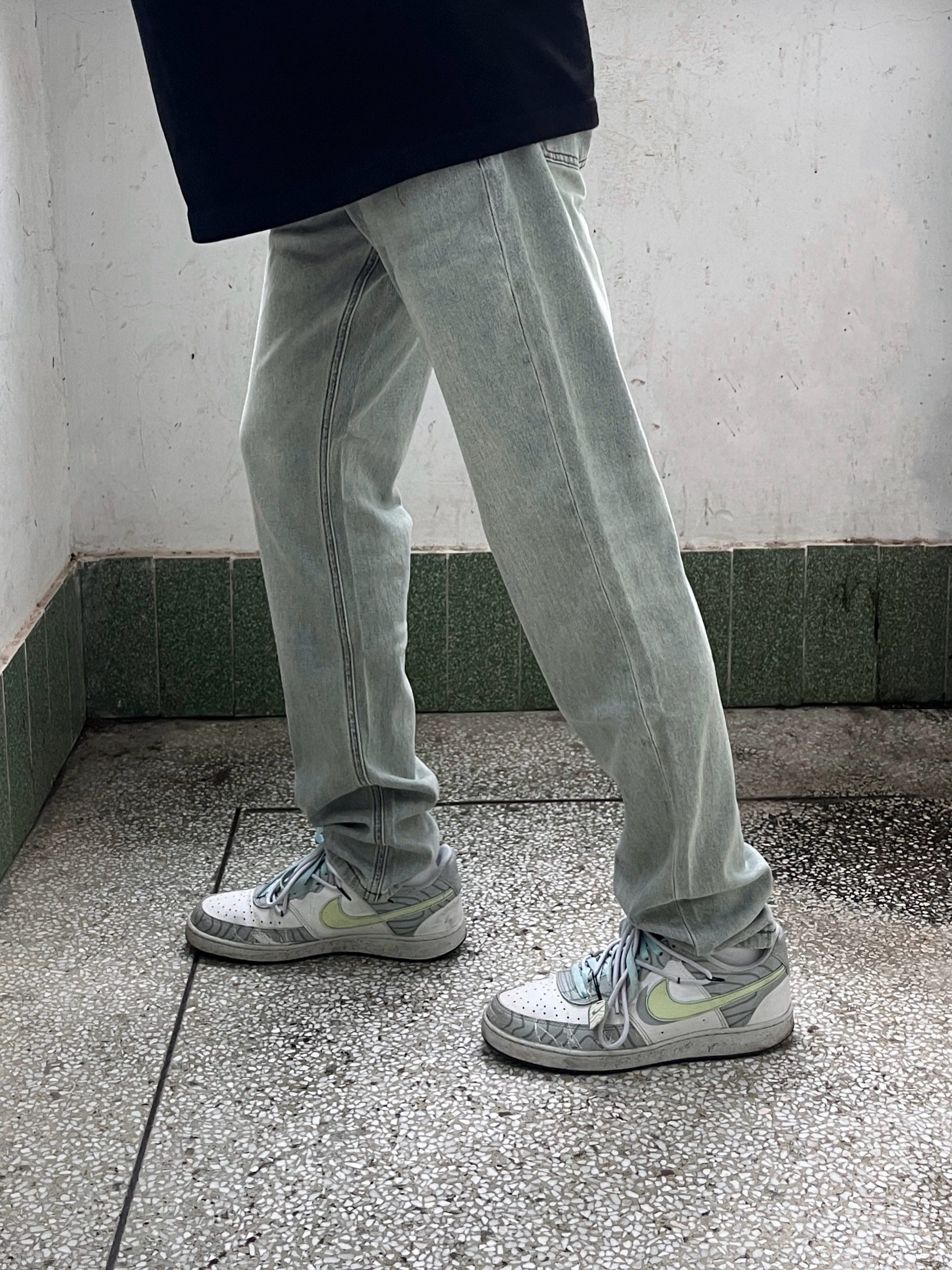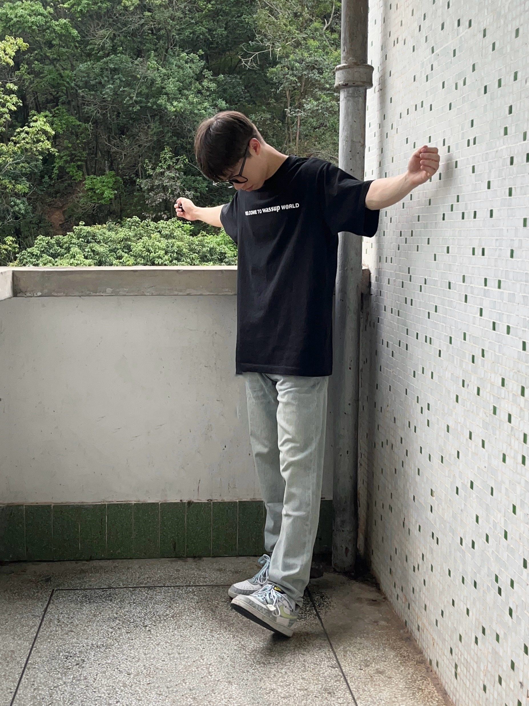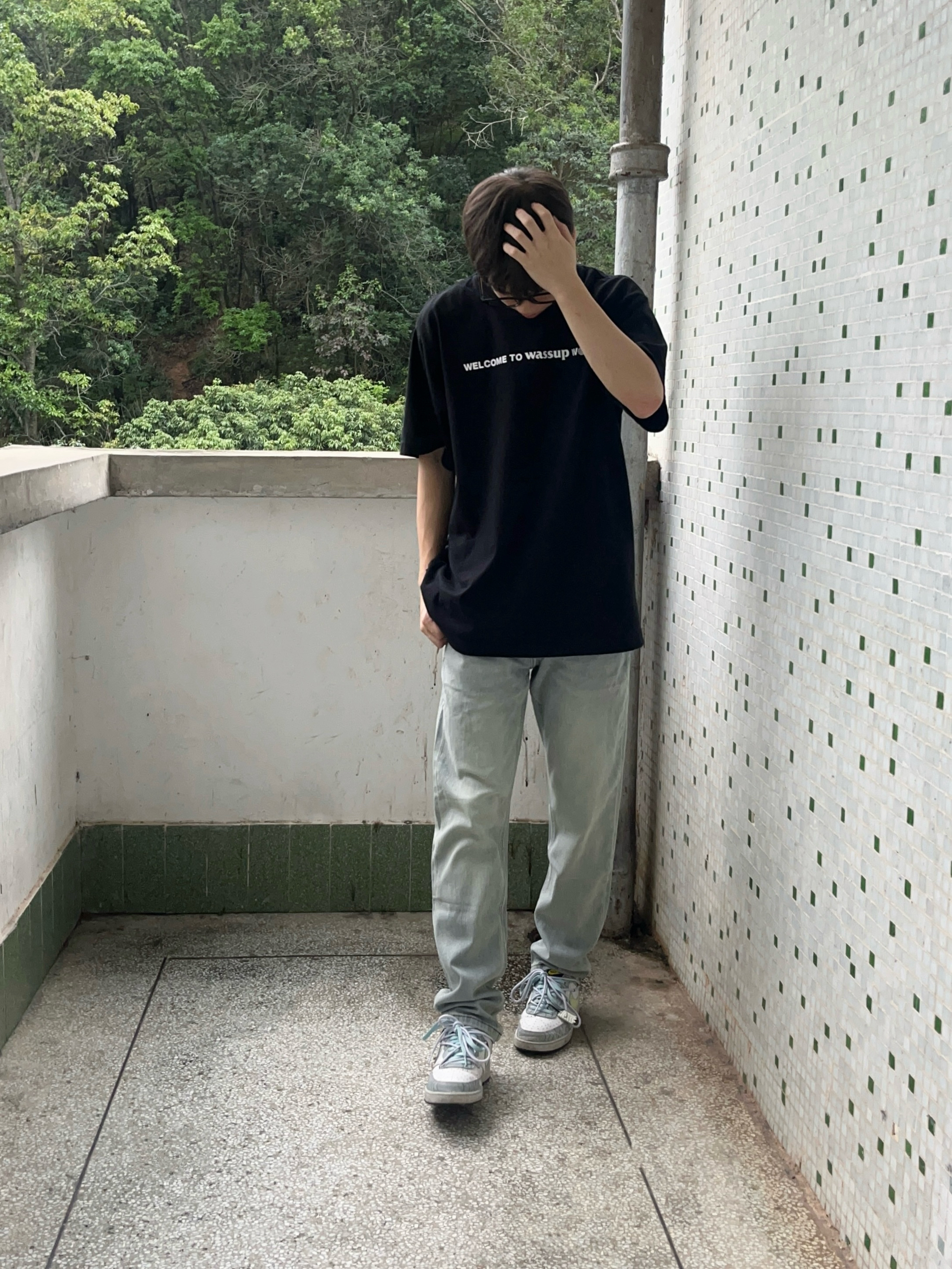 今日份五一穿搭分享look👀 衣服是黑色的美式复古印花短袖 面料柔软舒适 搭配上一条 Jeep 家的浅蓝色直筒牛仔裤 版型宽松显瘦 穿上很显腿型 最后上脚一双休闲板鞋点缀 一套搭配下来 百搭又好看