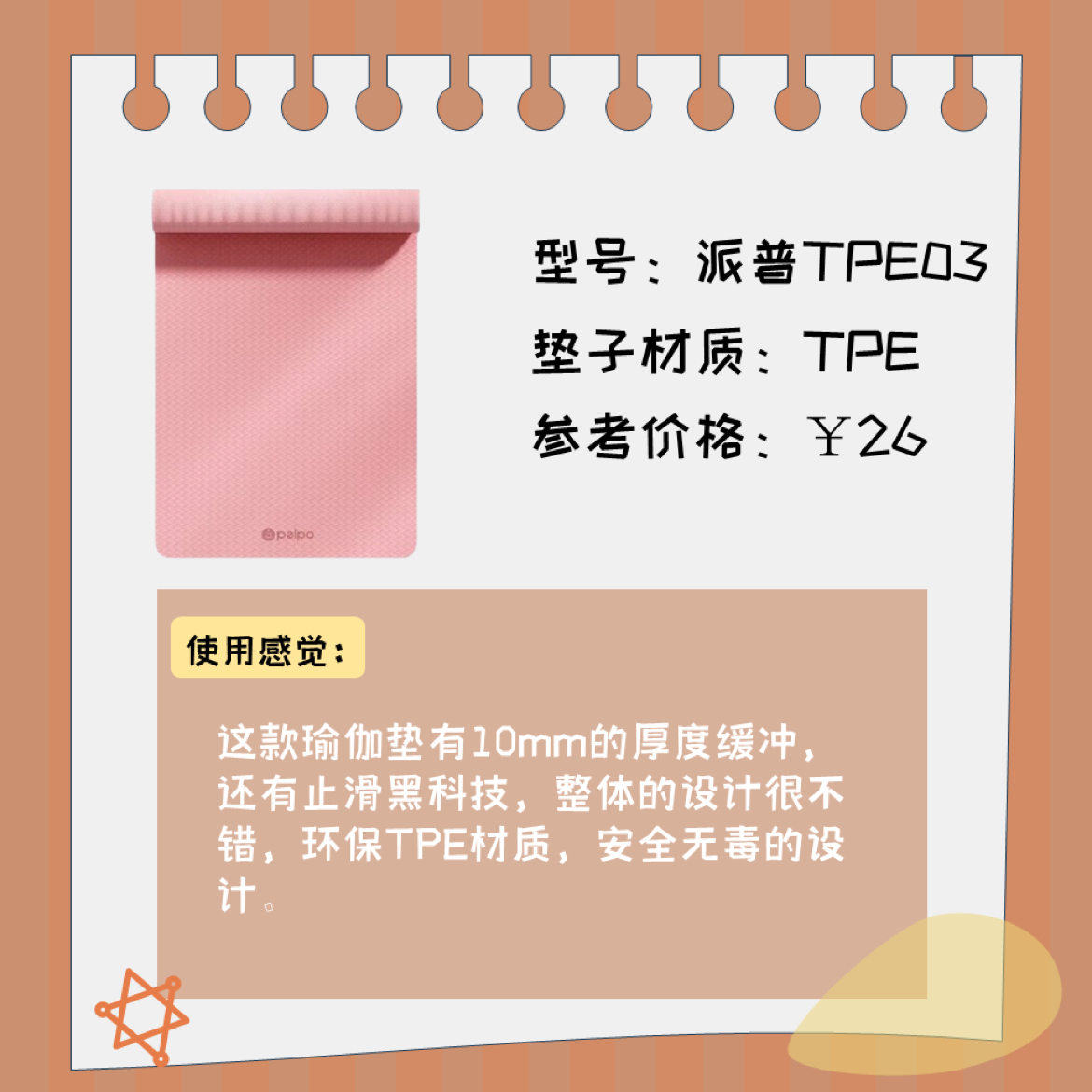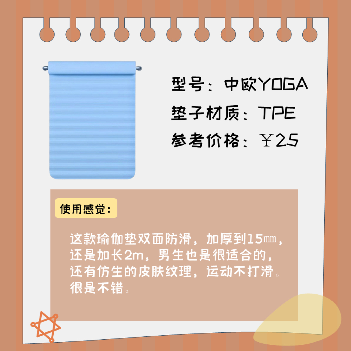 做瑜伽通常都会有一些大幅度的动作动作,身体很容易滑动,✌️这样会因为造成姿势不正确而带来一定身体伤害,而瑜伽垫有弹性与支撑力,就能有效减少因为用力不当而带来的身体伤害,今天有几款不错的高性价比瑜伽垫,一起来看看吧。👀👀 ✅派普TPE03 这款瑜伽垫有10mm的厚度缓冲,还有止滑黑科技,整体的设计很不错,环保TPE材质,安全无毒的设计。 ✅中欧YOGA 这款瑜伽垫双面防滑,加厚到15㎜,还是加长2m...