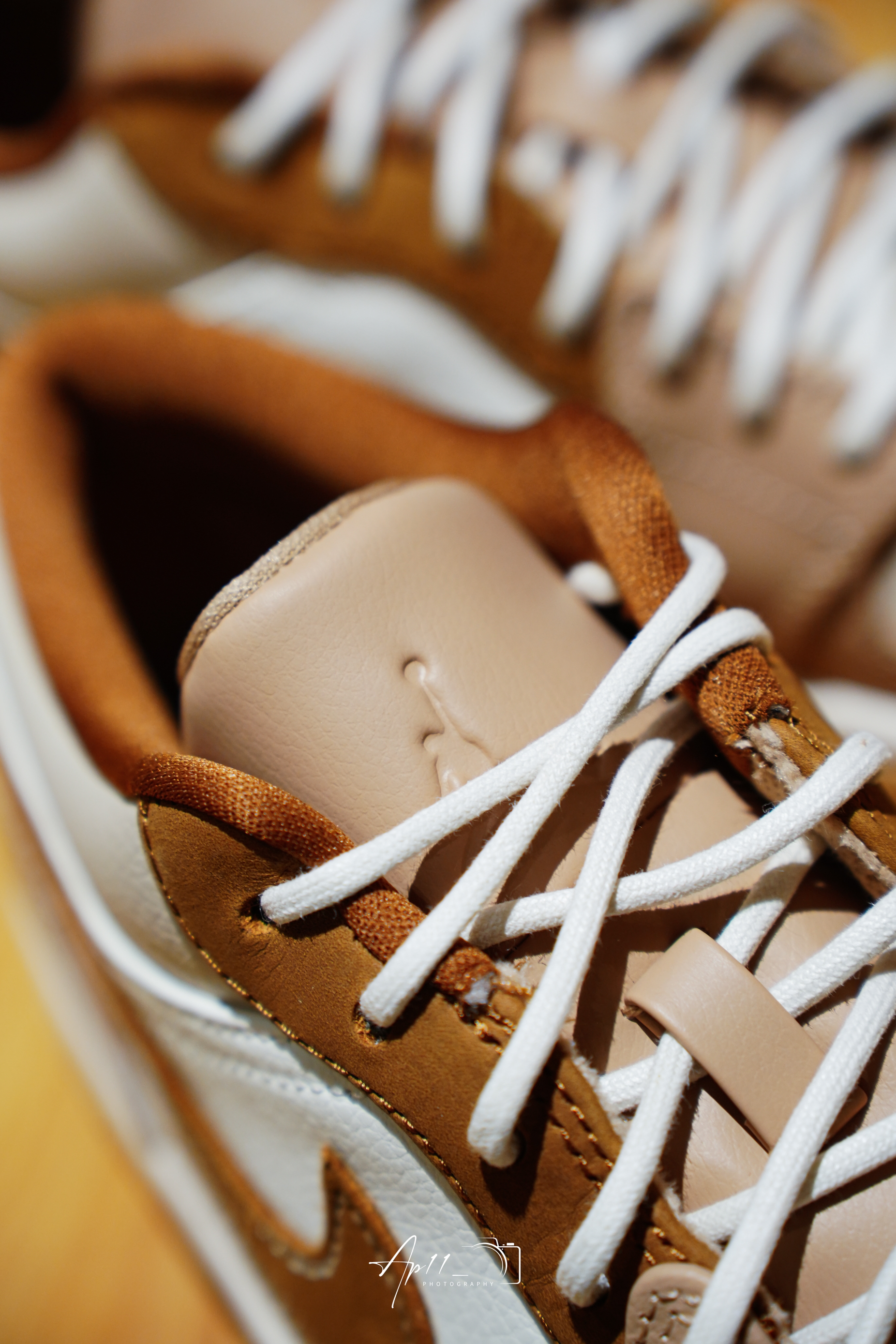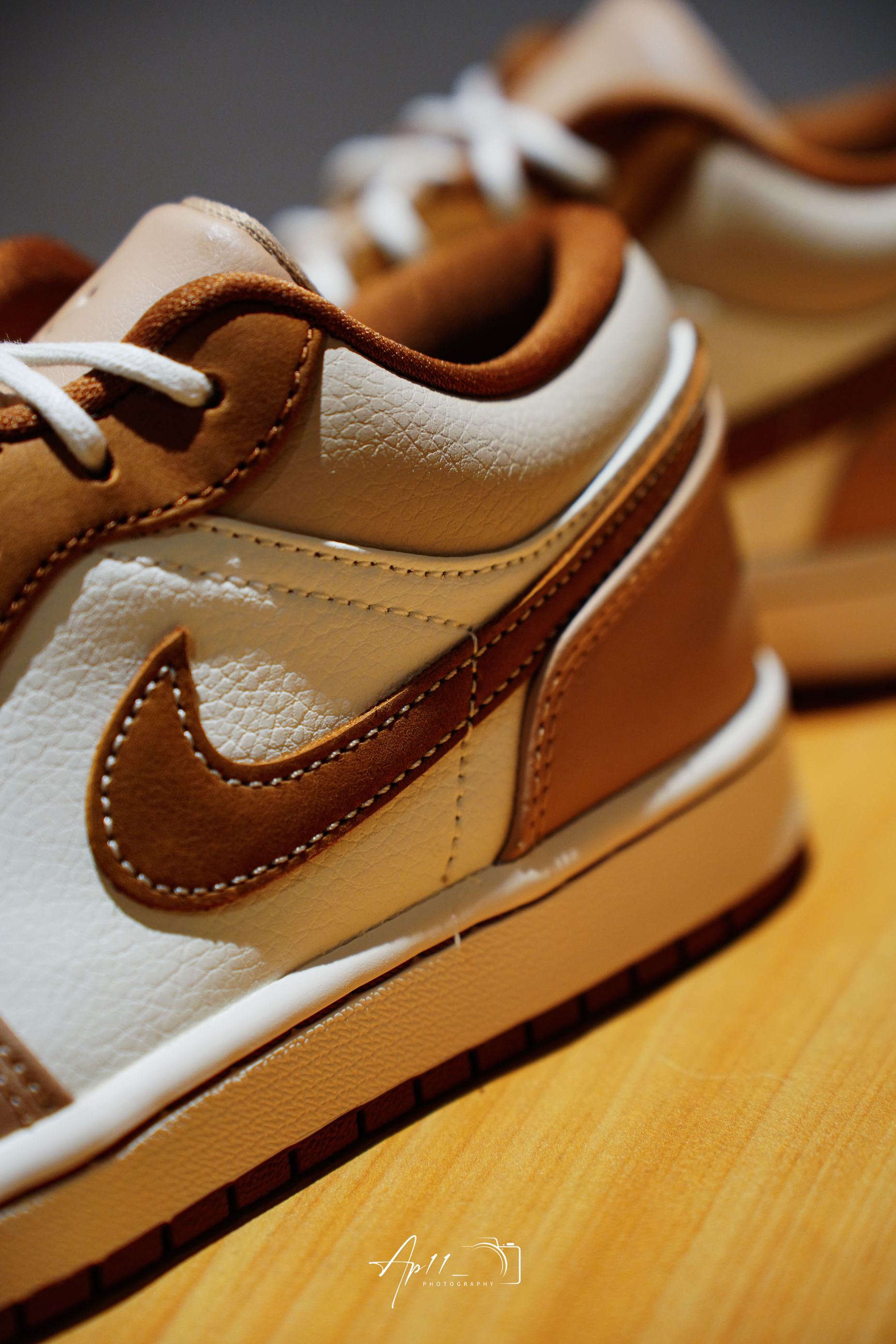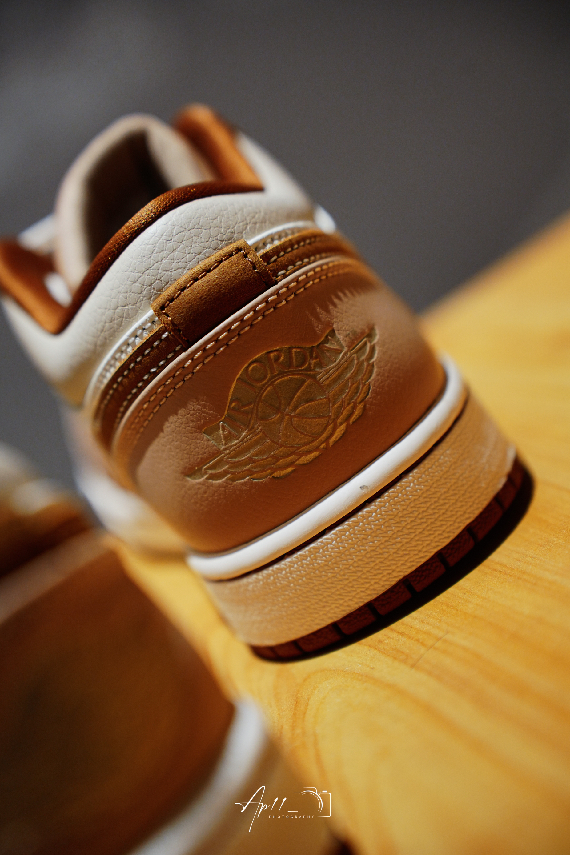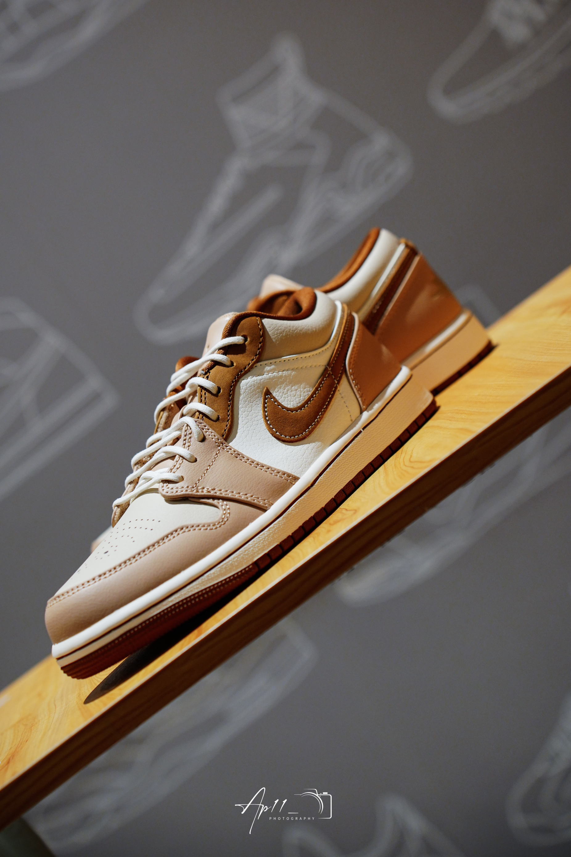 此次为大家带来的这款Air Jordan 1 Low 是我个人觉得,在普款中算得上是高级的!也是一双独特魅力的复古风AJ1,整体是高级皮革质感,深浅不一的棕色与米色相互搭配,皮革的纹路清晰,并且此次的鞋带一改往日的扁平棉鞋带,而是蜡圆绳,搭配鞋子本身相得益彰。且鞋头皮面使用复古的花砖花纹设计作为透气孔,高级又复古的感觉由然而生!