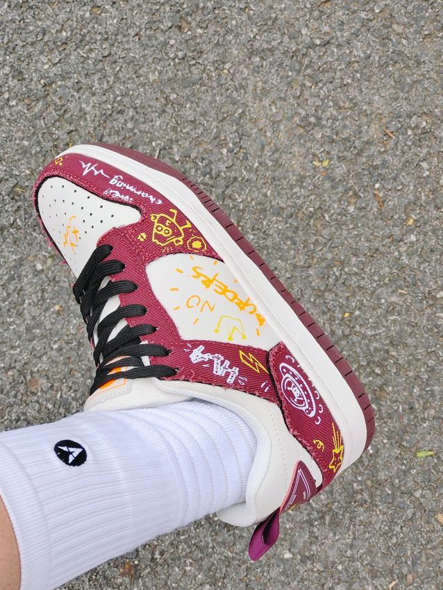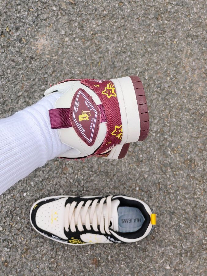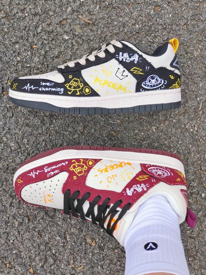 居然是黑红鸳鸯配色的诶,还挺好穿搭的,我平时喜欢搭配一条阔腿裤 写的上脚脚感还可以,不会那么硬 而且只要两位数就能入手,很适合我这种学生党 比较好打理哦,而且黑红配色的鞋子也耐脏