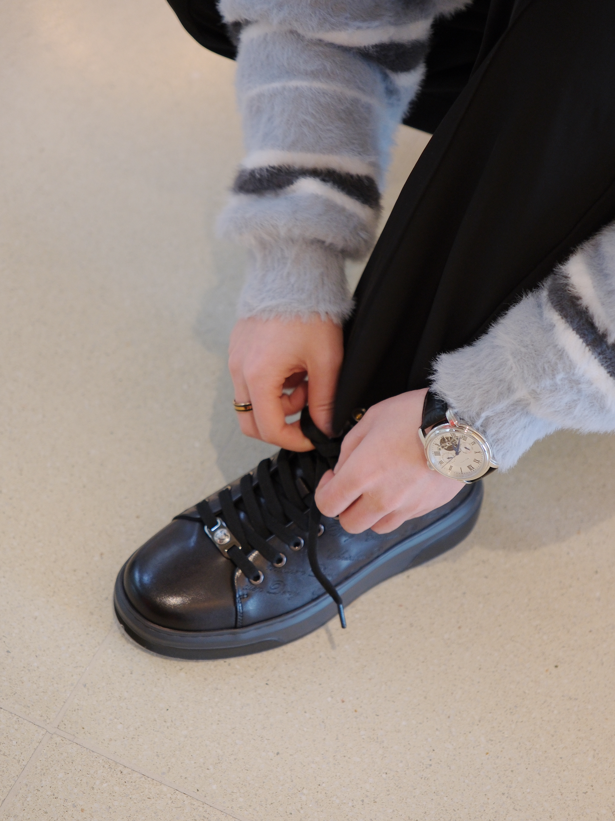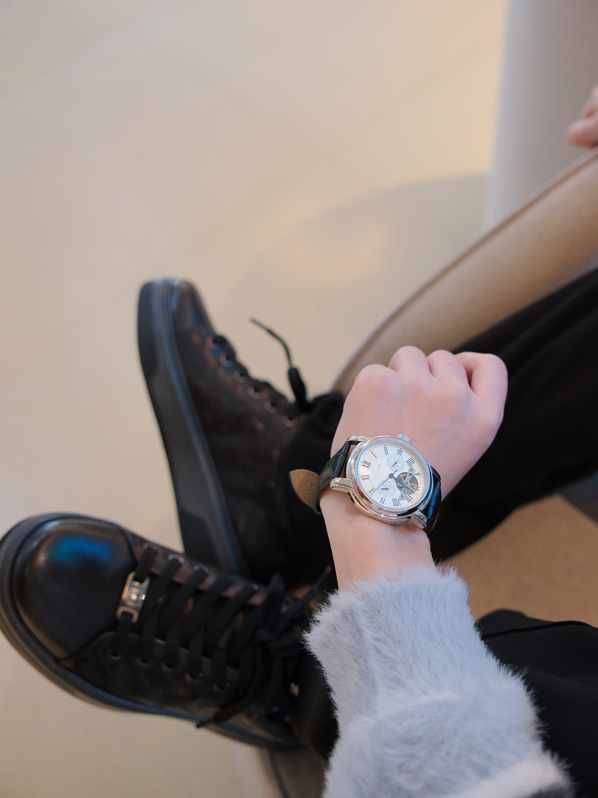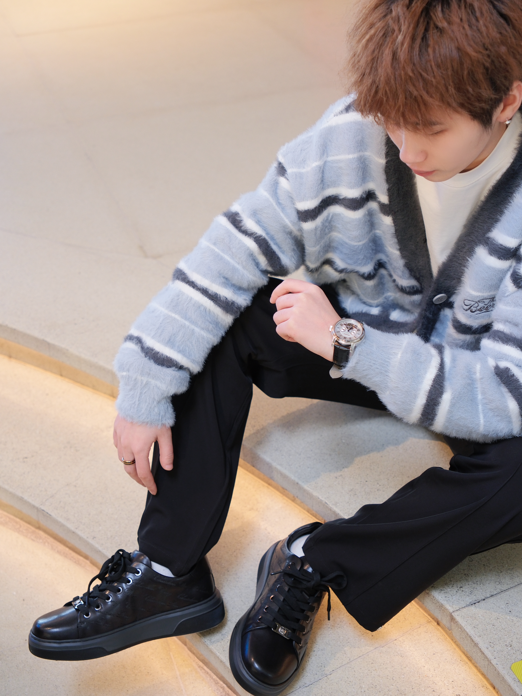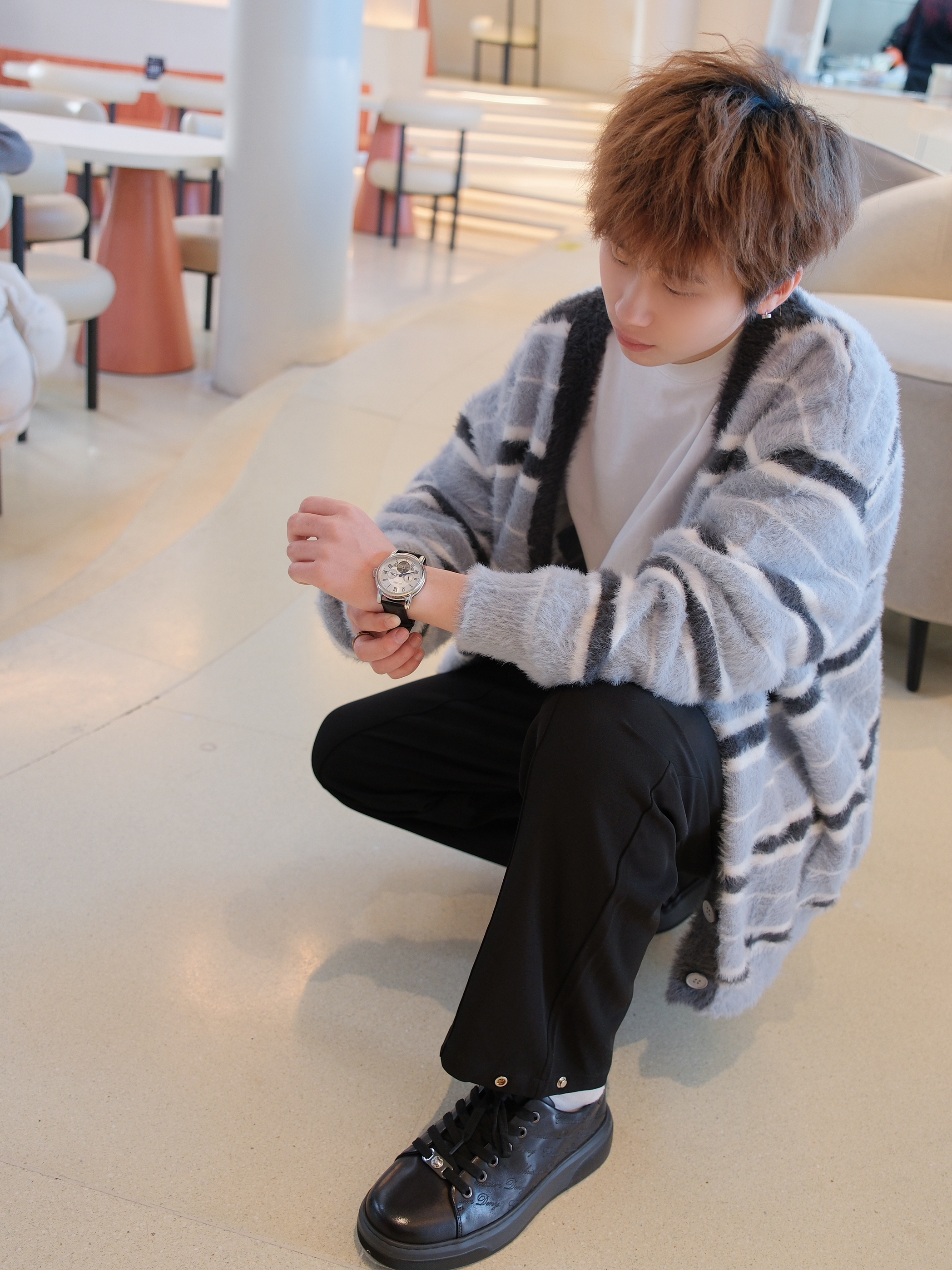 在成都买的这件毛衣开衫真的太爱了 蓝灰撞色的条纹设计 内搭白T就很有少年感 软软糯糯的海马毛穿起来也很舒服 下身搭配一条黑色直筒裤 垂感很好,上身也比较显瘦 再来一双CD的黑色皮鞋 4cm的厚底增高上脚显高,穿起来软弹舒服 鞋面压花设计就比较低调 商务风、休闲风都能驾驭 皮质的材质,也比较好打理 配饰选一块手表来搭配,增加层次感 双历表盘日常佩戴非常实用 镂空的双面机芯设计搭配皮质表带,平时上...