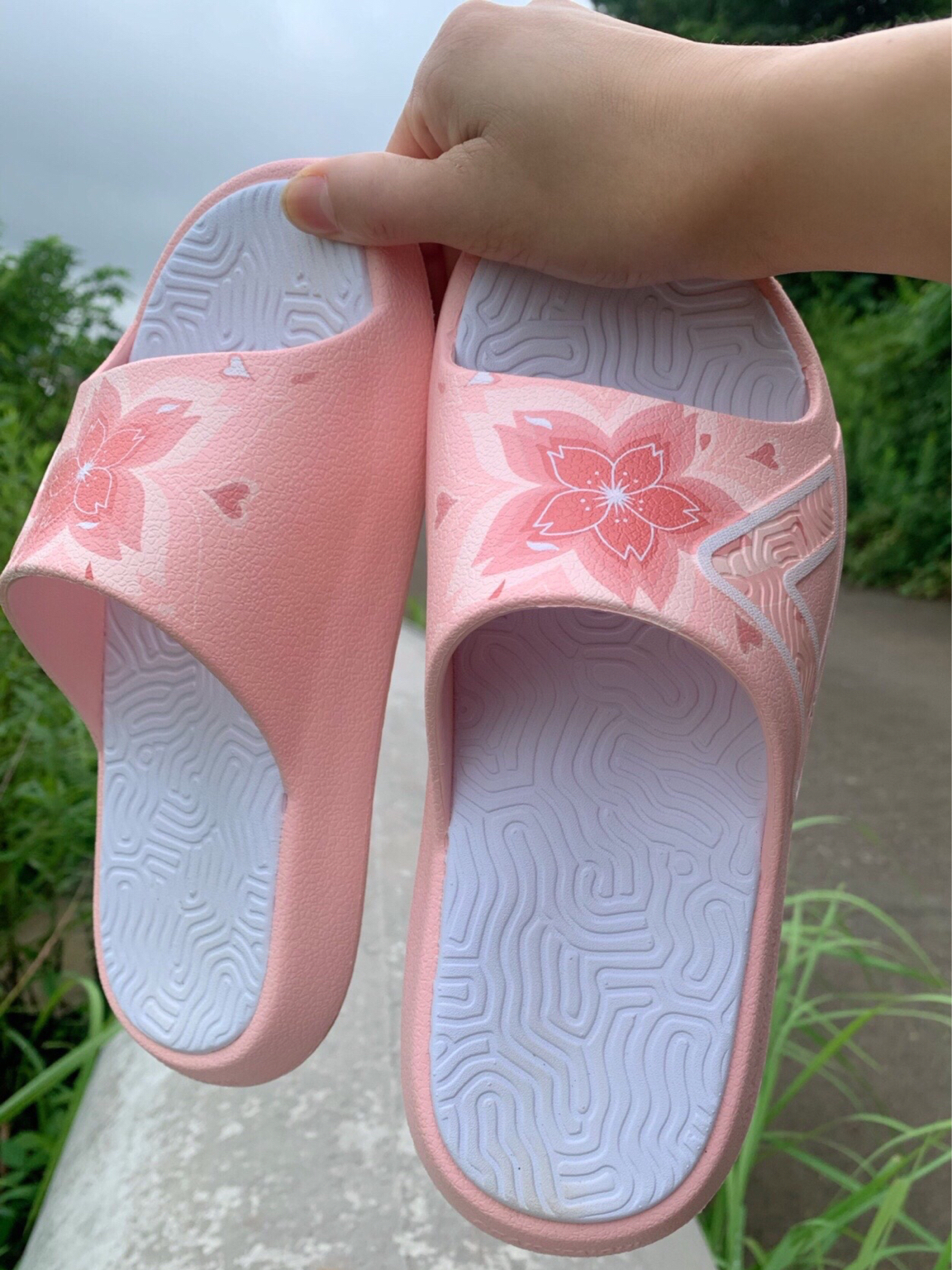 分享一款日常自爱的拖鞋~匹克态极粉色拖鞋 杭州城市限定樱花拖鞋,真的高颜值,日常很爱穿,散步,遛娃必选它。鞋子穿起来脚感舒服,如同踩在棉花般软乎,鞋的里面花纹图案,也是防滑橡胶,即使出汗也不会打滑,我更喜欢穿袜子穿,感觉更潮流呐。 粉色的樱花,真的很少女,穿起来瞬间感觉就是18岁少女耶。走在路上被人要链接捏