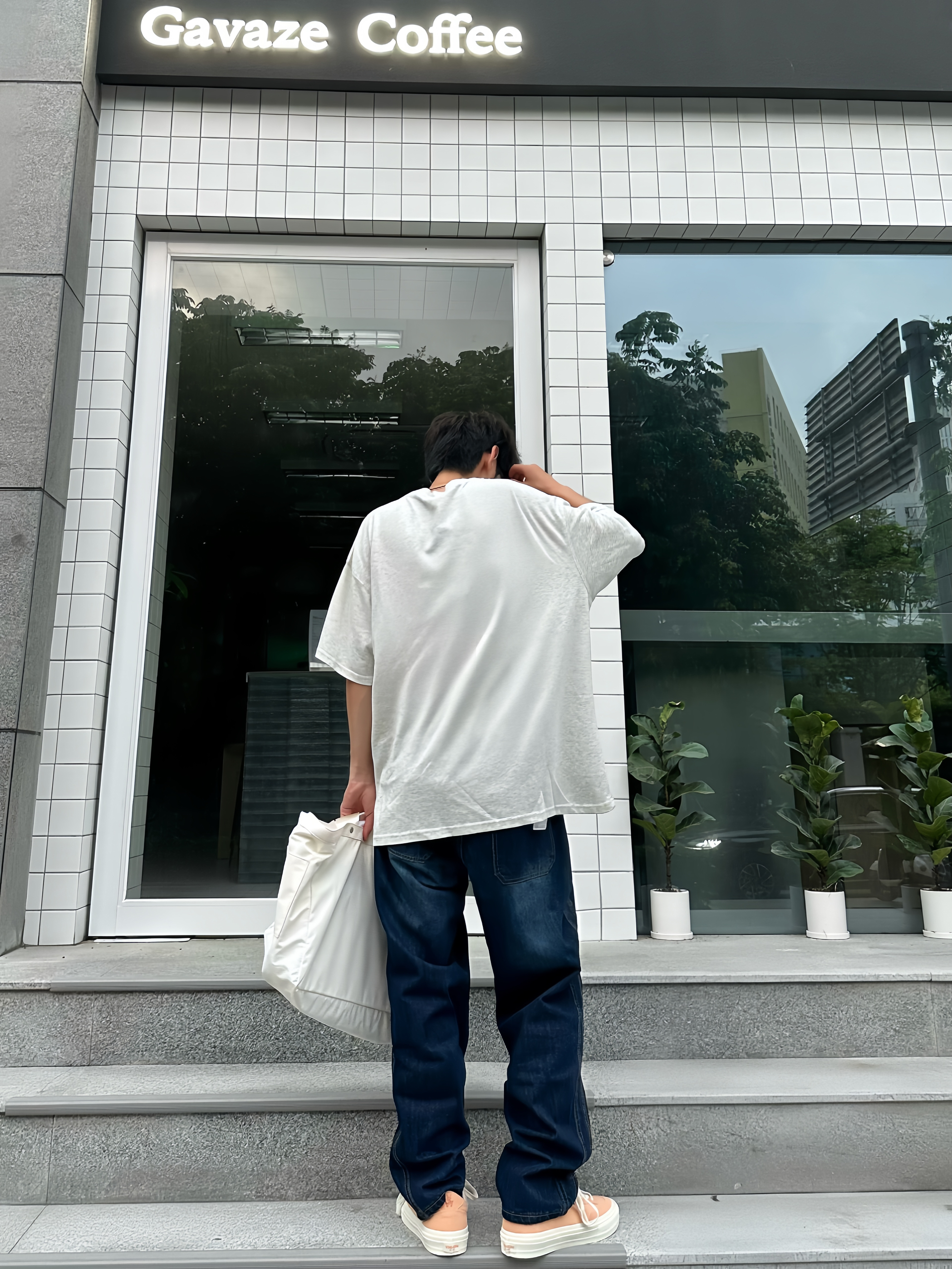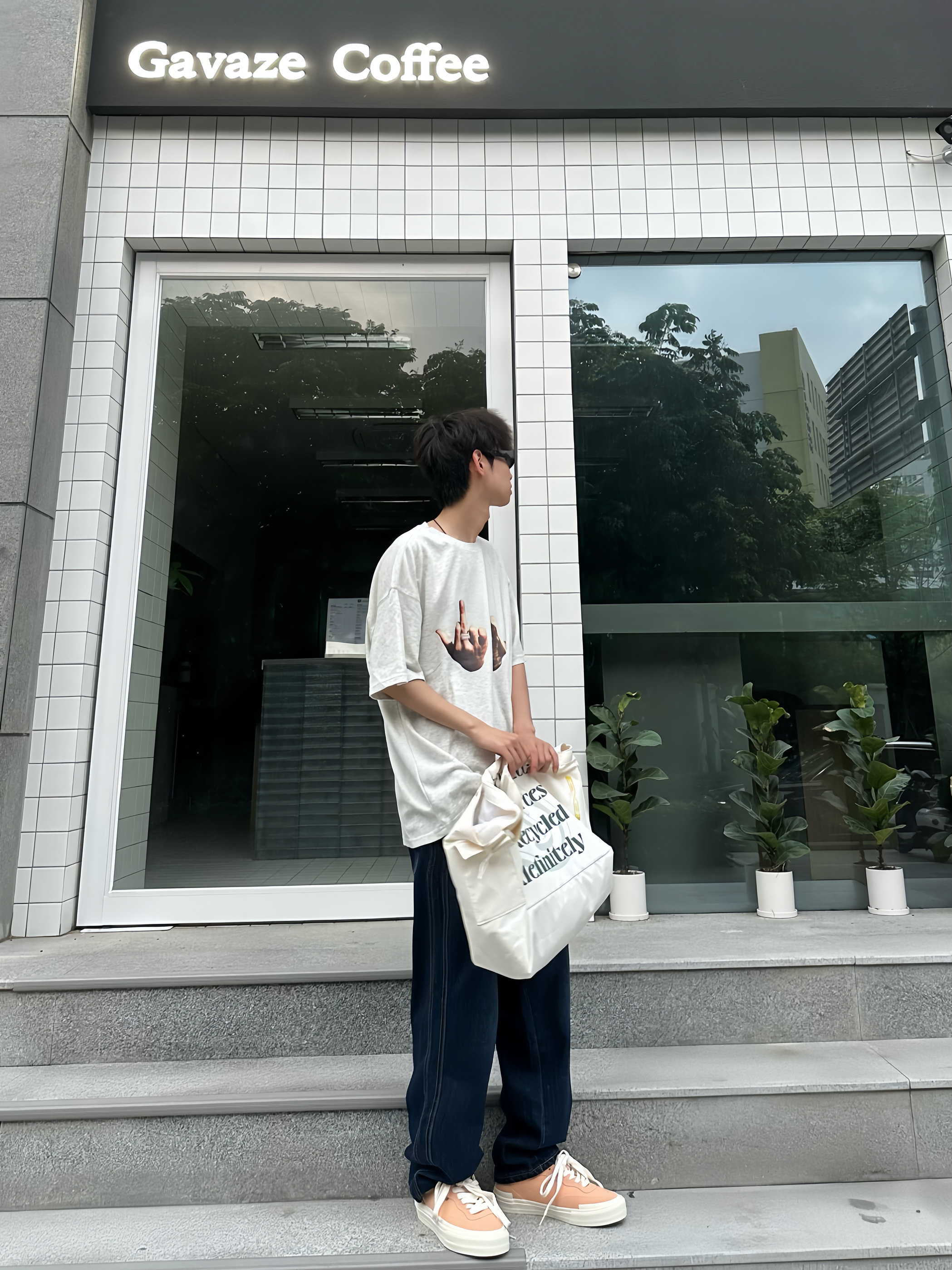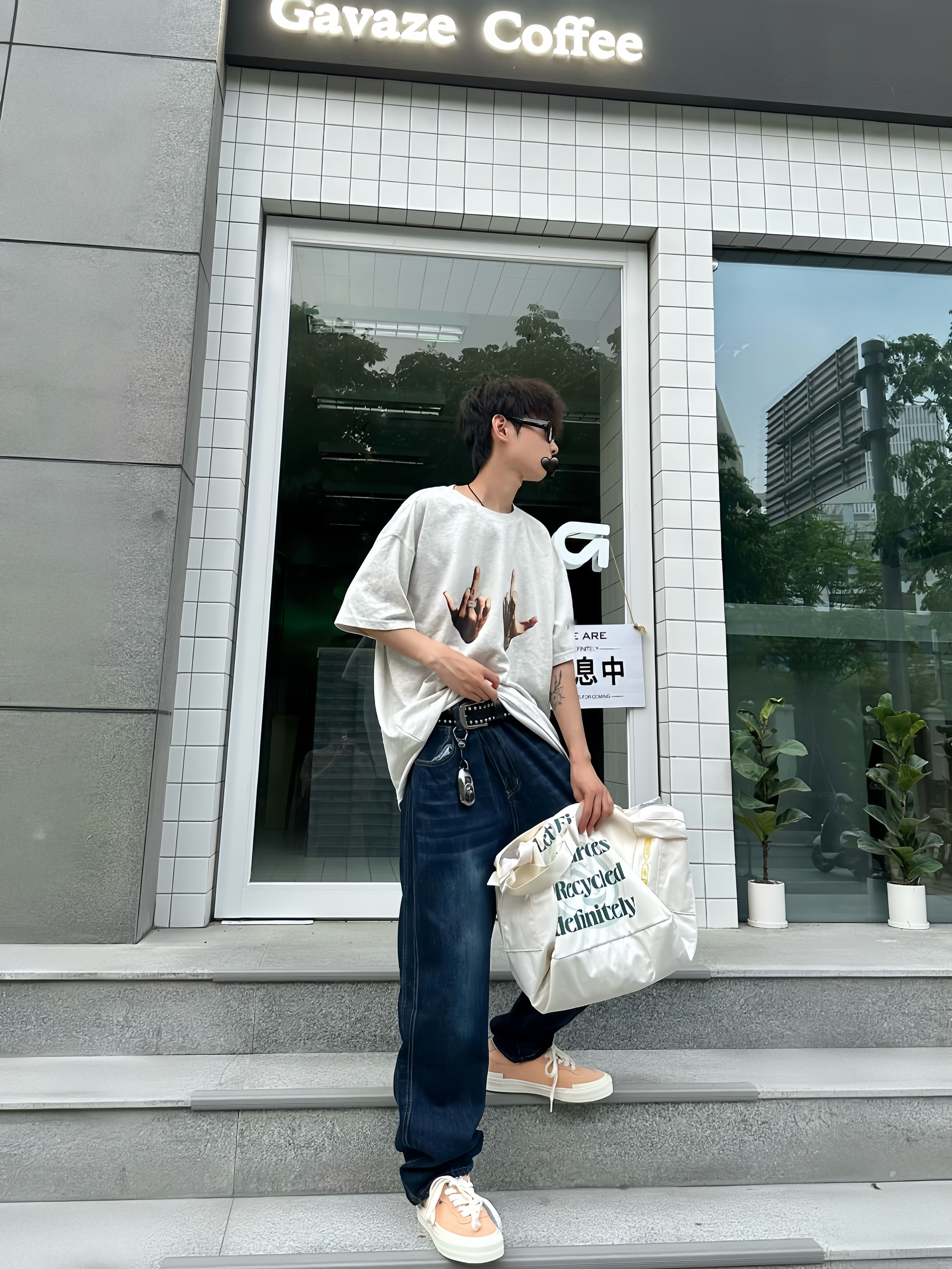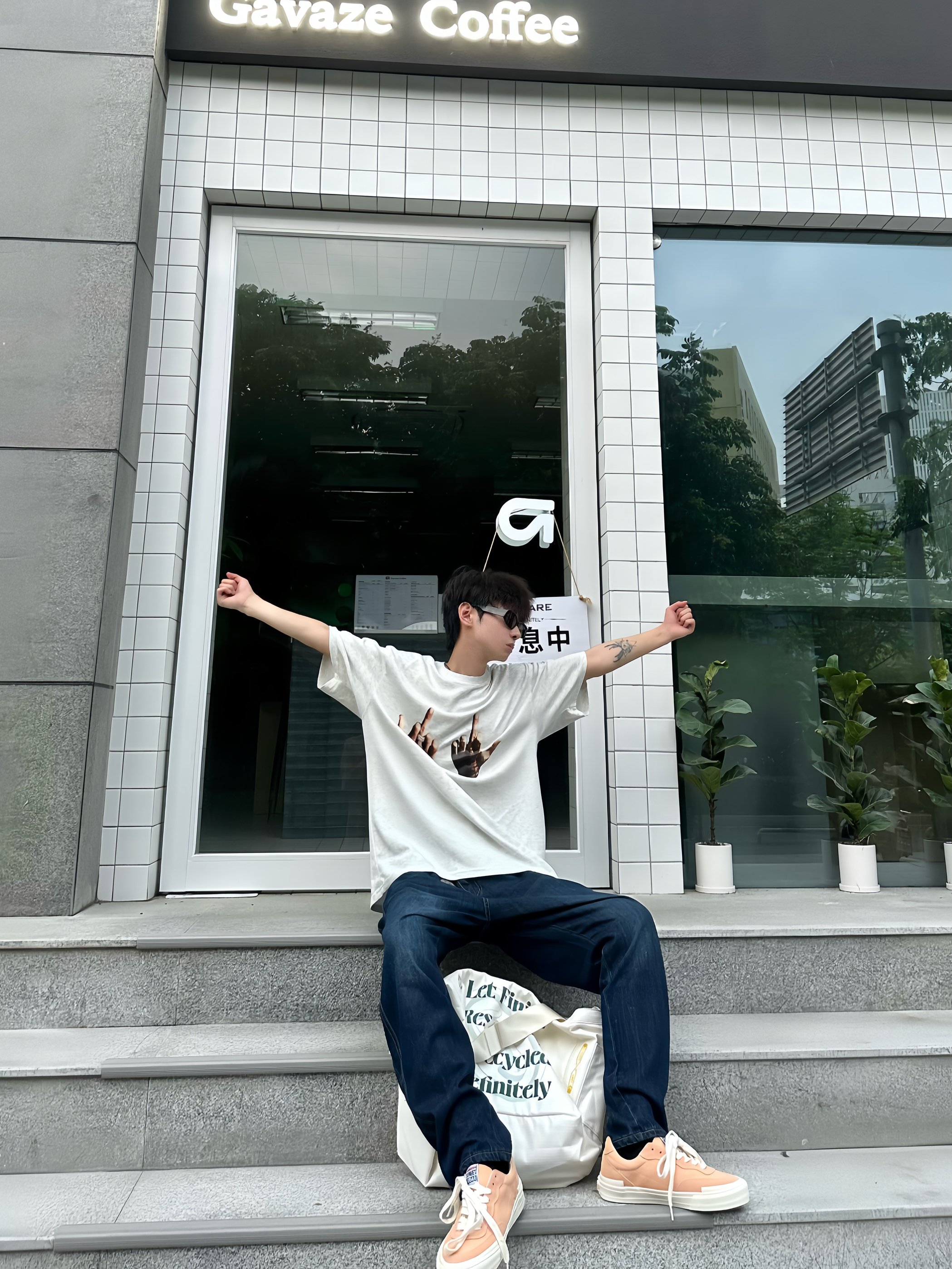 哈喽!这里是于老板的穿搭分享! 这样穿真的很夏天!一件浅灰色的恶搞T恤搭配一条适合夏天的透气牛仔裤👖穿在身上比较舒服~ 这种经典牛仔裤也比较好搭配各种板鞋 👟,就像我今天搭配的这双桃子🍑配色的滑板🛹鞋 就比较有调性 ,很适合小情侣穿👩🏻❤️👨🏻~ 👖: Jeep 👟 vision street wear 👔: ICONSLAB