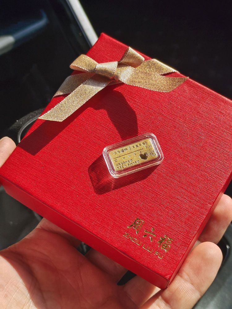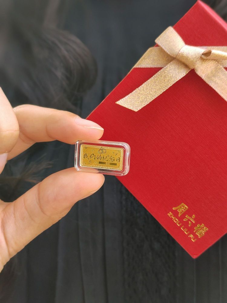 纪念日不知道买啥礼物🎁??看👀过来! 现在都流行送金子哦👑👑👑, 这个小金块你可能没有见过👀, 我也是第一次见,纪念价值挺高的😎, 正反面都有🈶文字以及印花设计, 象征一生一世的爱情❤️,好浪漫呀!!! 送给你的npy他会开心😁的哦!!!!