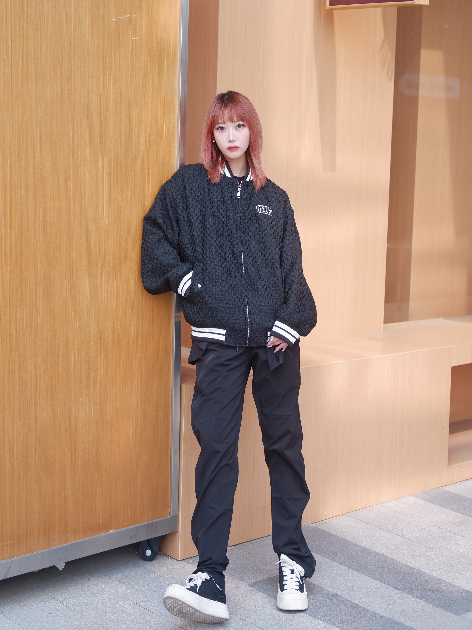 小香风的棒球外套也能这么帅了吗! 随意简单又时髦的感觉一下就上来了😍 春天到了,我看谁还没有这件百搭的棒球外套?太对味了! 下面搭配一条冲锋裤,帅气感十足! 黑白的厚底板鞋一直是我的心头爱,增高显瘦才是咱们女孩子👧的梦中情鞋